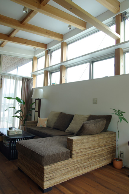 また、内部から繋がる大きな軒下のバルコニーを東西面に取り、カーテンに頼らず開けっ放しでの生活が快適に行える住まいとなっています。