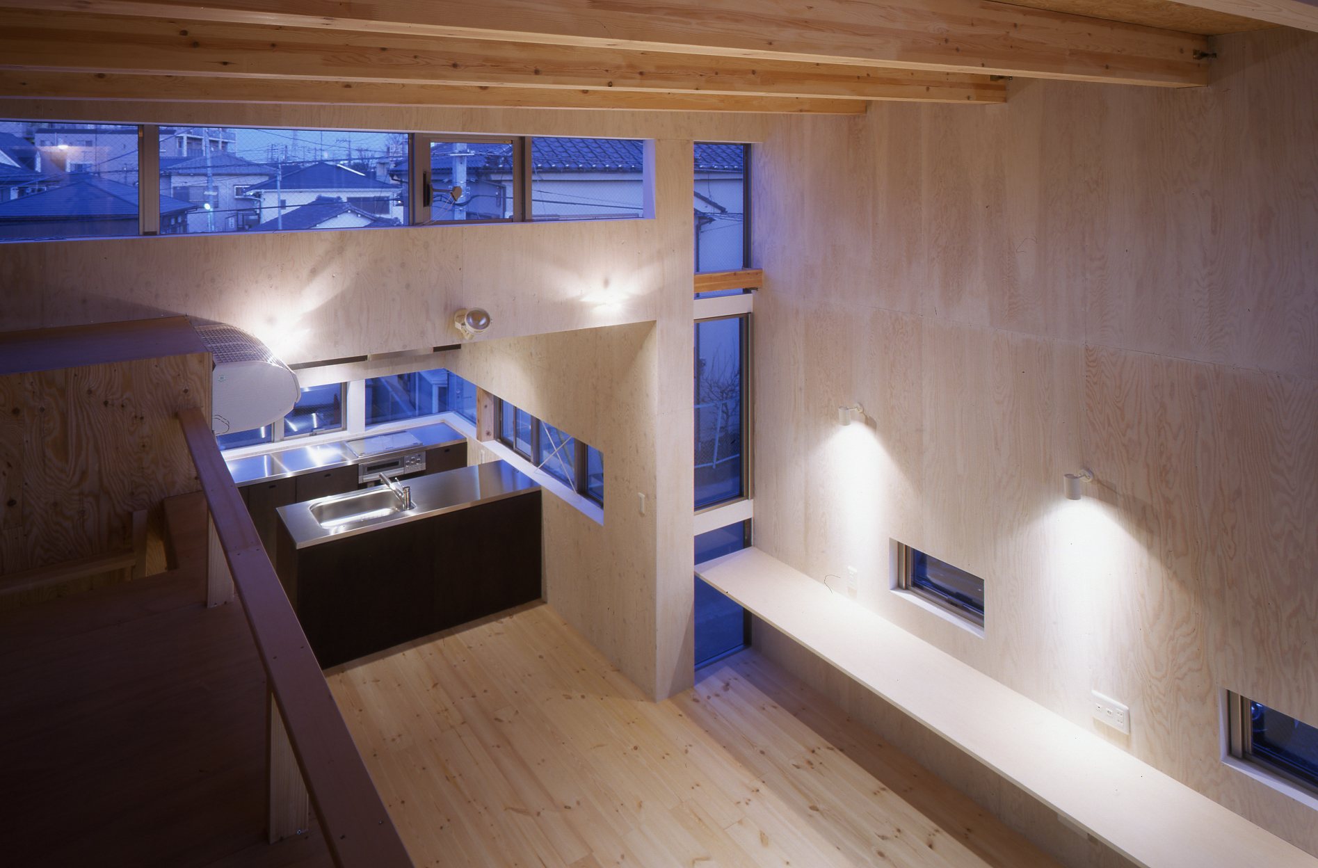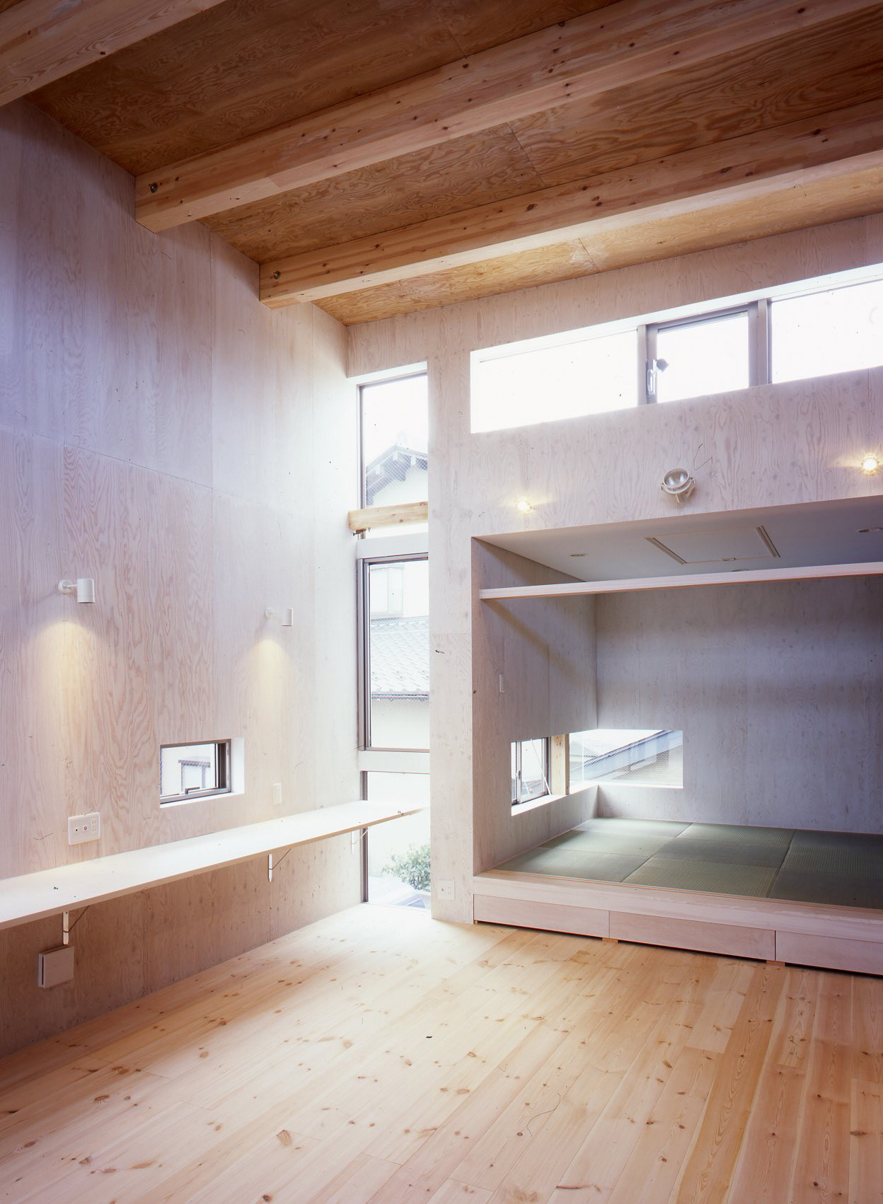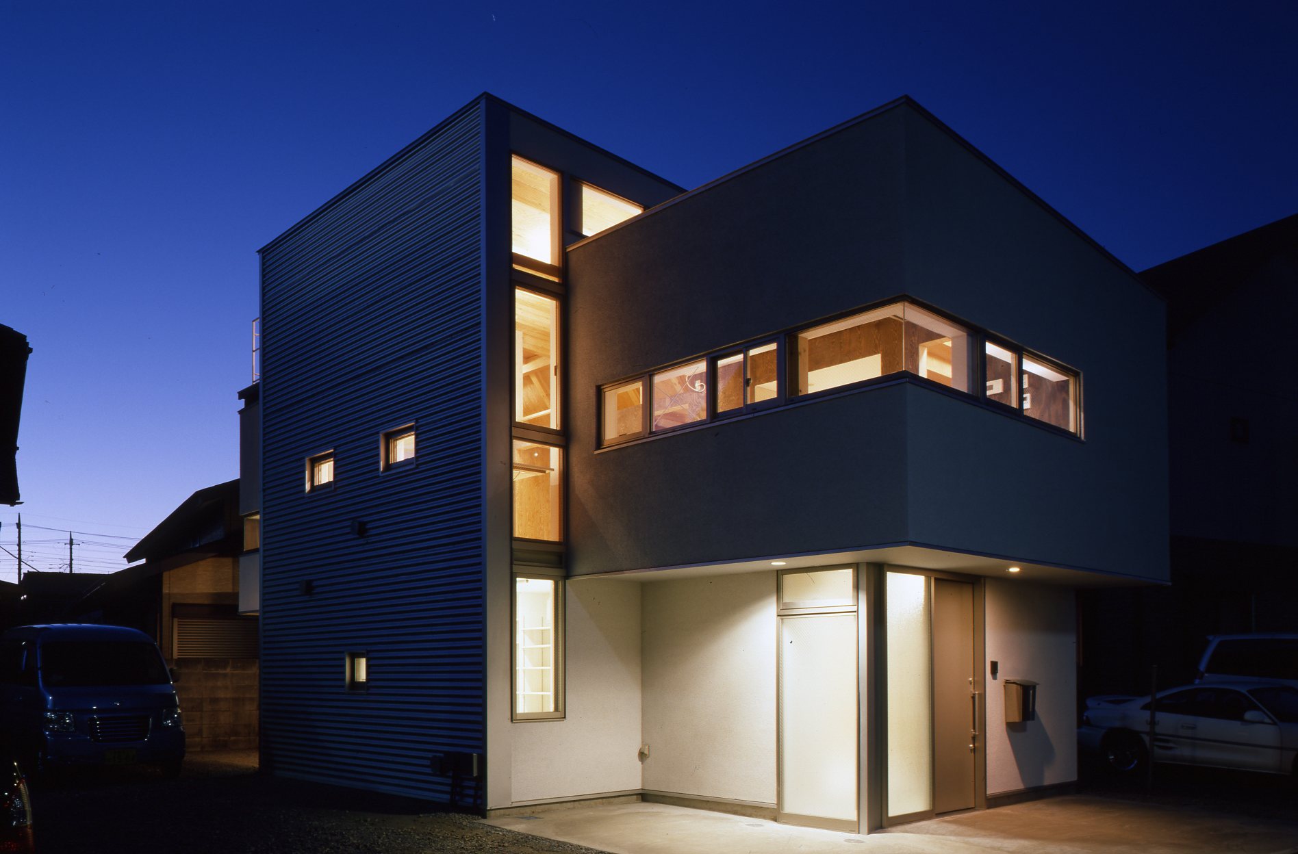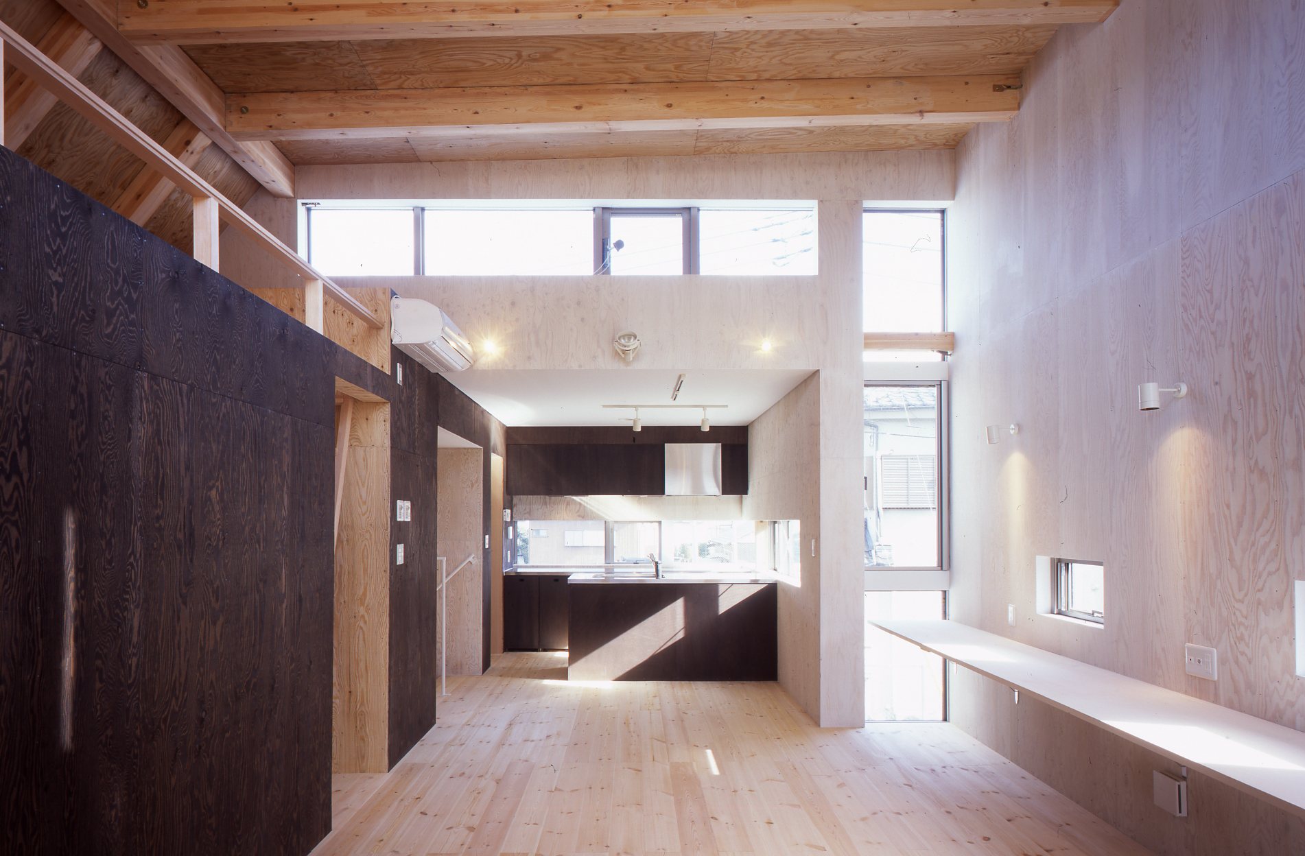 近い将来、住宅に囲まれることが予想される26坪の敷地に建つ、夫婦と子供2人のための住宅です。