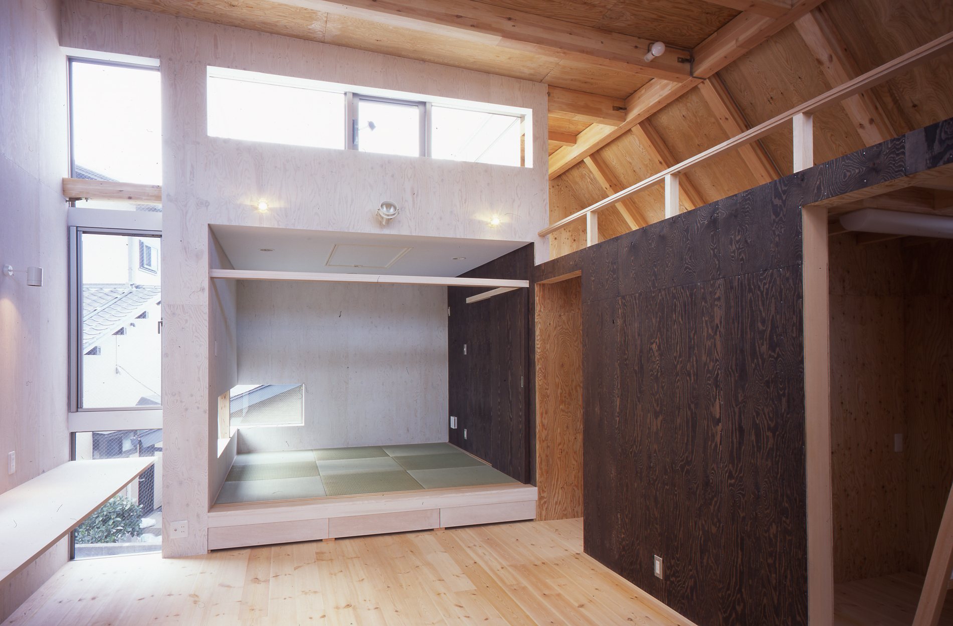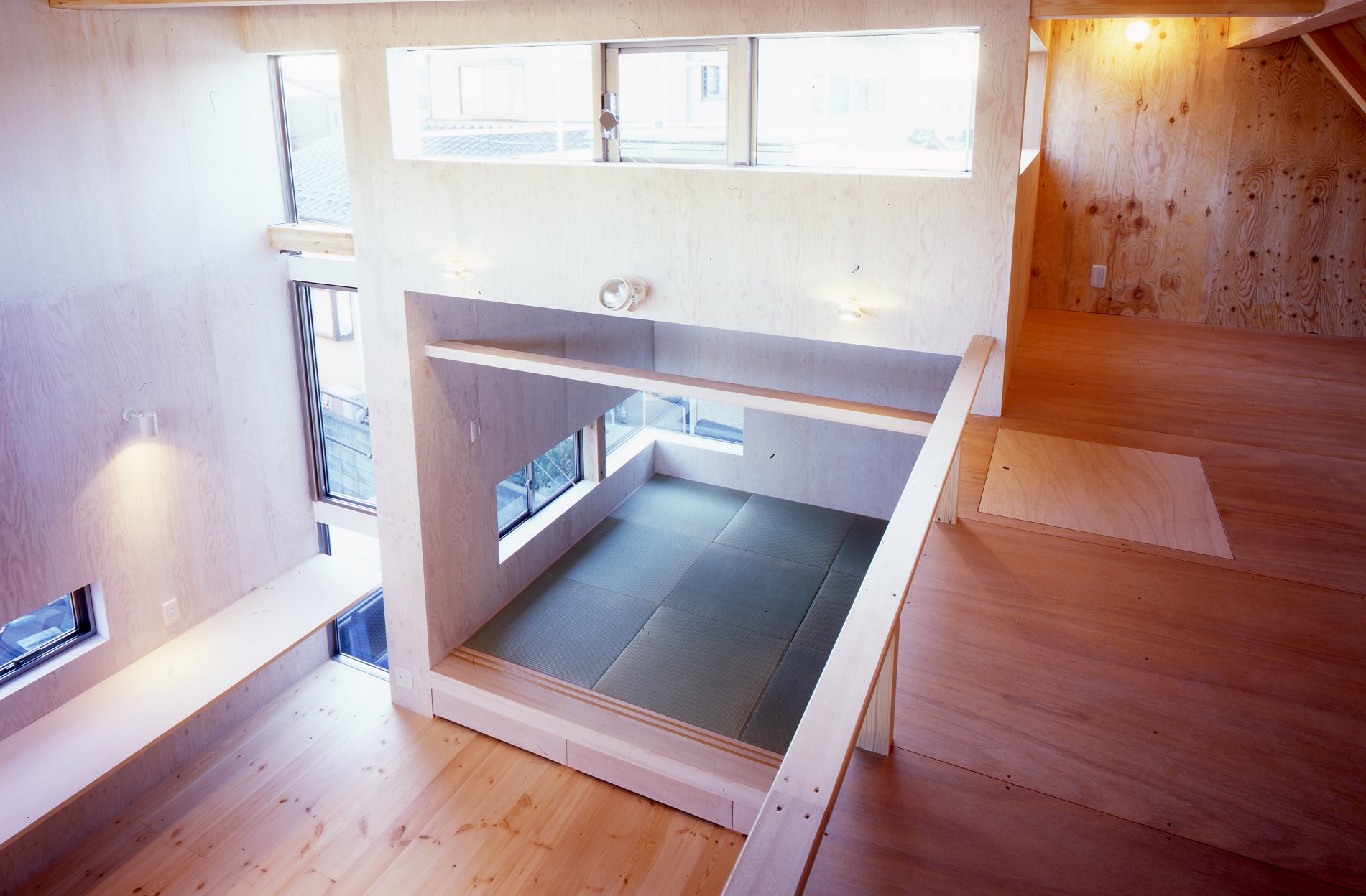 リビングの広がりとダイニングや和室との天井高の差を利用し、十分な採光と通風を確保できるスリットとハイサイドサッシを採用し、周囲を気にせず開放できる生活を実現し、夏には和室の上に設けた屋上から花火を楽しむ生活を楽しんでいます。