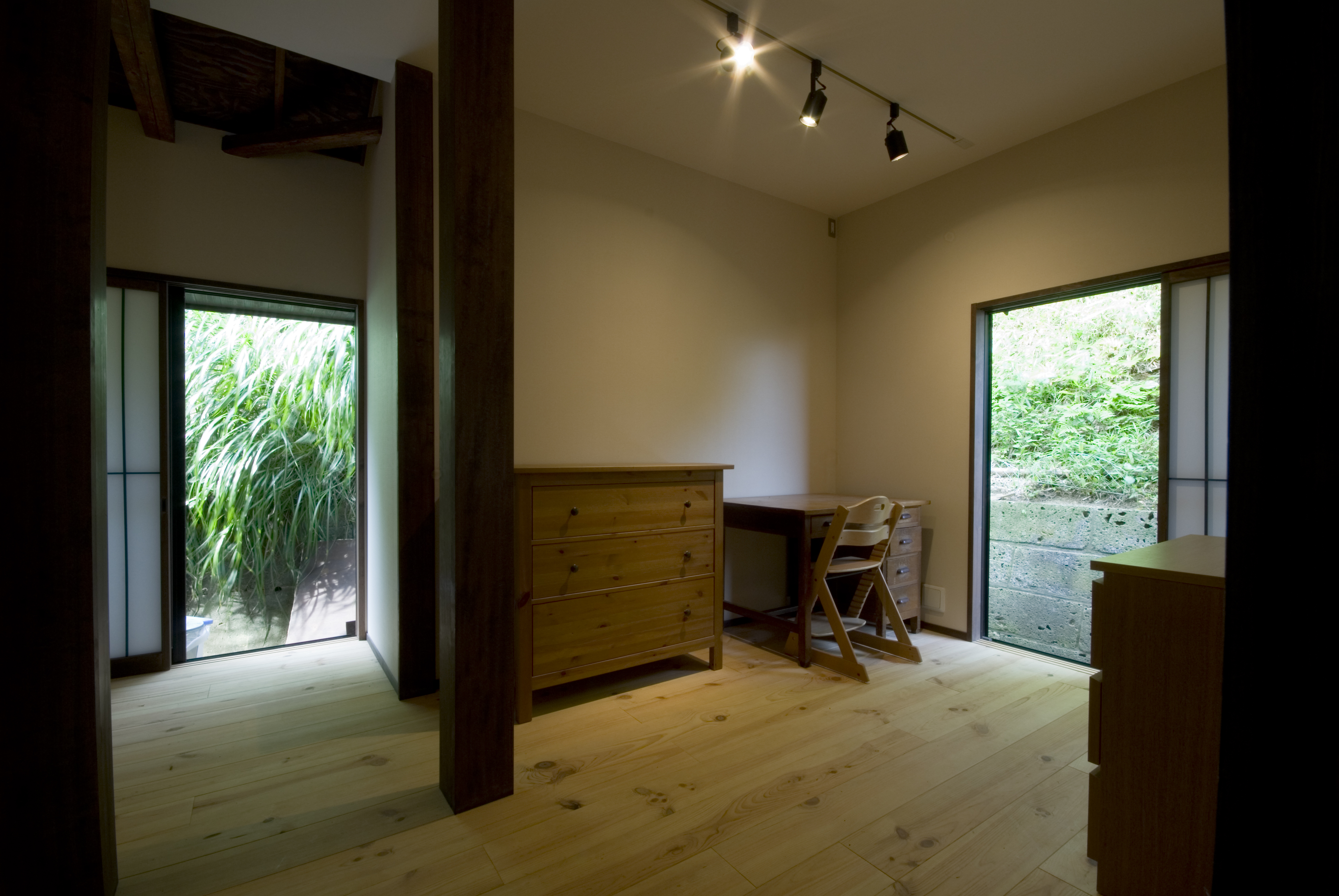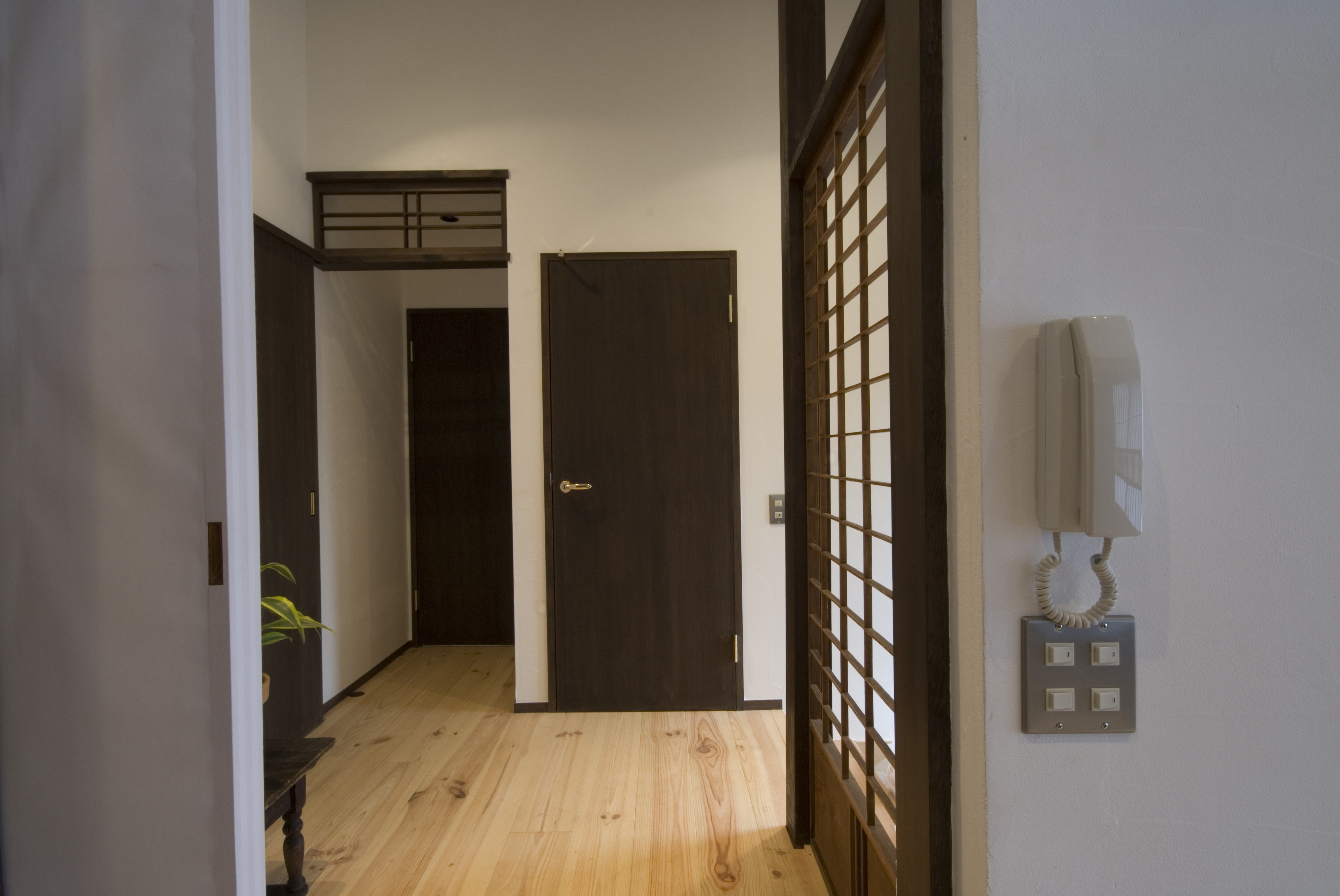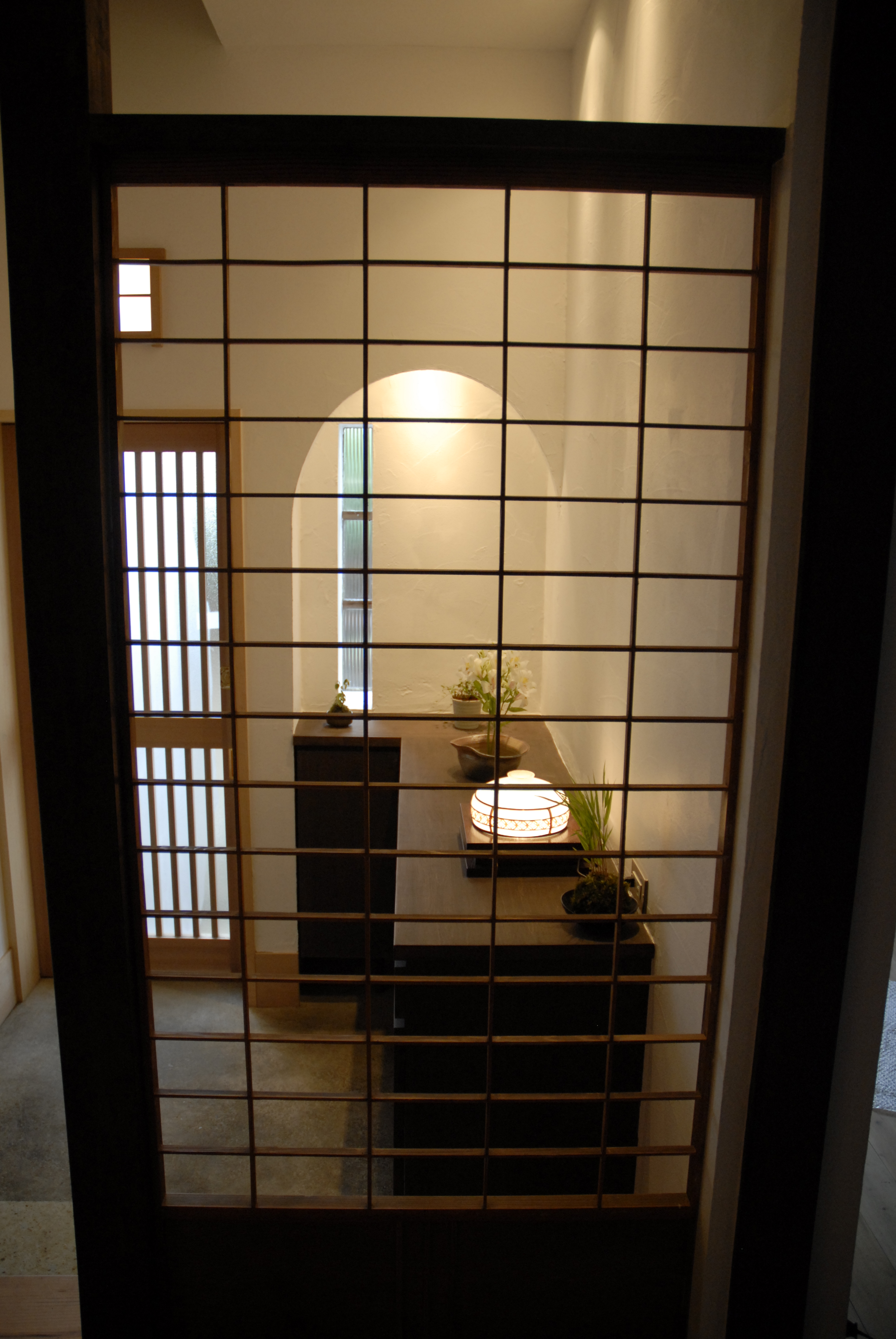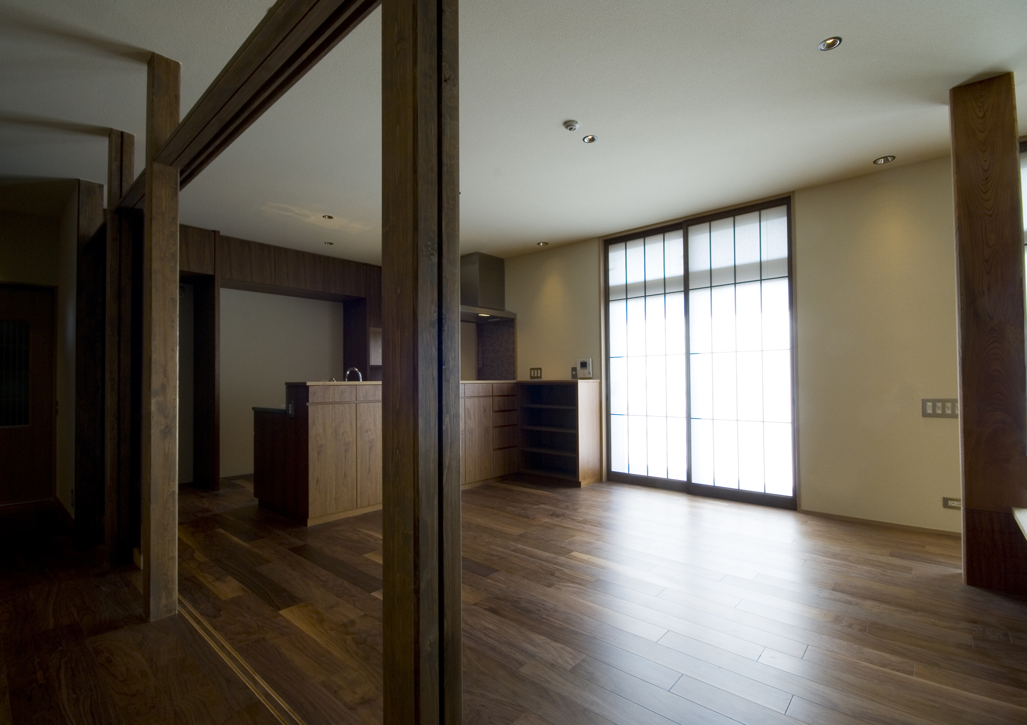 しかし廊下も部屋の中に取り込んだ為、廊下を通って仏間へ訪れる来客は居間の中を通る事になってしまいます。そこで、廊下部分を仕切る建具を用意し、来客時には、居間の一部を通路にする事が出来る様にしました。