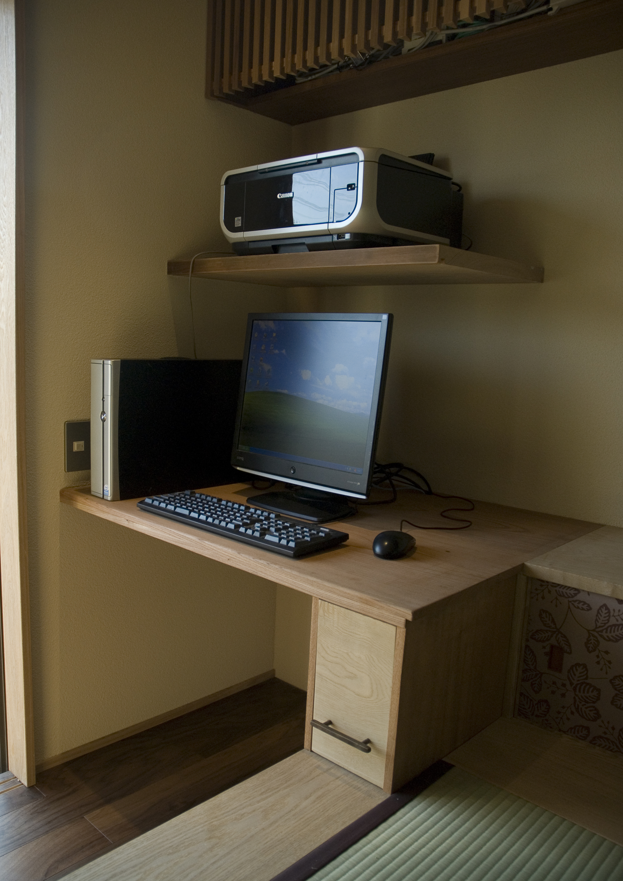 畳スペースの下は、引き出しになっていて、様々な物を収納をする事が出来ます。また、畳スペースの横にはTV台と続く形でPCコーナーを設けています。