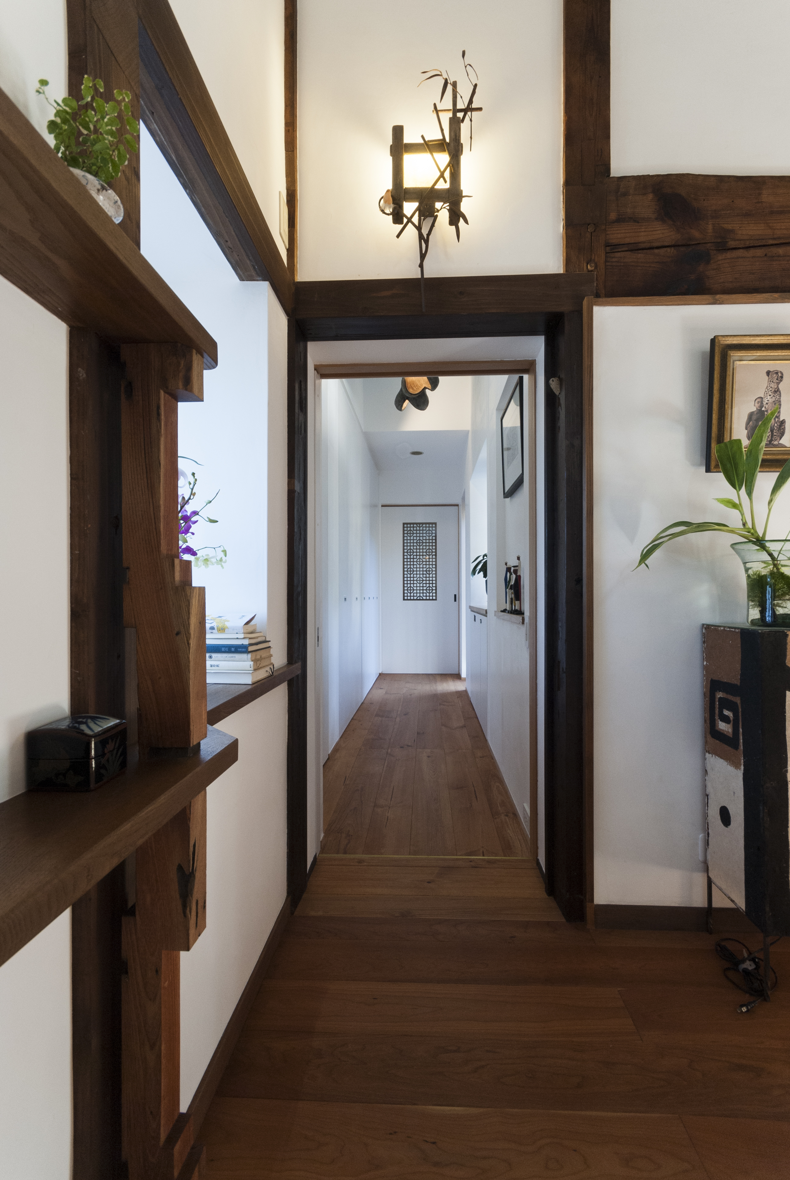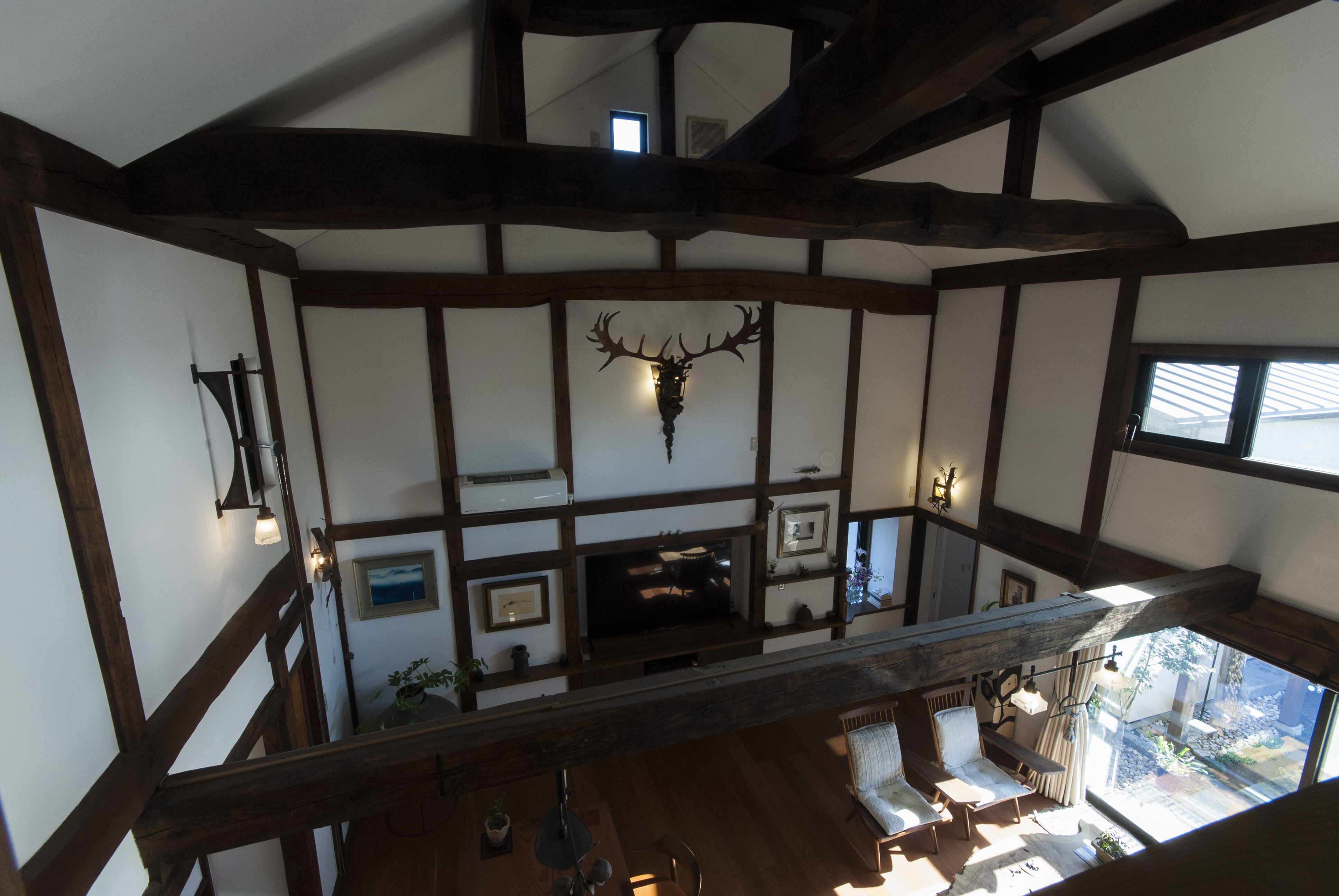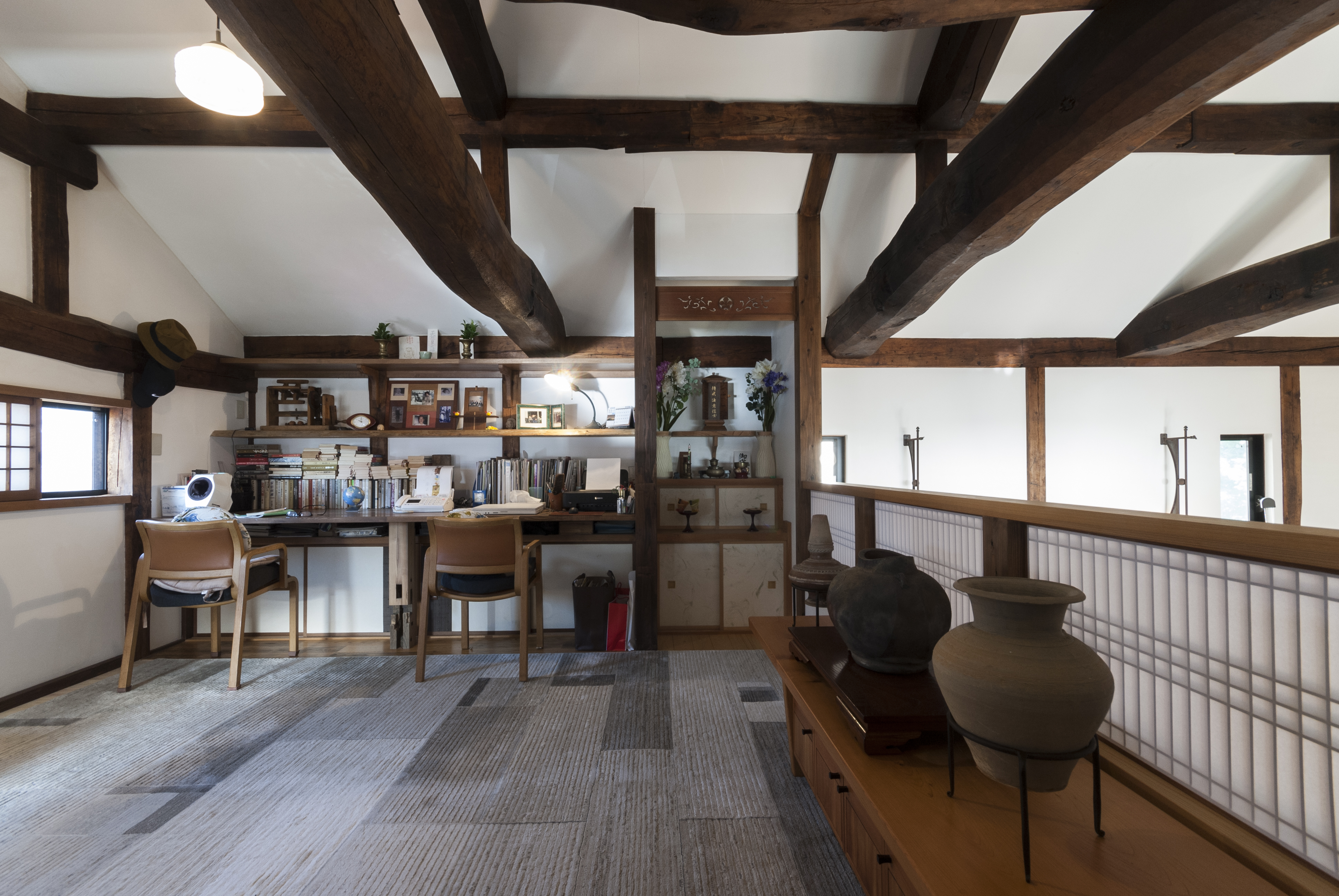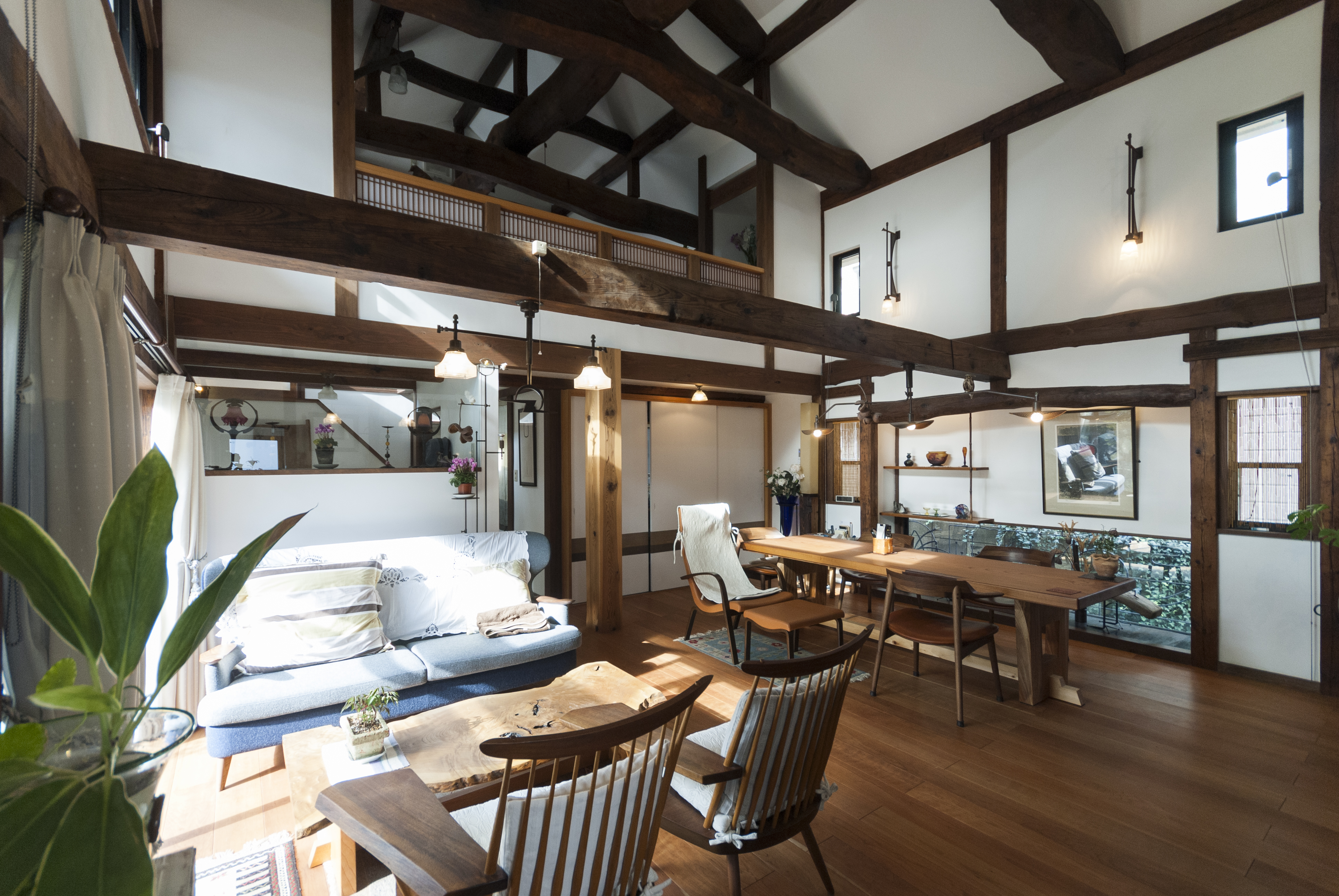 移築・古民家のリノベーションです。既存の状態でもすでに、古民家の持つ圧倒的な存在感と施主の持つ美的感覚とが上手く混じりあい、非常に面白い空間になっていました。今回の仕事としては、現在の空間の面白さを壊すことなく、家の基本的な快適さと機能を追加して、さらに上のレベルへと導けるかを念頭に置いてプロジェクトを進めました。