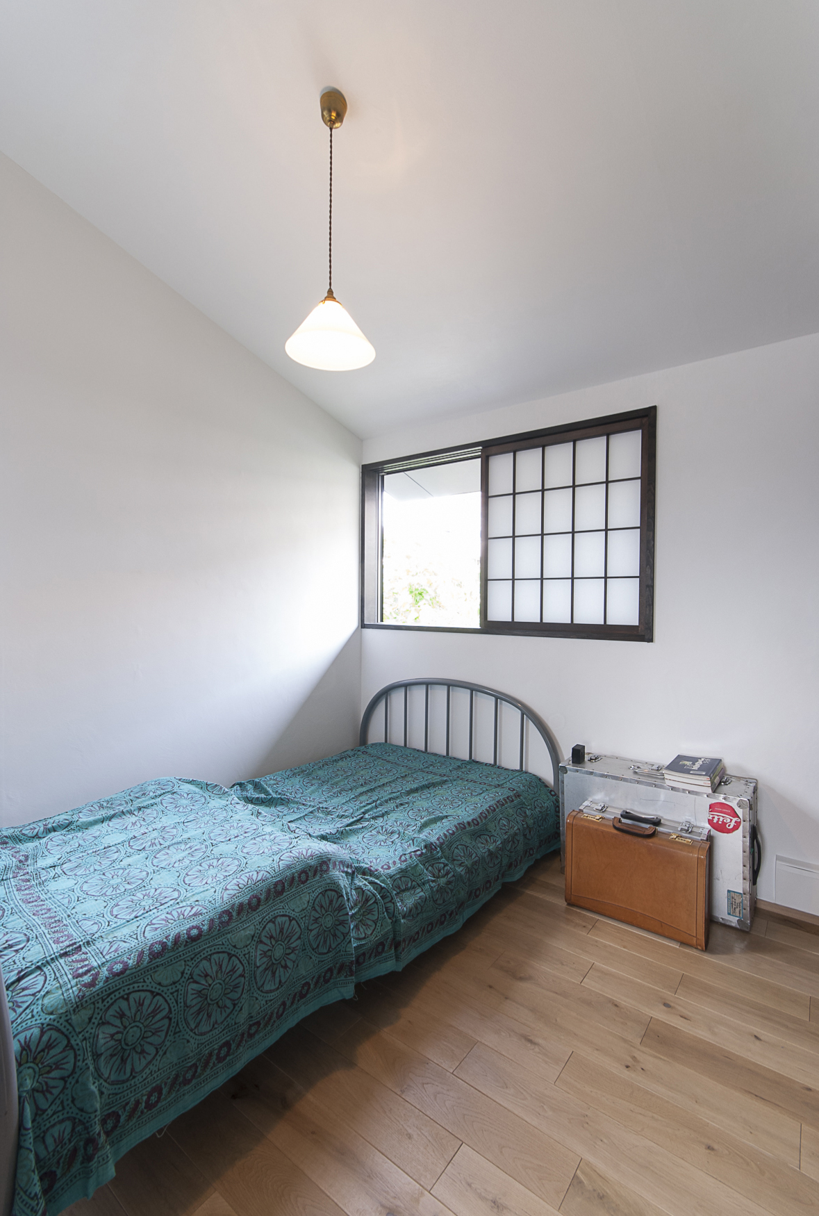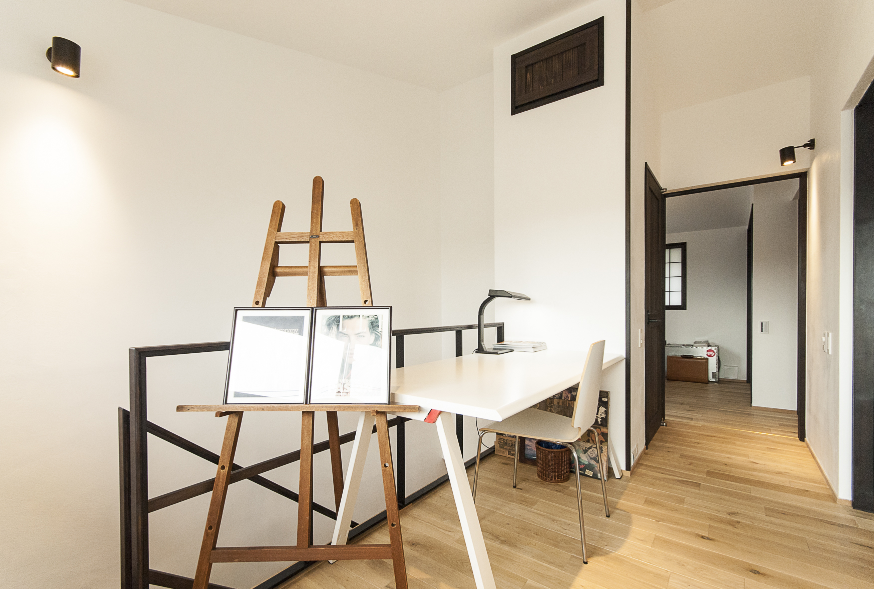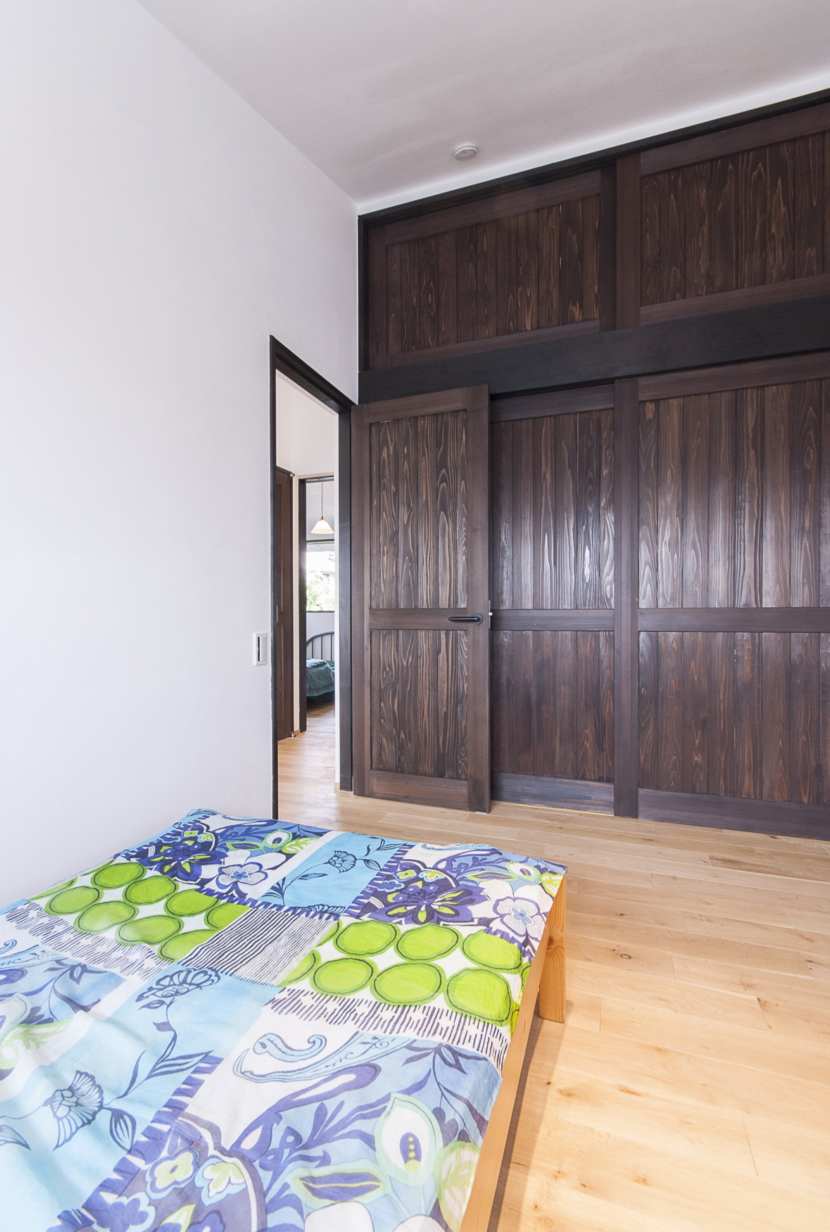 この家の家づくりは、素材選びから始まりました。一つ一つ材料を比較検討するのはもちろんの事、合板を使わなくても成り立つ構造計画の検討や、米のりを使用した建具の製作など多岐に渡りました。今回使用した素材は、無垢の木材、漆喰、タイル、金属など主に自然素材で化学物質の発散のない材料です。アレルギーの症状には個人差があり、無垢材でも樹種によって反応したり、漆喰でも配合によって反応したり、本当に様々です。住む人に合わせて柔軟に対応することが重要です。