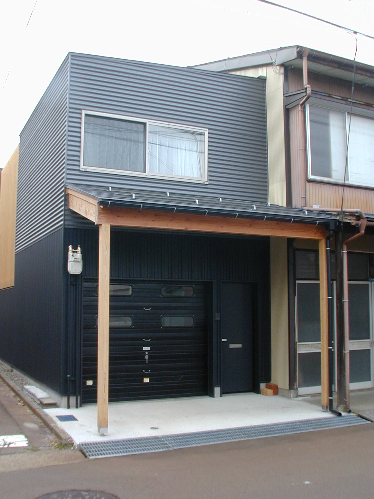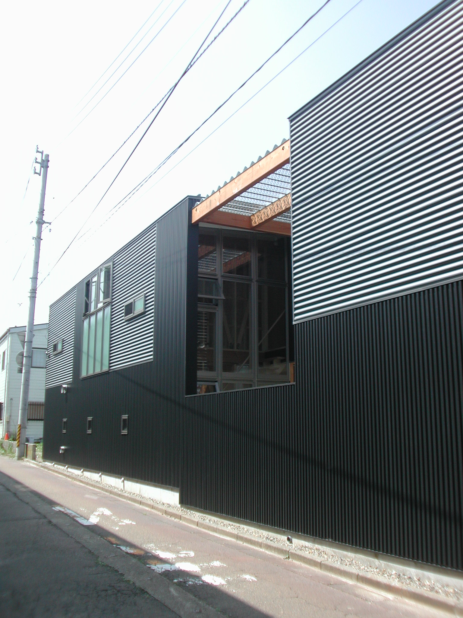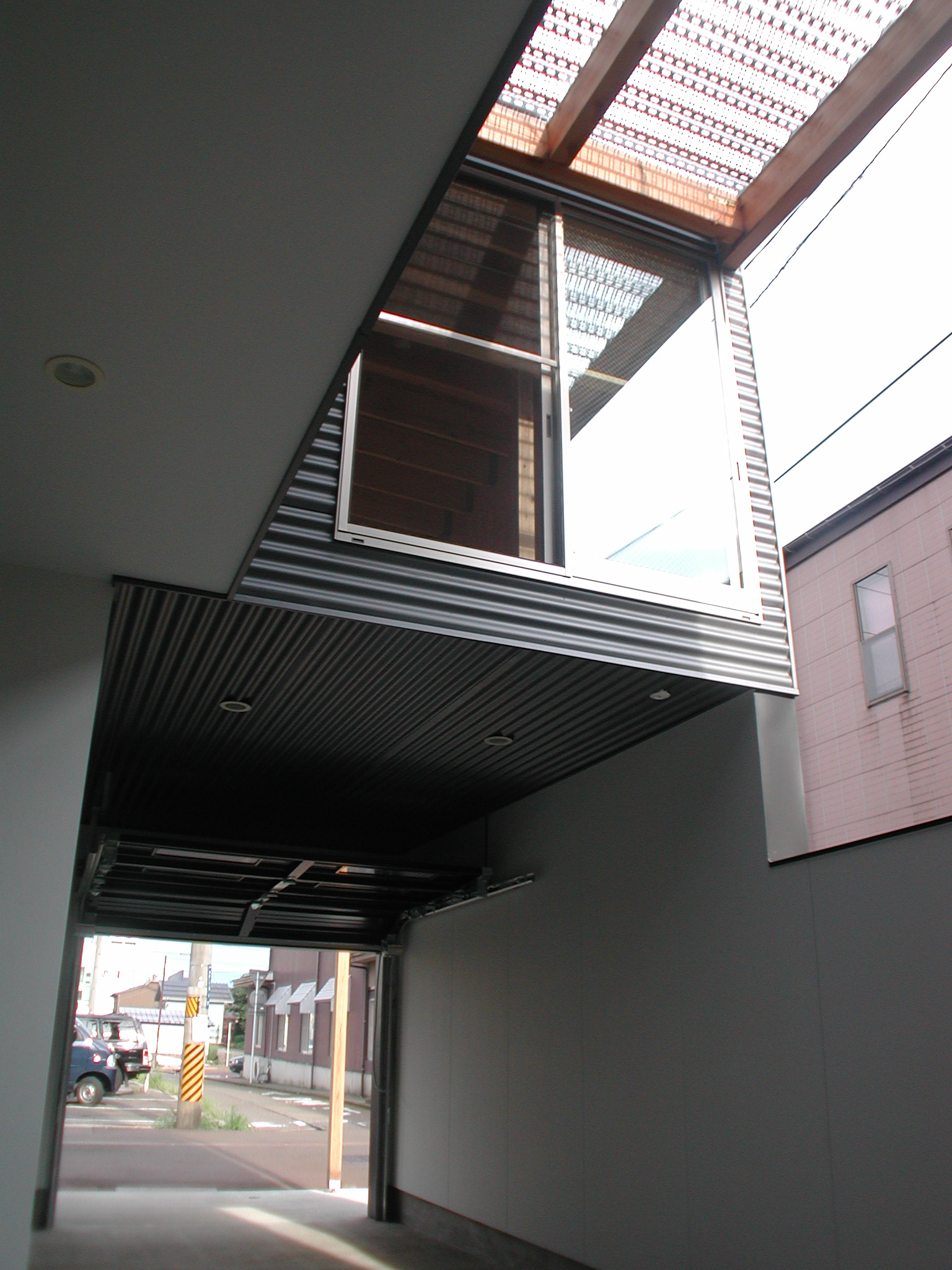 駅から続く商店街の中に位置するこの住宅では、近隣から続く路地を繋ぐ習慣があり、建物の外観と周囲に溶け込む雁木をつくっています。