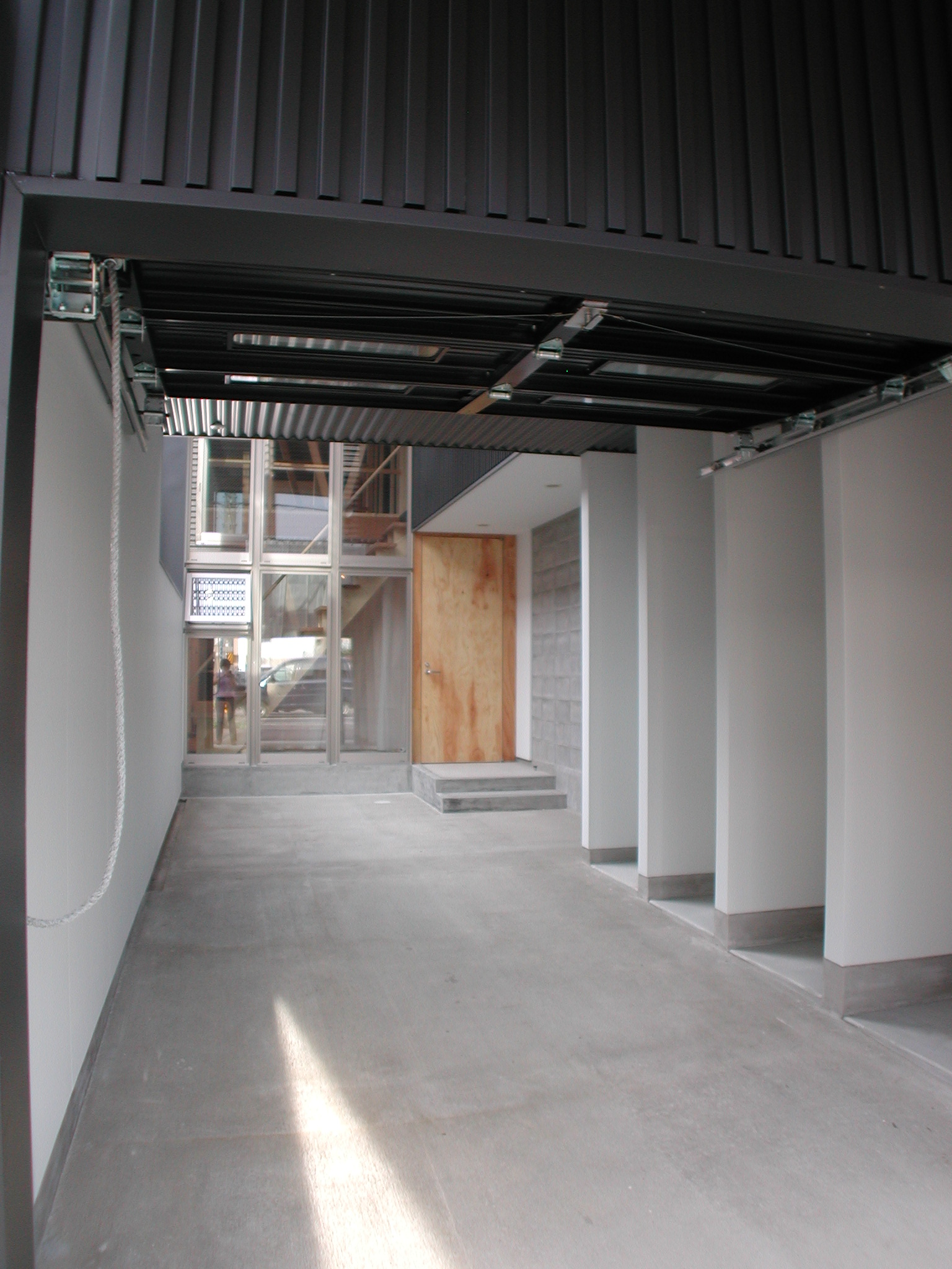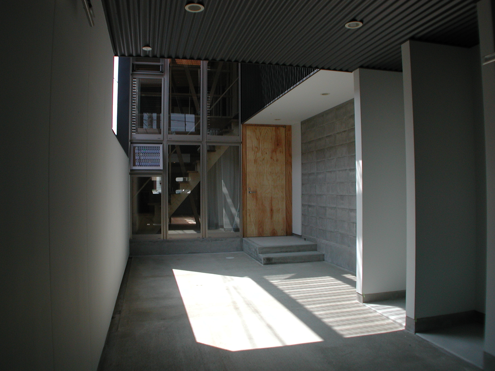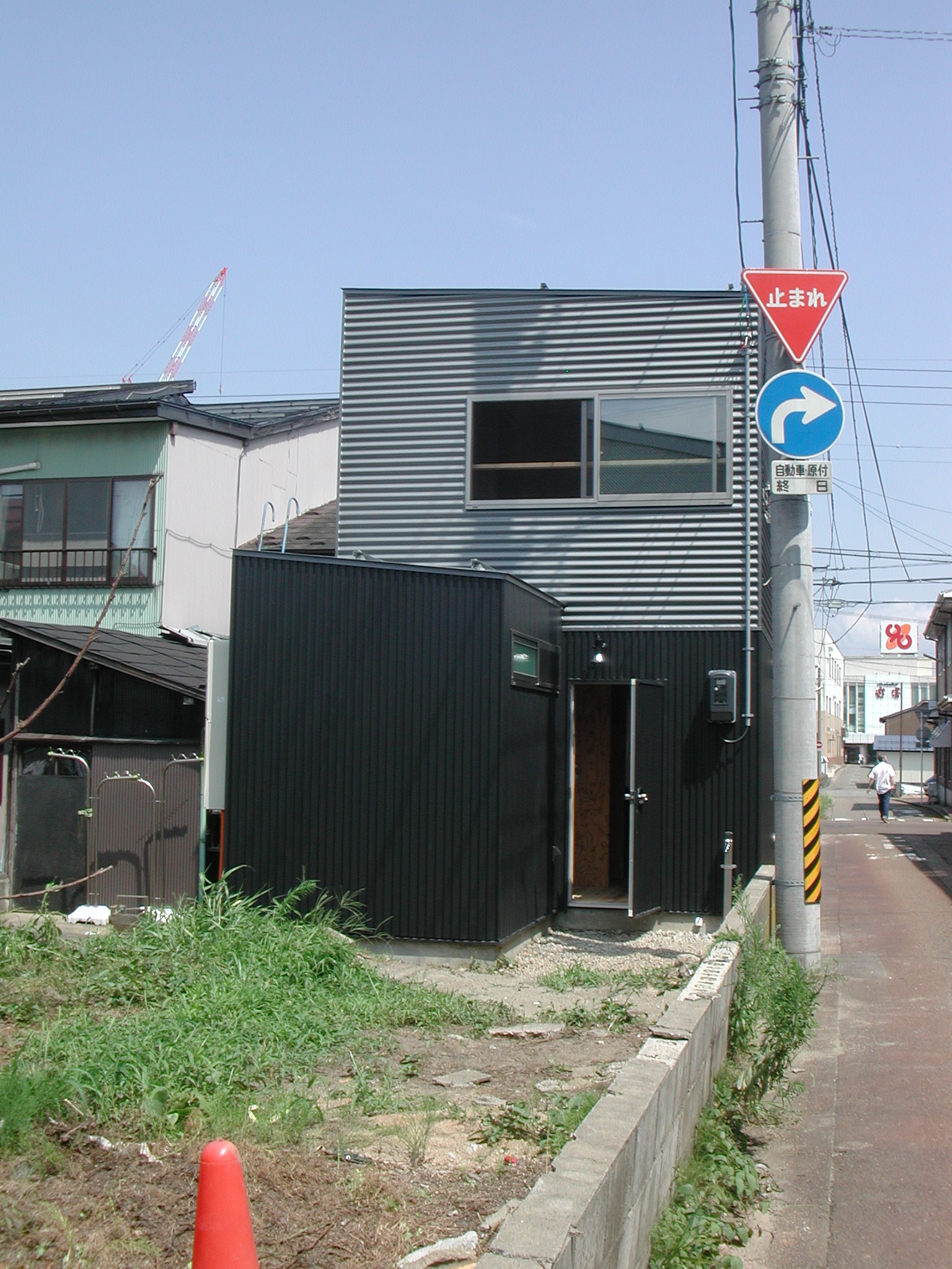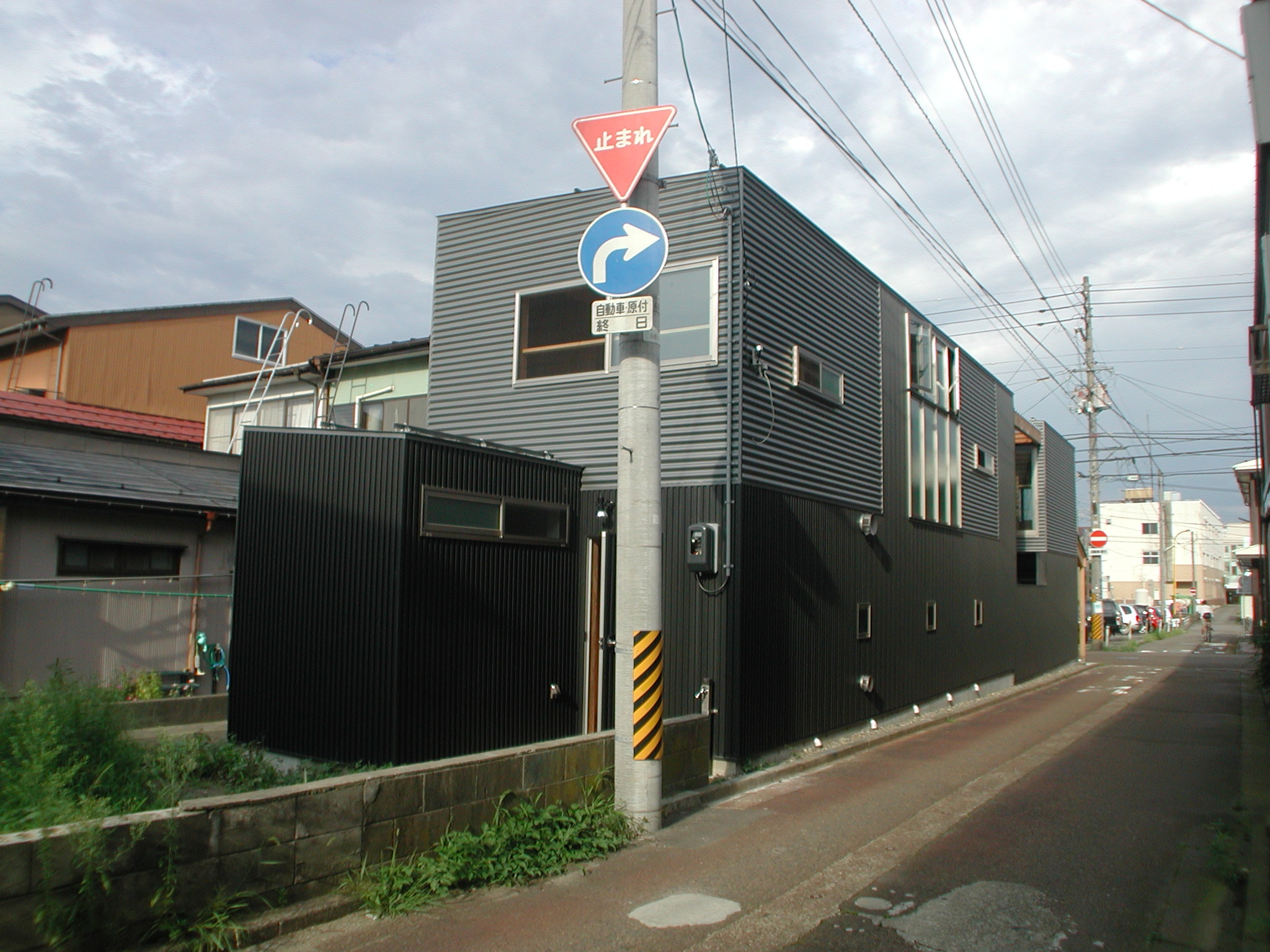 駅から続く商店街の中に位置するこの住宅では、近隣から続く路地を繋ぐ習慣があり、建物の外観と周囲に溶け込む雁木をつくっています。