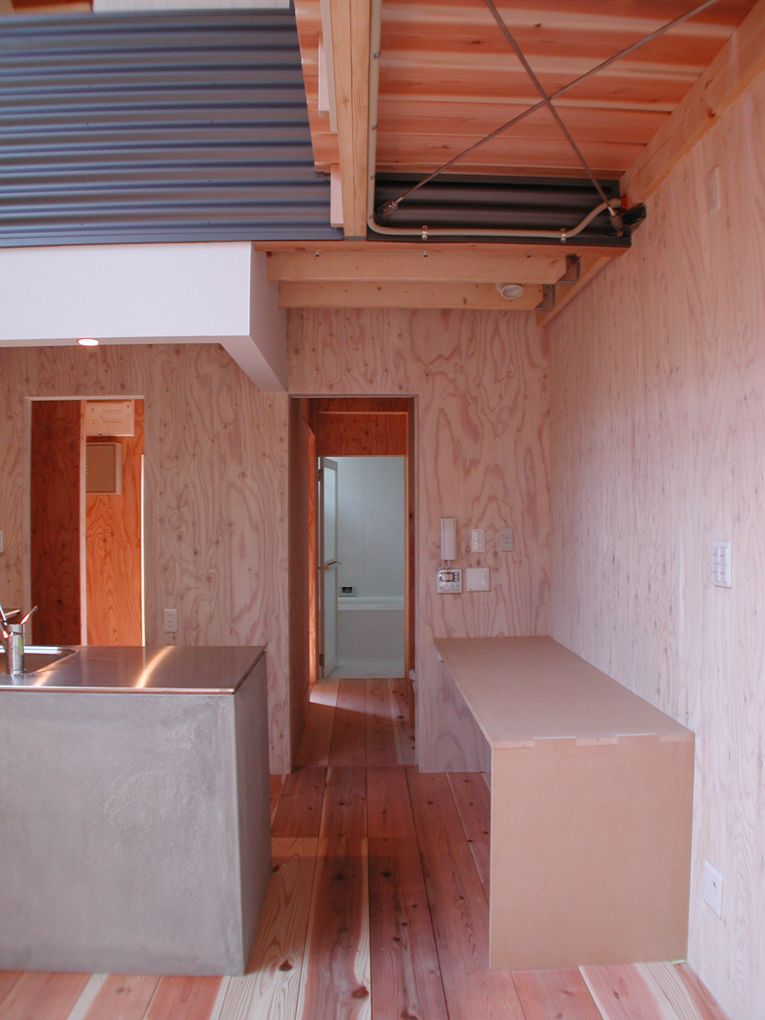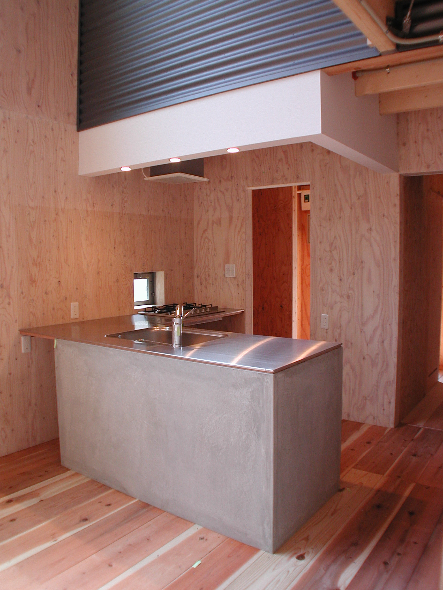 通年に渡って要求を満たす外部と対照的に、内部は生活していく上で必要なモノのベースまでとする必要十分にこだわり、日曜大工が趣味のご主人がつくる部分も計画した、ローコストを突き詰めています。