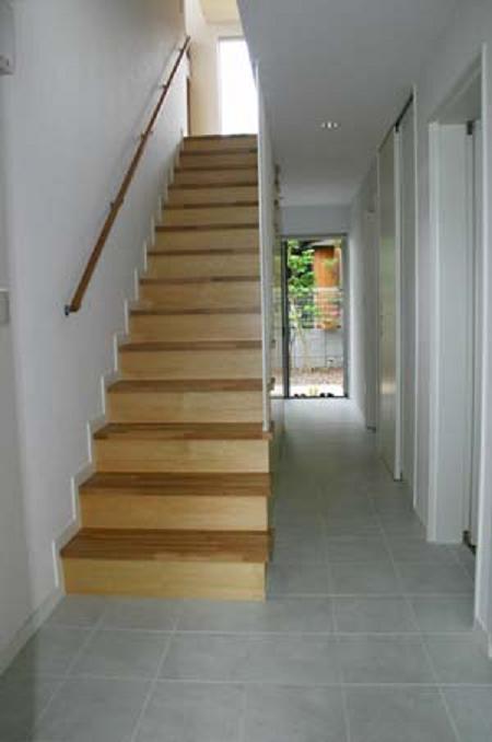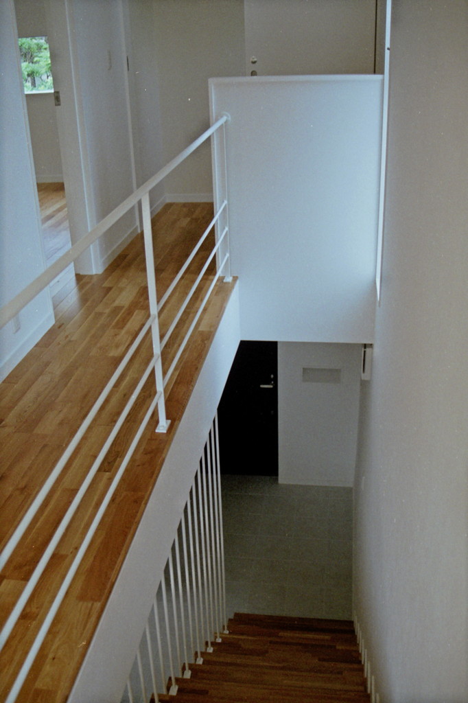 見晴らしの良い2階にリビング・ダイニング、1階のプライベートスペースを真ん中に配した廊下と階段でつなぐプランになっています。