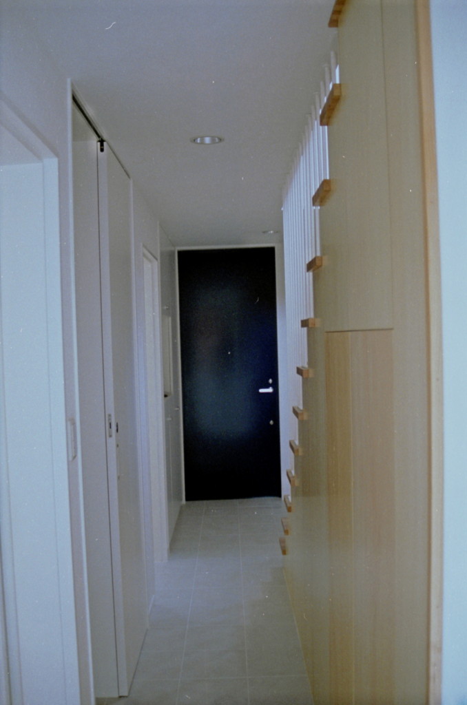 都立公園の入り口につながる幅員が4mに満たない北側道路に面して建つ住宅です。