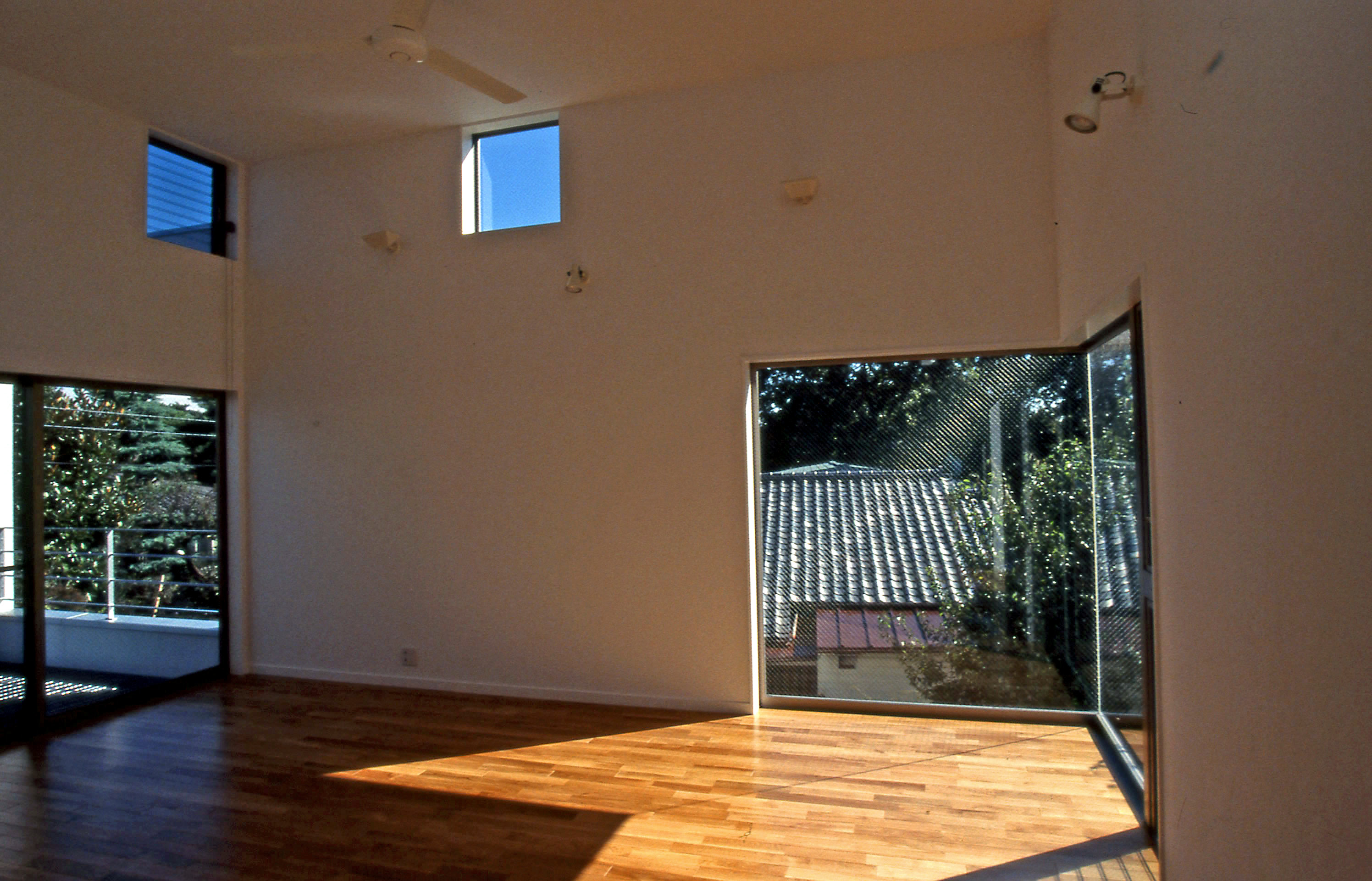 まだ木造2階建ての古家が解体される前だったので、内部を見せていただき2階からの眺め等をチェックし、外部空間をどう内部に取り込み快適な生活を送るかをテーマに設計をしました