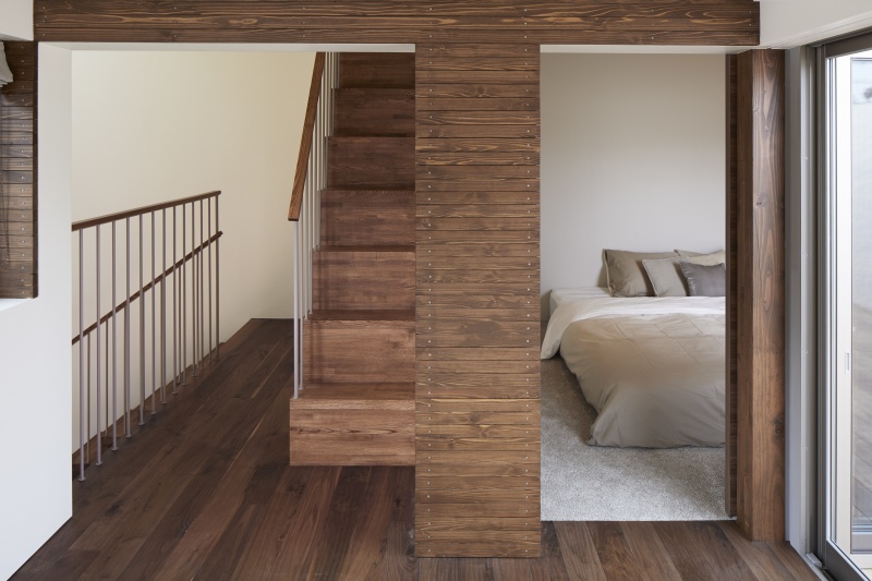 建物のボリューム配置と開口部の配置検討を丁寧に行い、縦横高さの大きさの異なる箱を3つ並べ敷地形状に応答し、その箱たちが外部環境に対して“開くところ”“閉じるところ”“繋げるところ”を適正に配置しメリハリを与えることで自然環境を享受しながらもプライバシーを確保することに答えました。