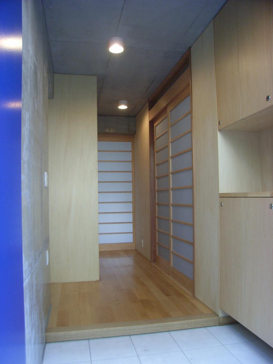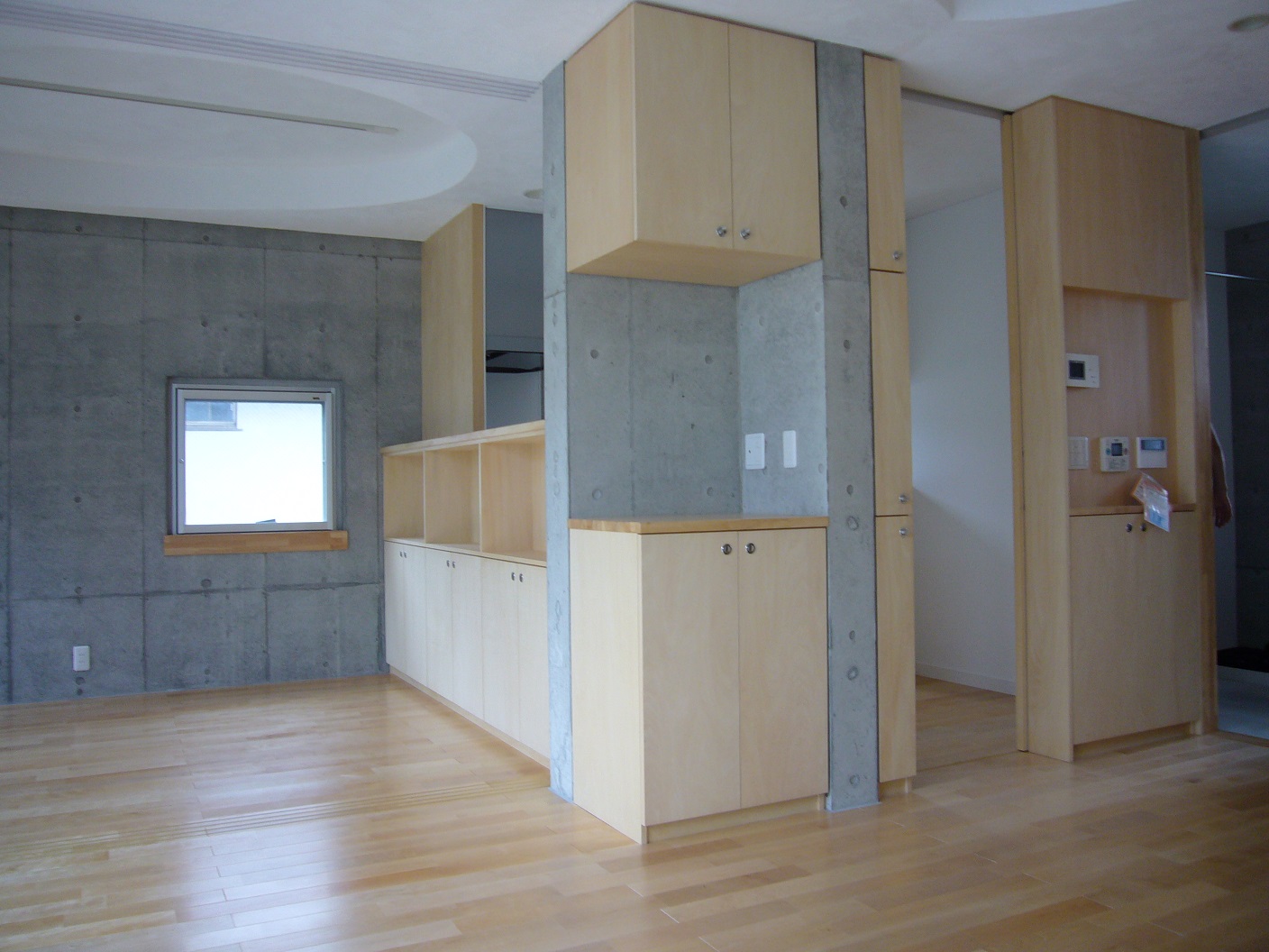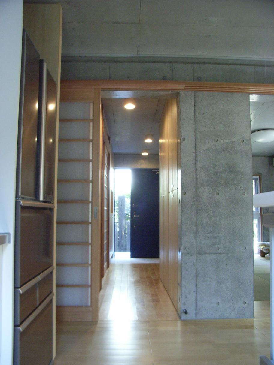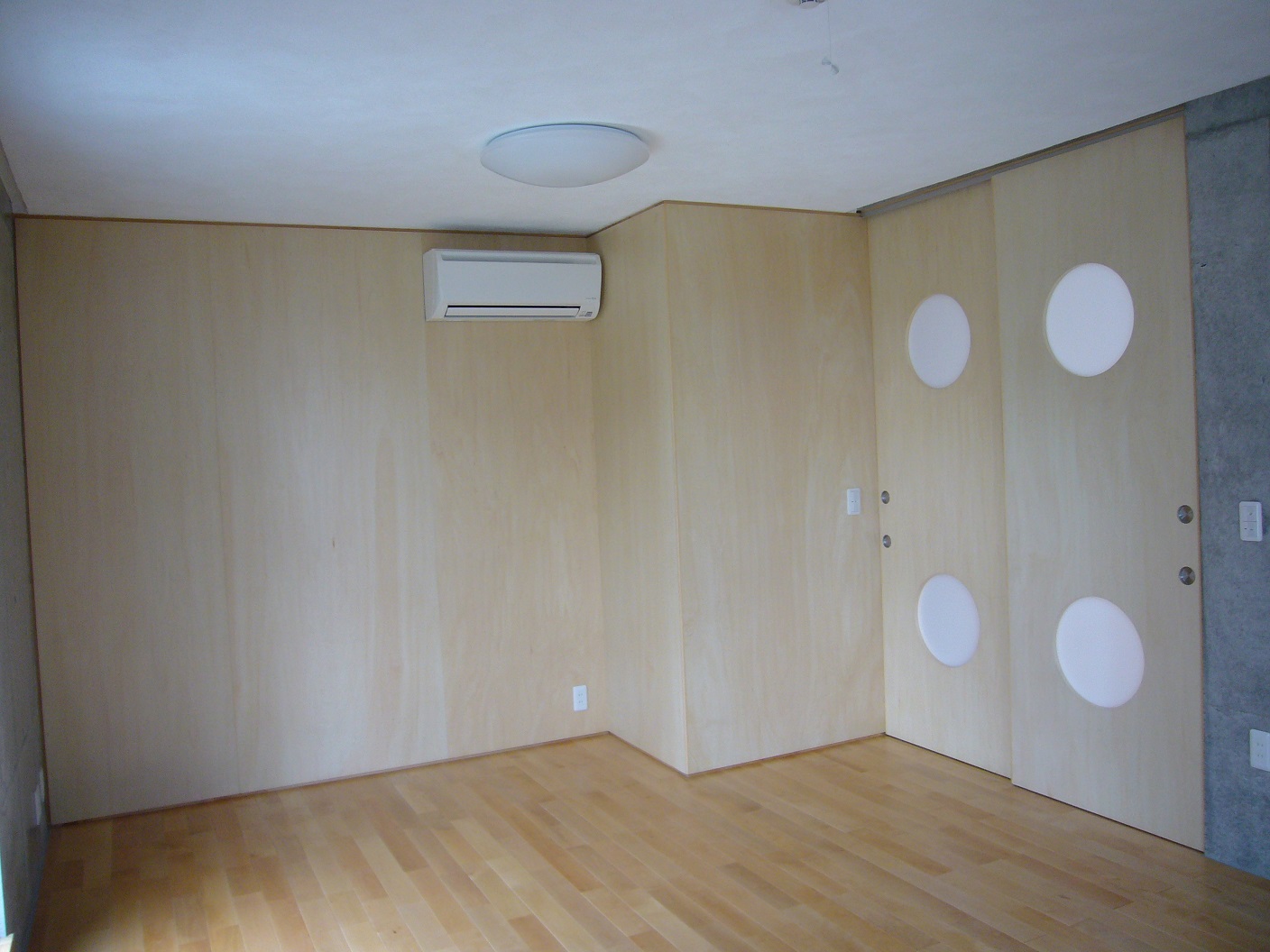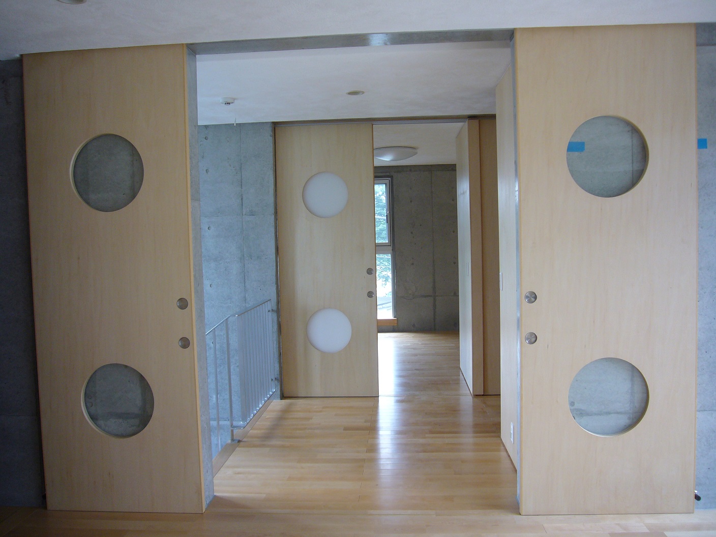 この住宅は高齢者や幼児がいらっしゃるので、玄関ドアを除いて室内はすべて引き戸にして安全性を考慮しています。