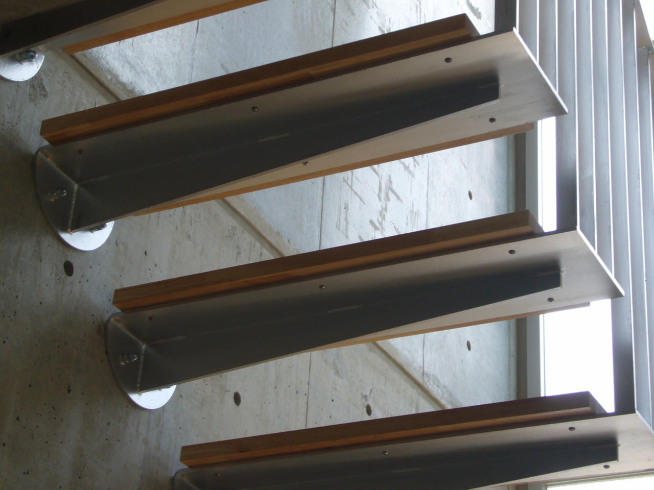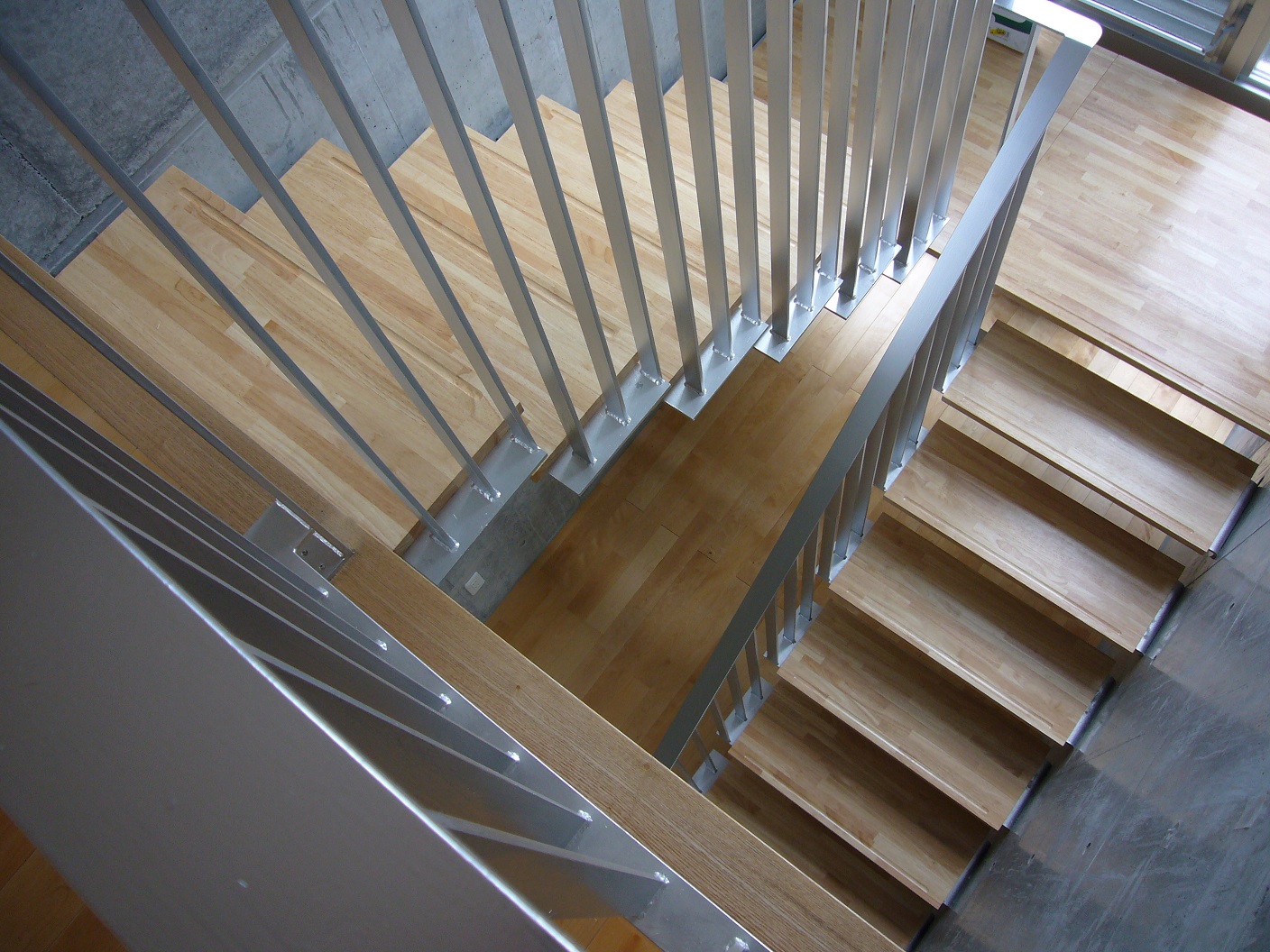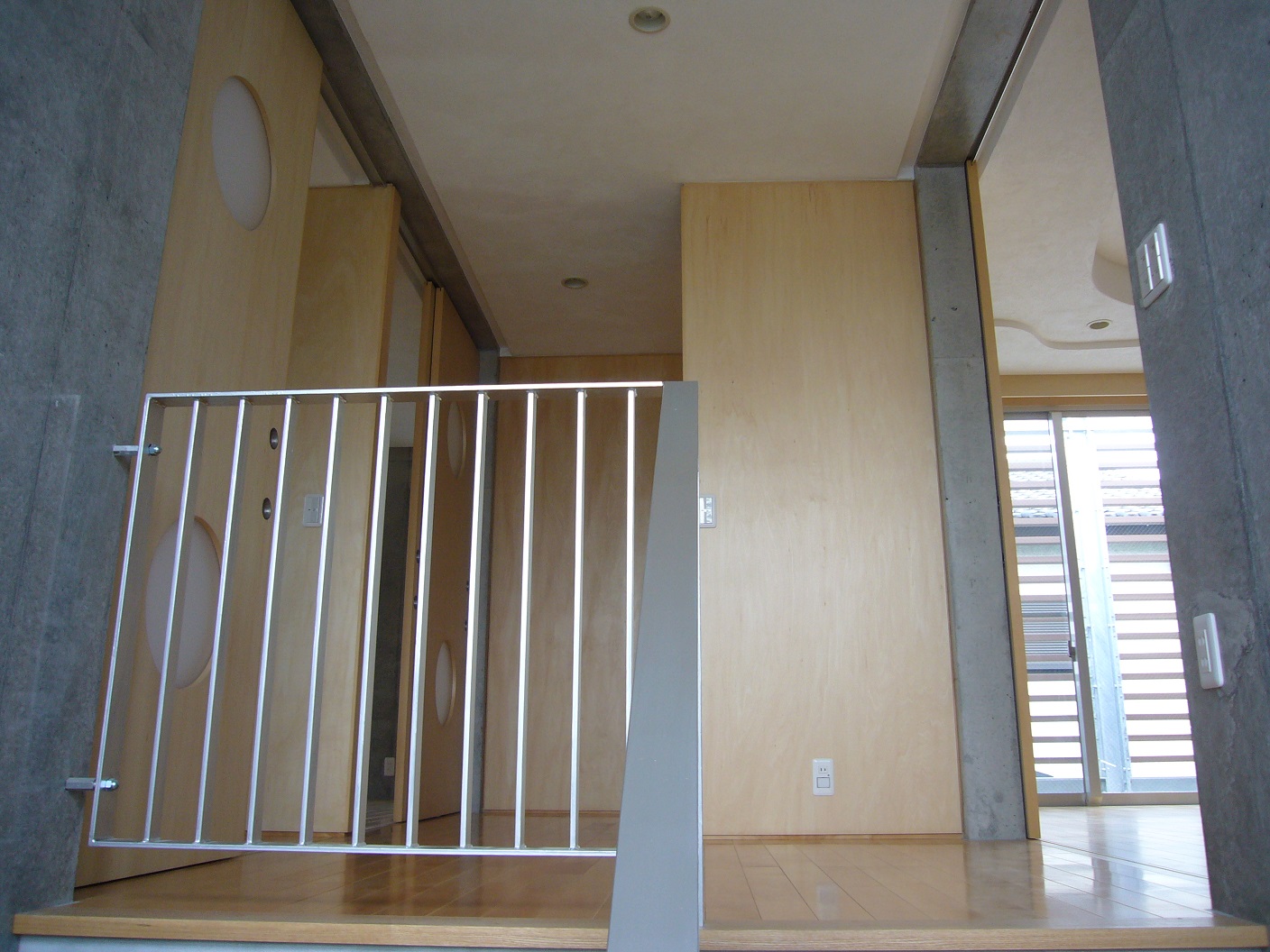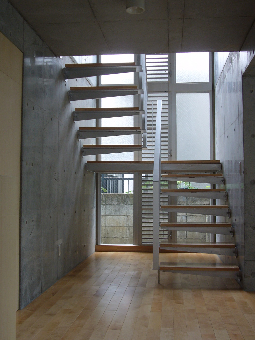 2階住居へは1階の玄関ホールから吹き抜けになった鉄骨階段を上がって入ります。