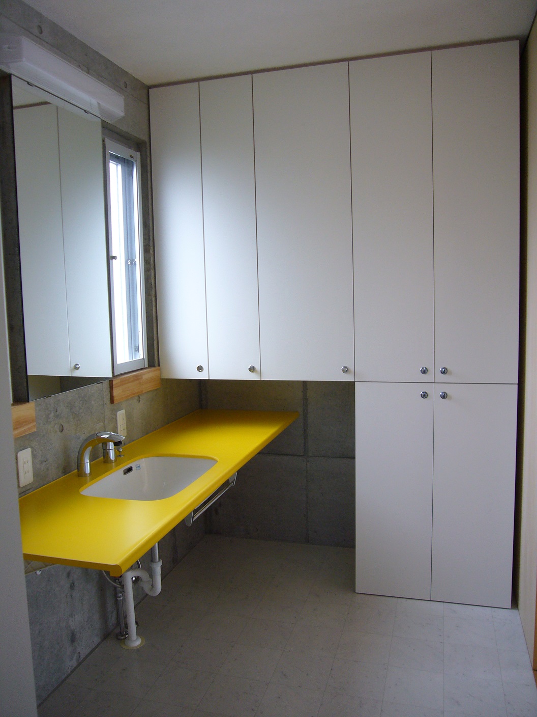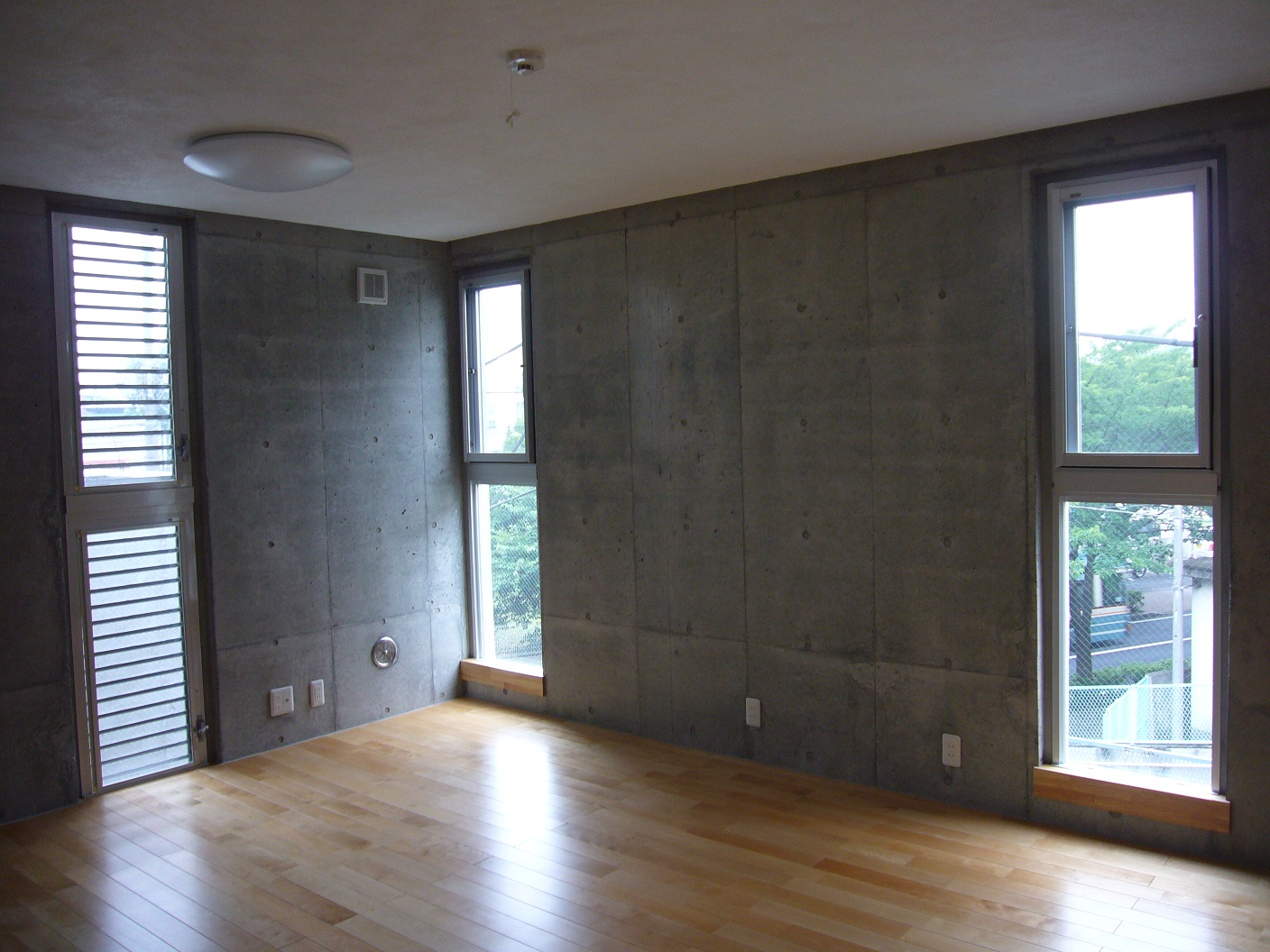 北側にある寝室と子供室はプライバシーを考慮して開口部は縦長のスリット窓にしています。