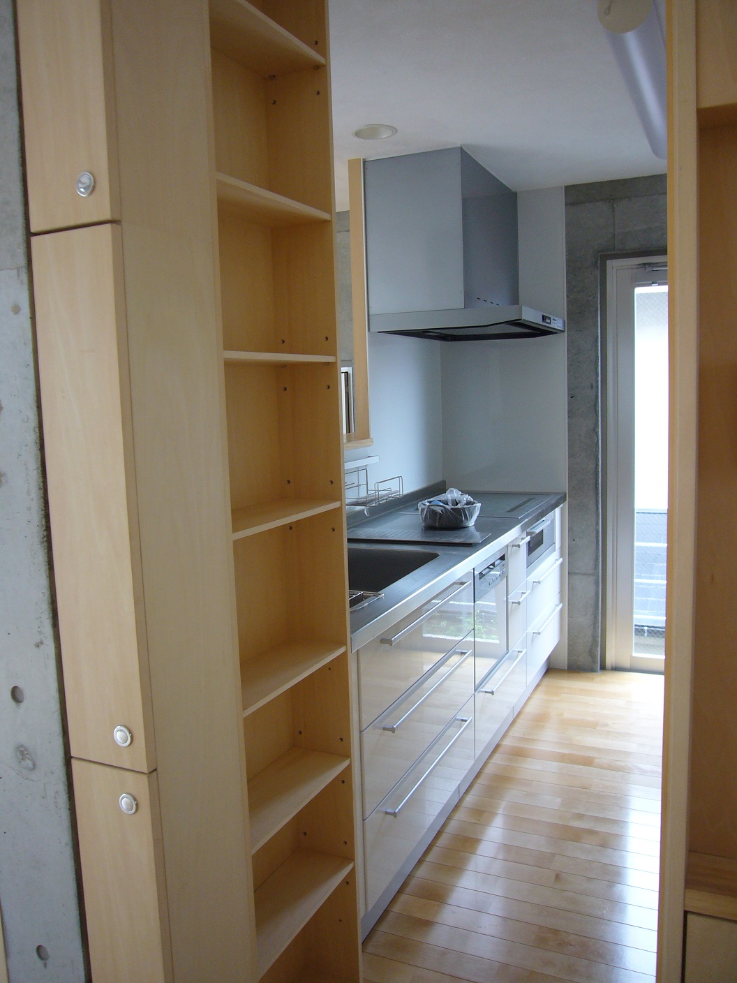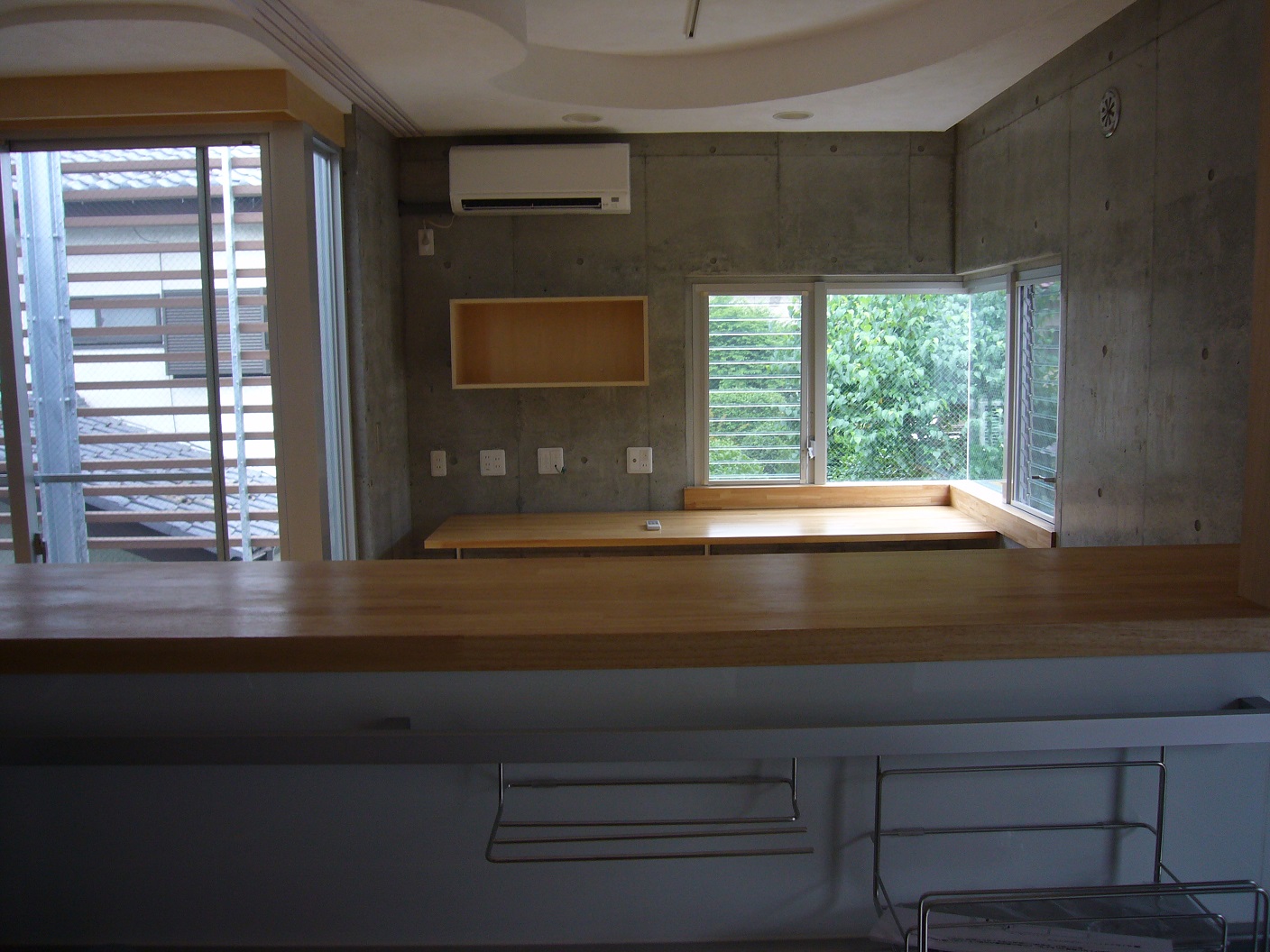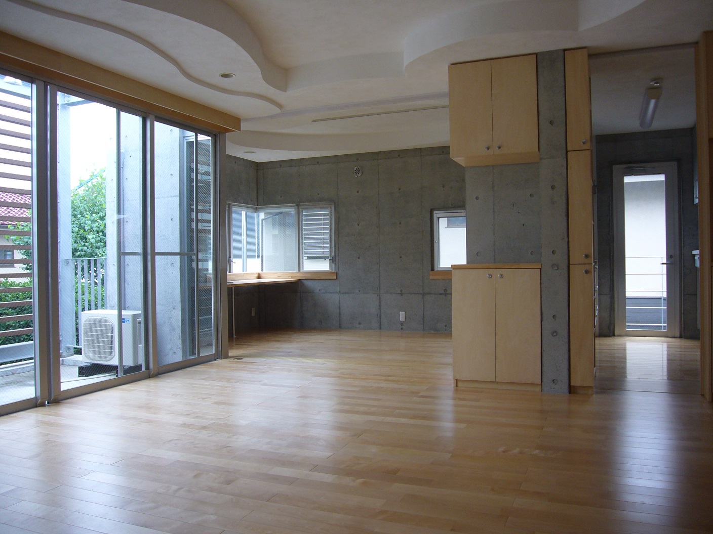 駅へと続くバス通りは人通りも多く道路からも眺めが良いため、1階部分の道路側にお母様の趣味である陶芸の作品を展示したり、あるいは一般の方にお貸しできるようにギャラリースペースになっています。したがって道路側に面した1階はギャラリースペースのために大きな開口部(窓)を取っています。