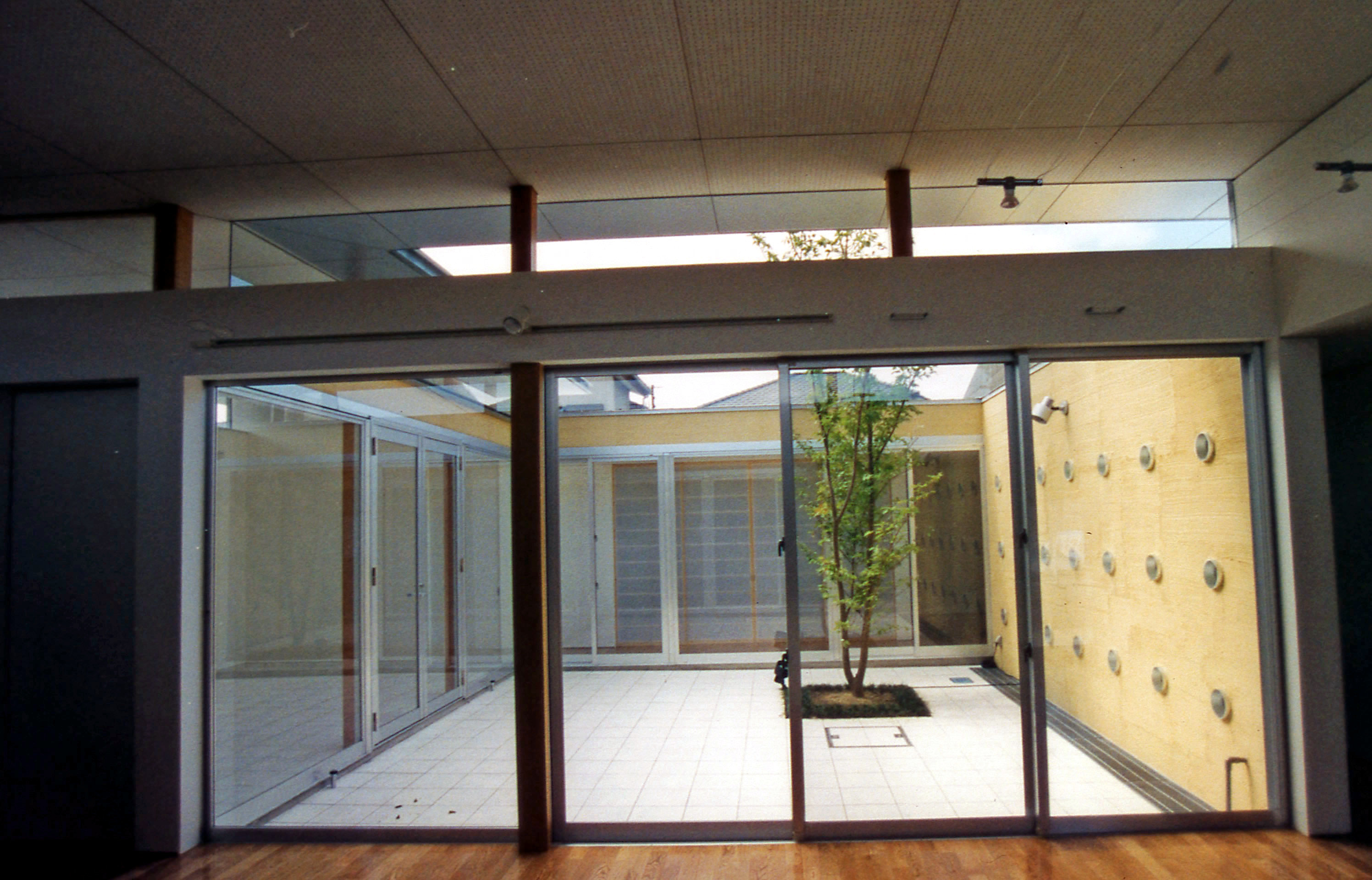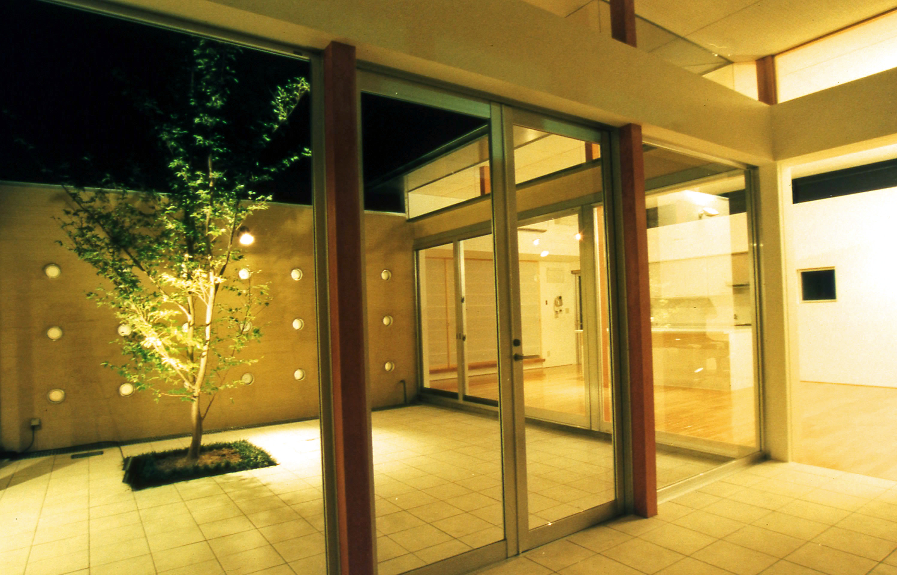 象徴的な一本のヒメシャラの木を配した中庭(コート)が、この住宅の中心的空間であり採光のための空間でもあります。