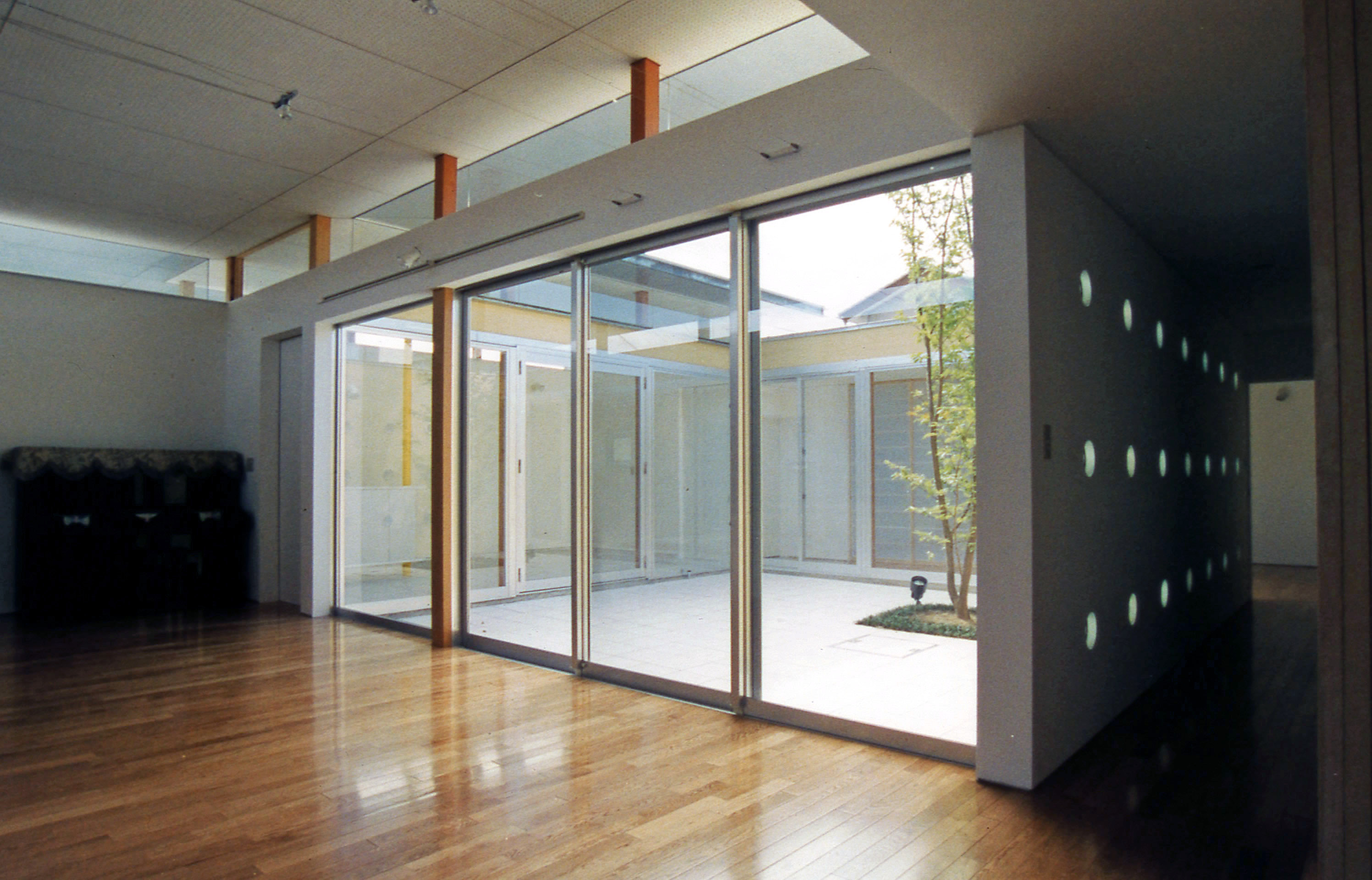 プライバシーの守られた中庭に内部空間を開放し、周囲の乱雑な風景でなく自分達だけの風景と向き合うことができるため中庭から見る空は独り占めです。