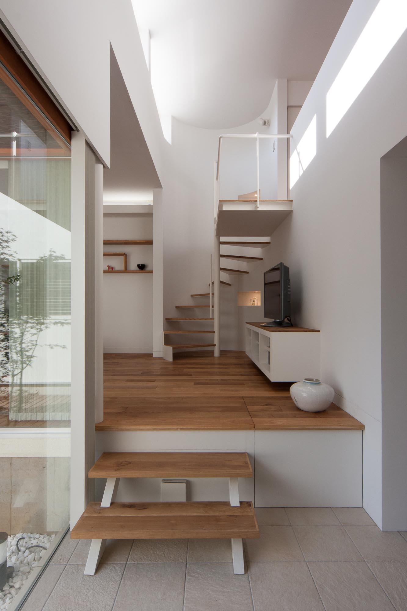 床レベルは玄関・LDK・ロフトと3つのレベルでスキップフロアー的に構成されている。