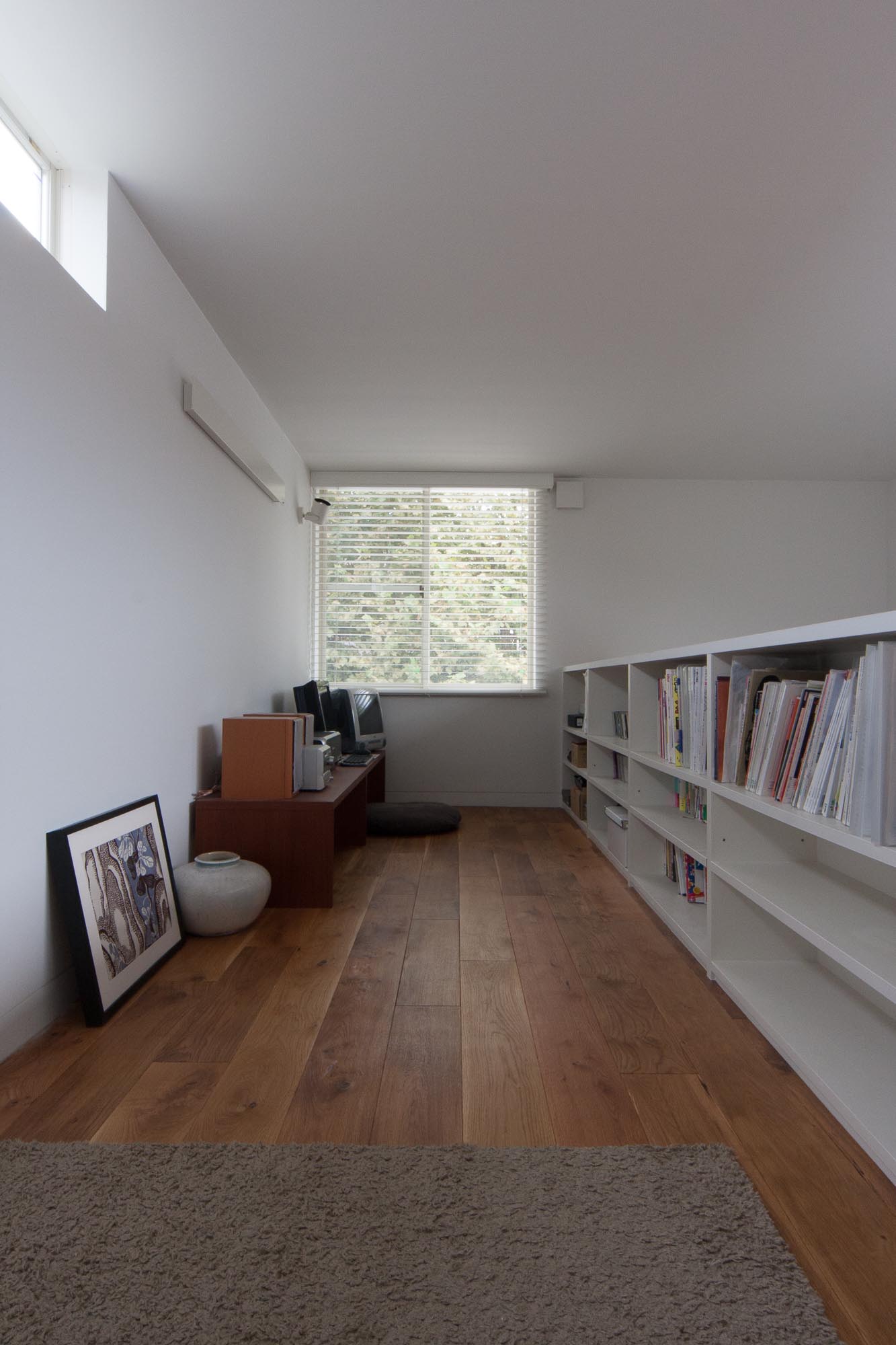 ロフト空間は、家族共有の多目的な用途が考えられるが、現状ではパソコンスペースとなっている、机は低く抑え床に座っての利用とした。