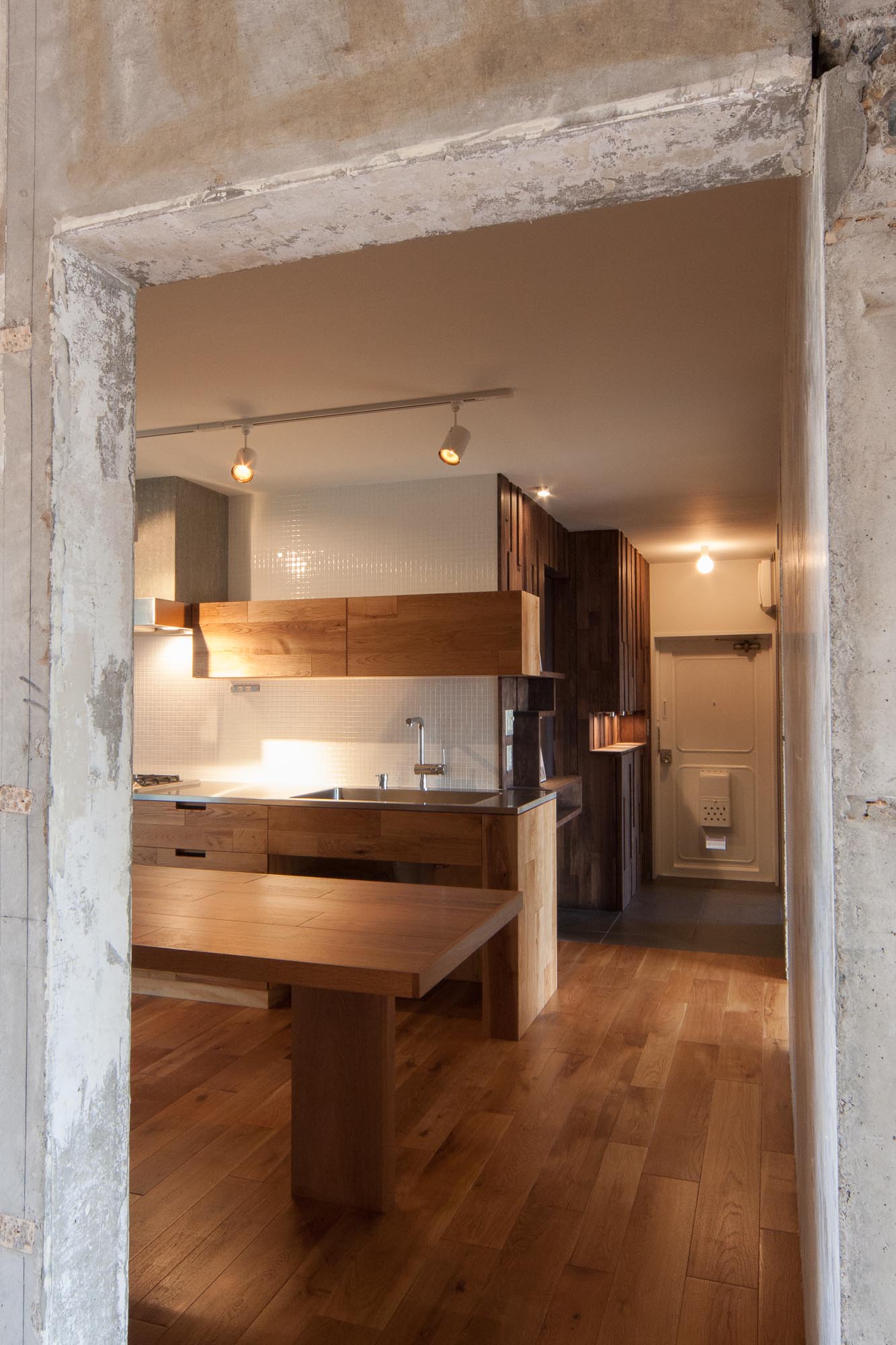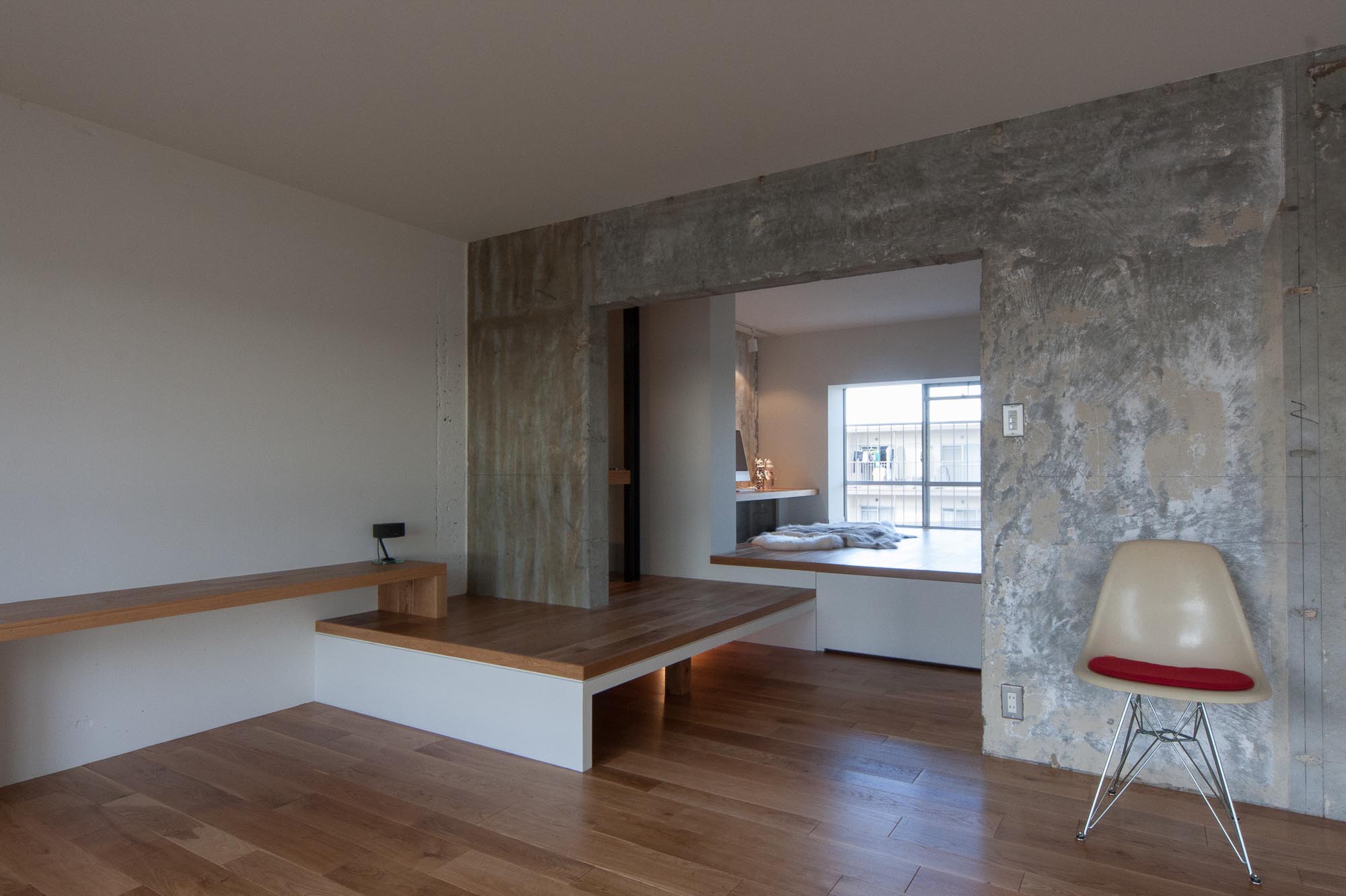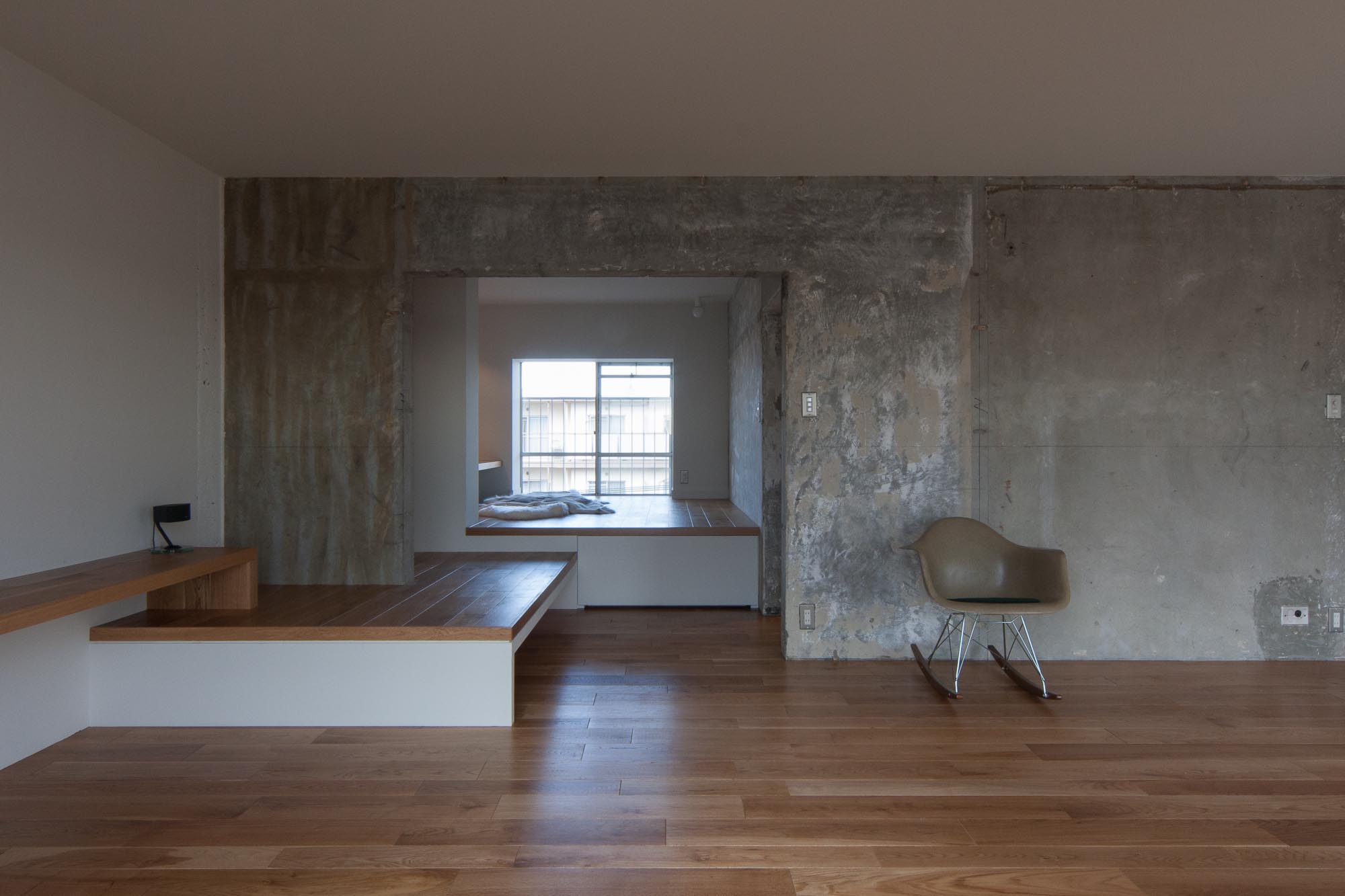 内部建具とその枠を全て取り去り・コンクリートの壁をむき出しにすることで