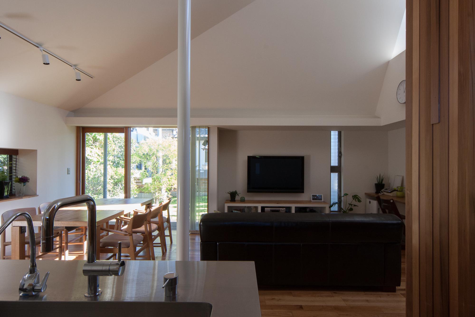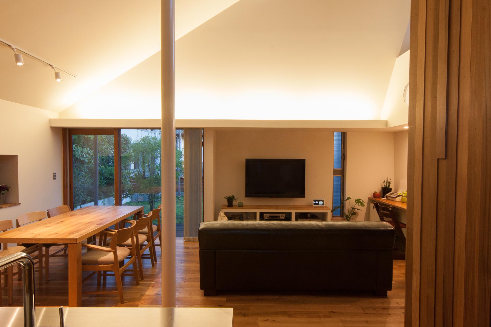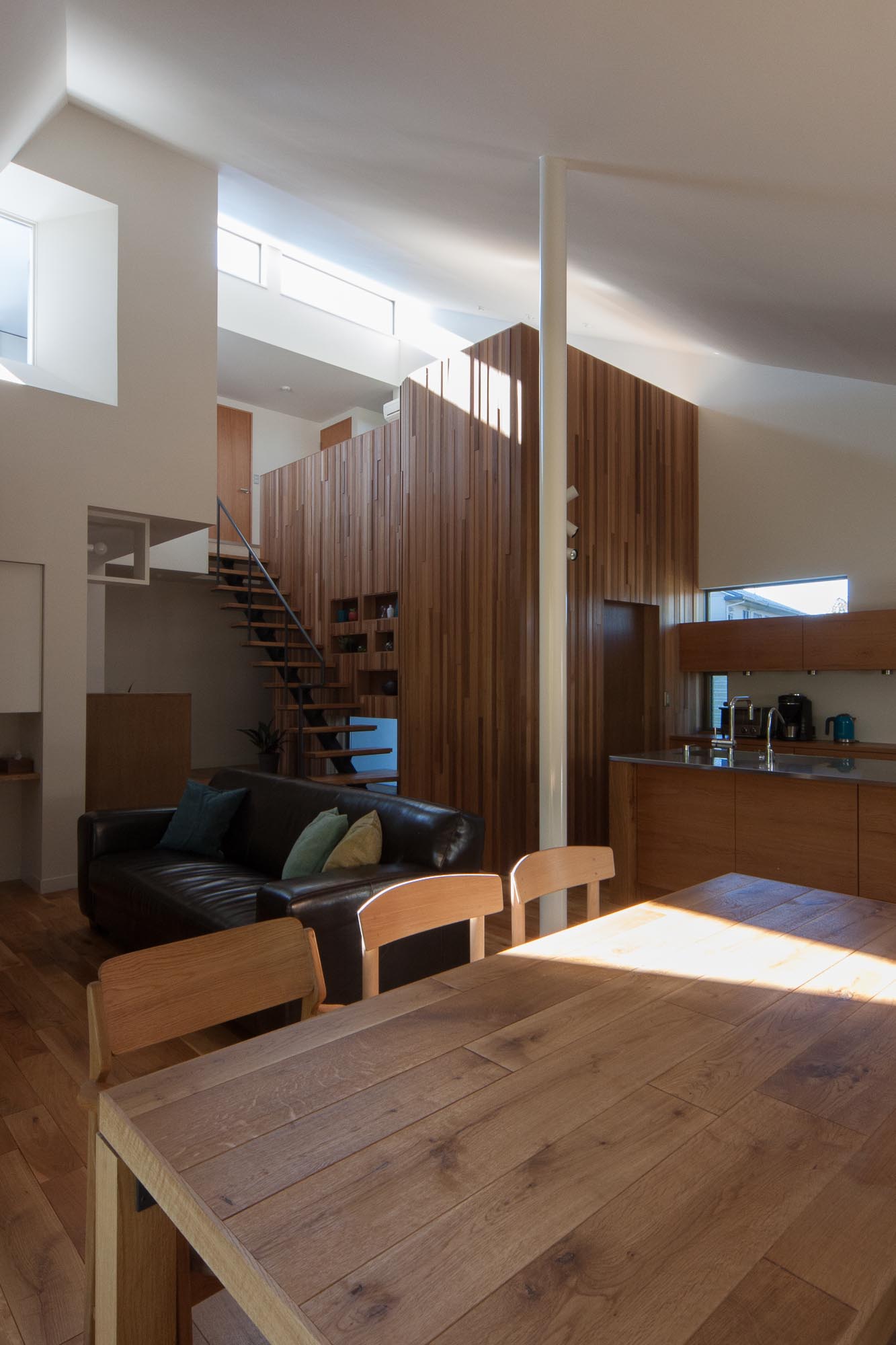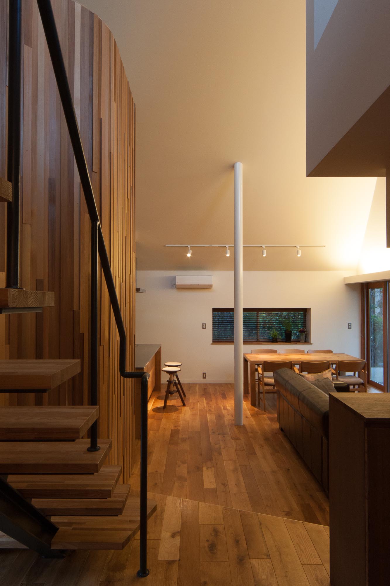 視線は住空間の奥まで届き広がりを感じながらも、プライベートを確保している。