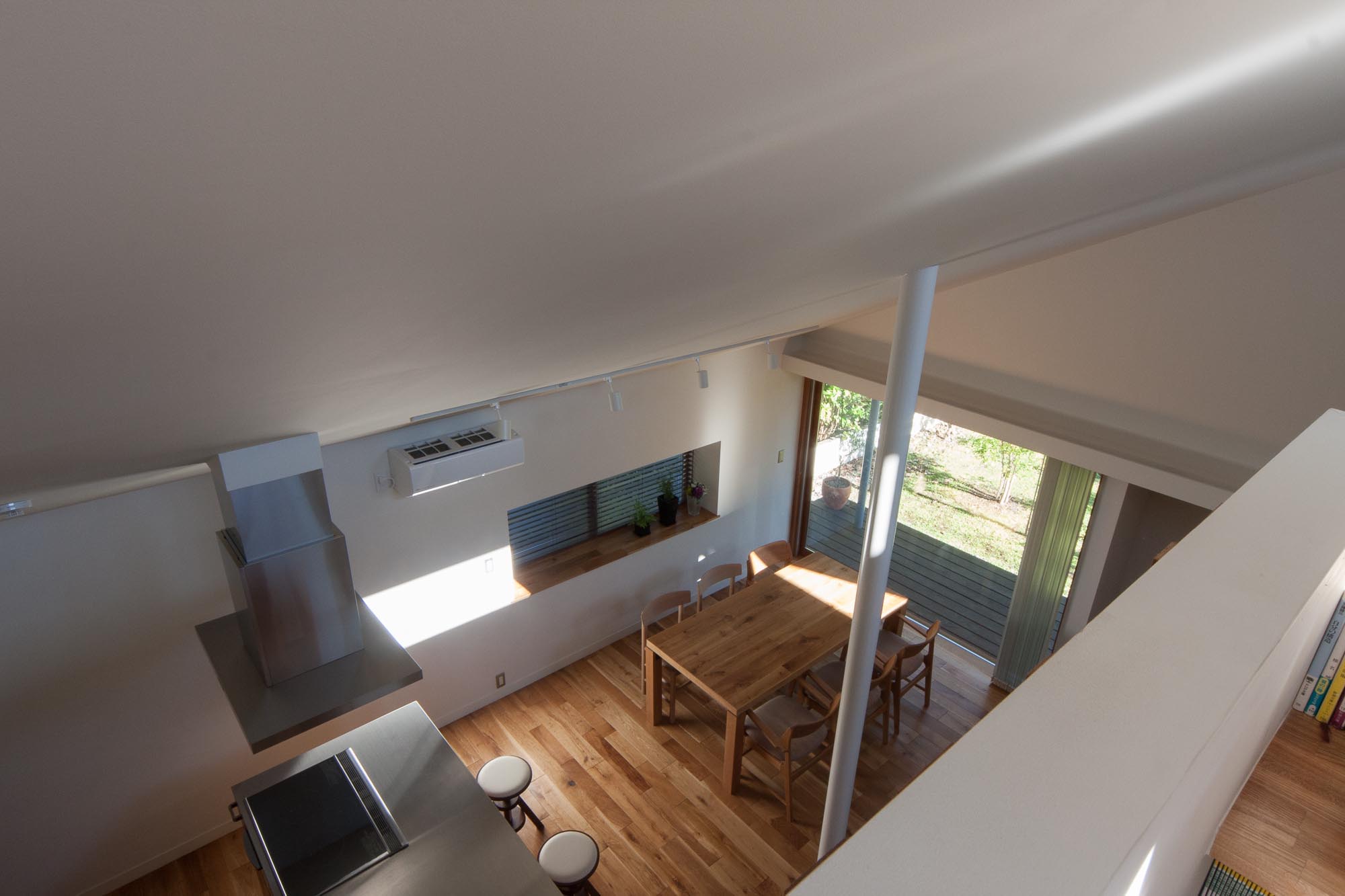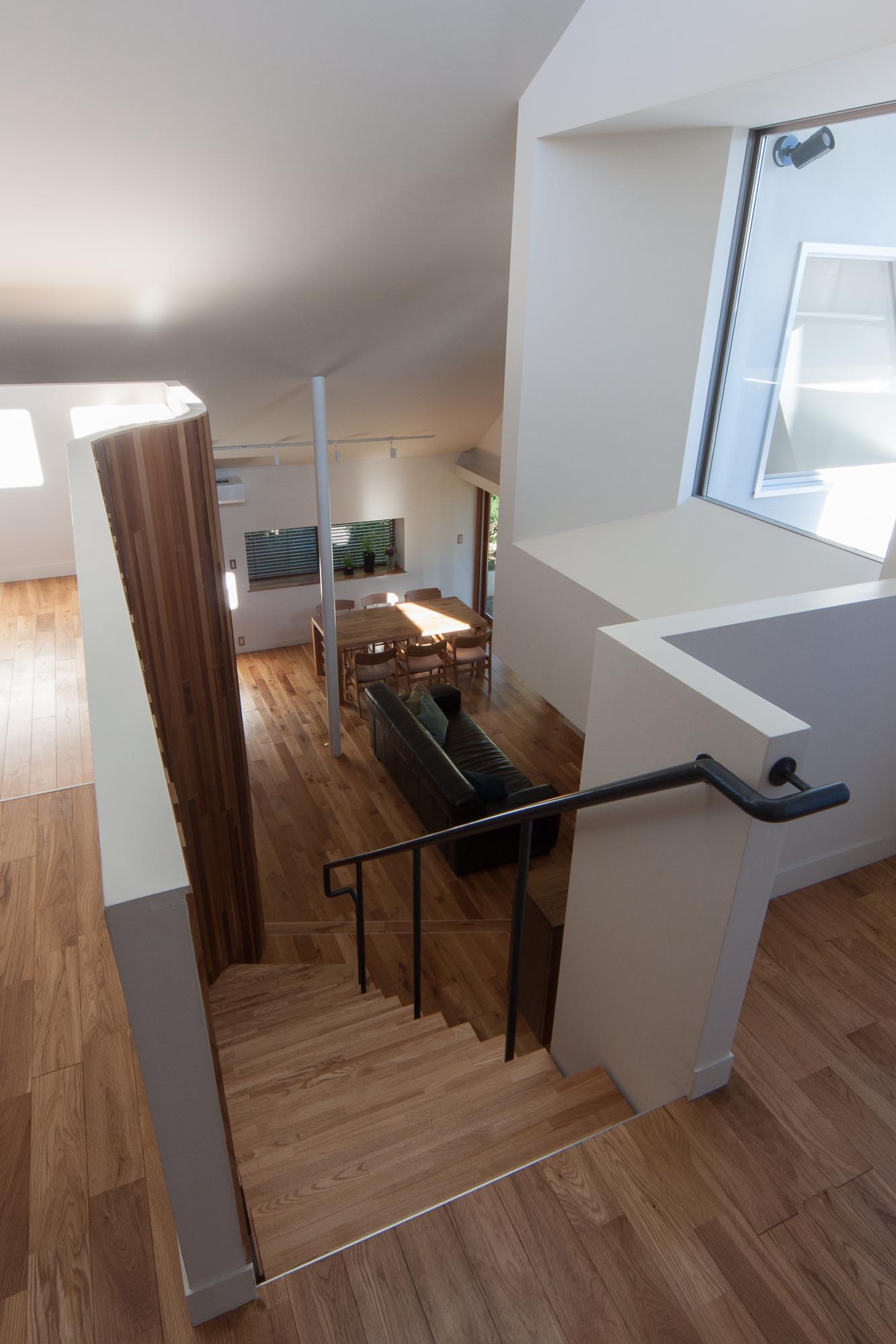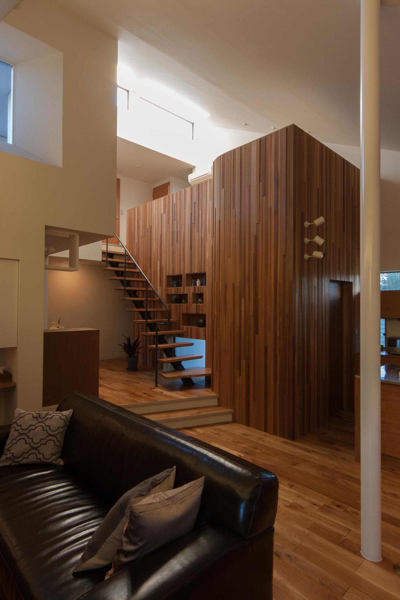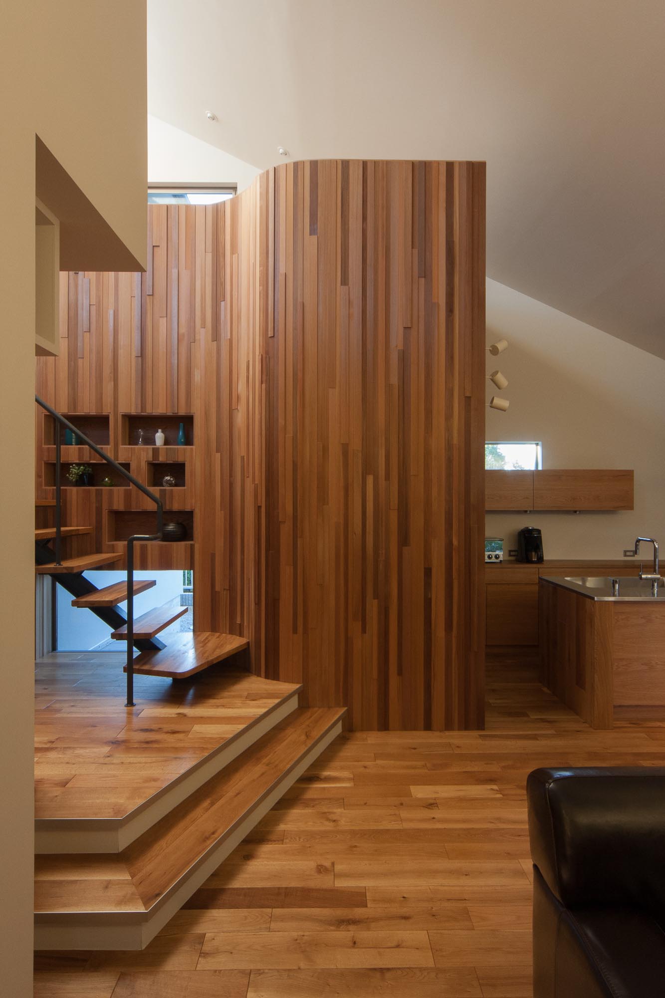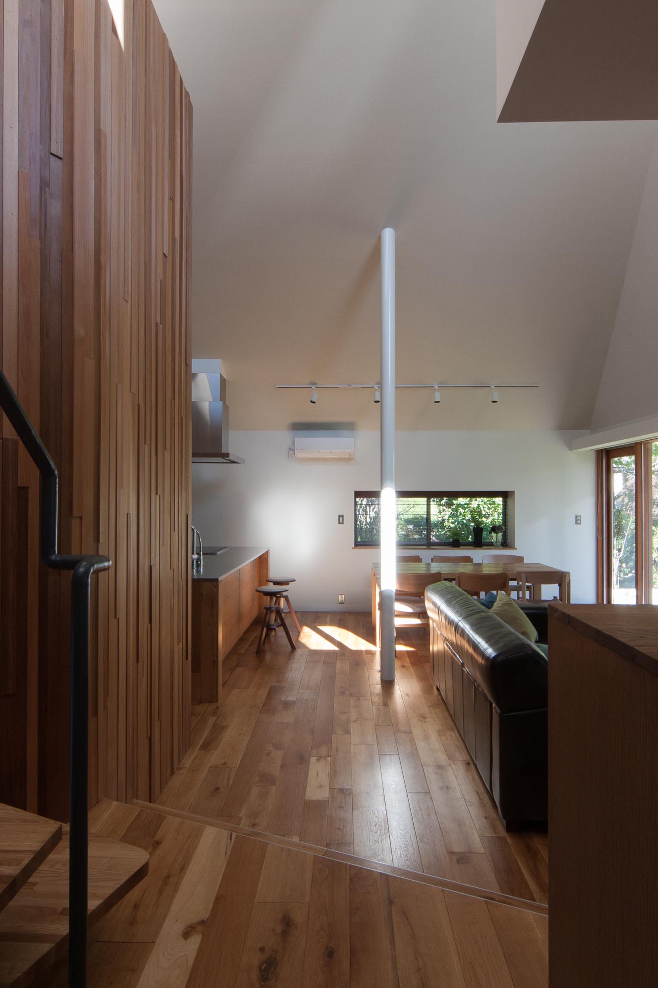 視線は住空間の奥まで届き広がりを感じながらも、プライベートを確保している。