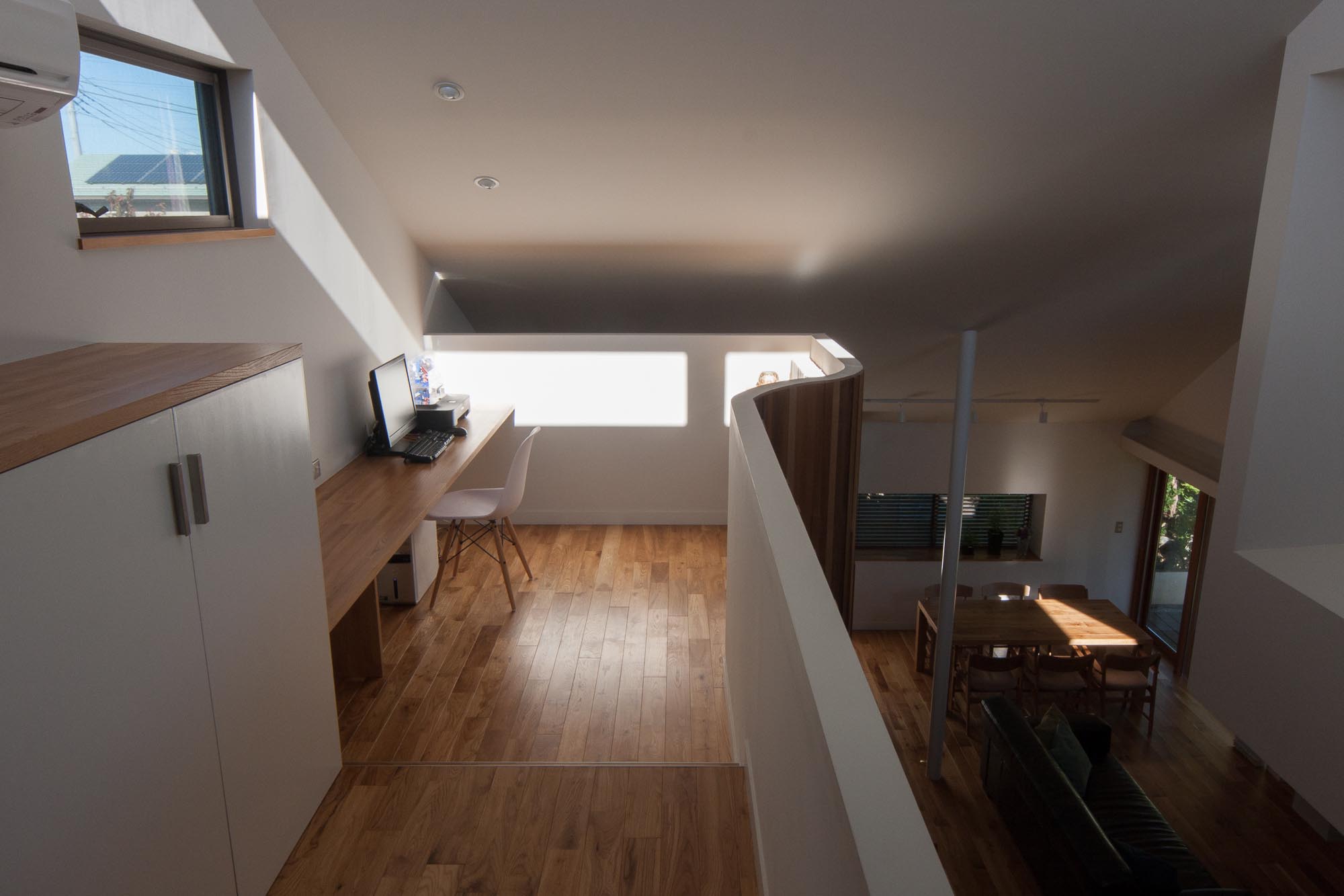 リビング横の書斎は小上りとなっており、床下は大きな引き出し式の収納になっている。