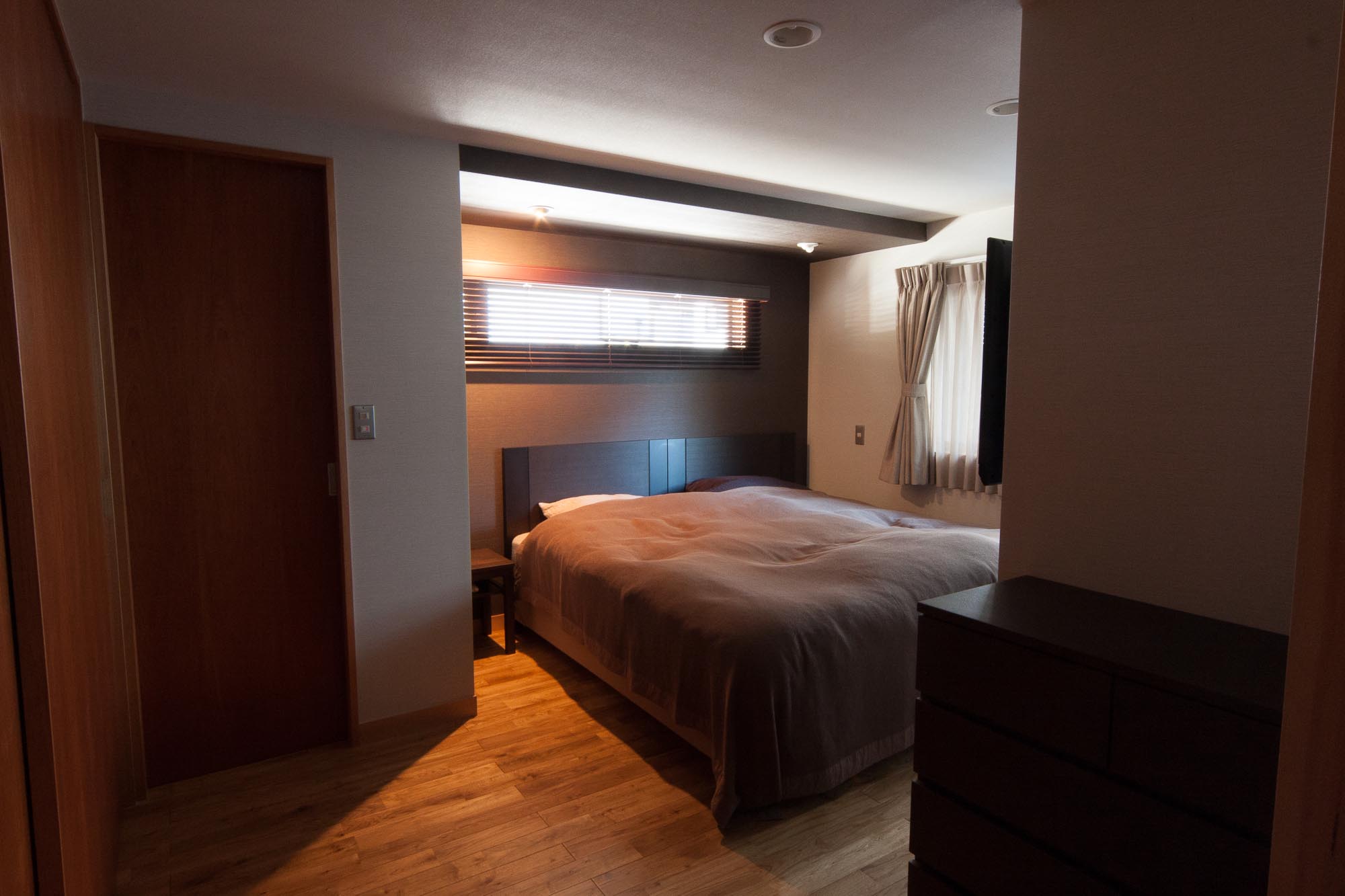 このスペースはバーチカルブラインドで仕切り、寝室としての利用も可能になっている。