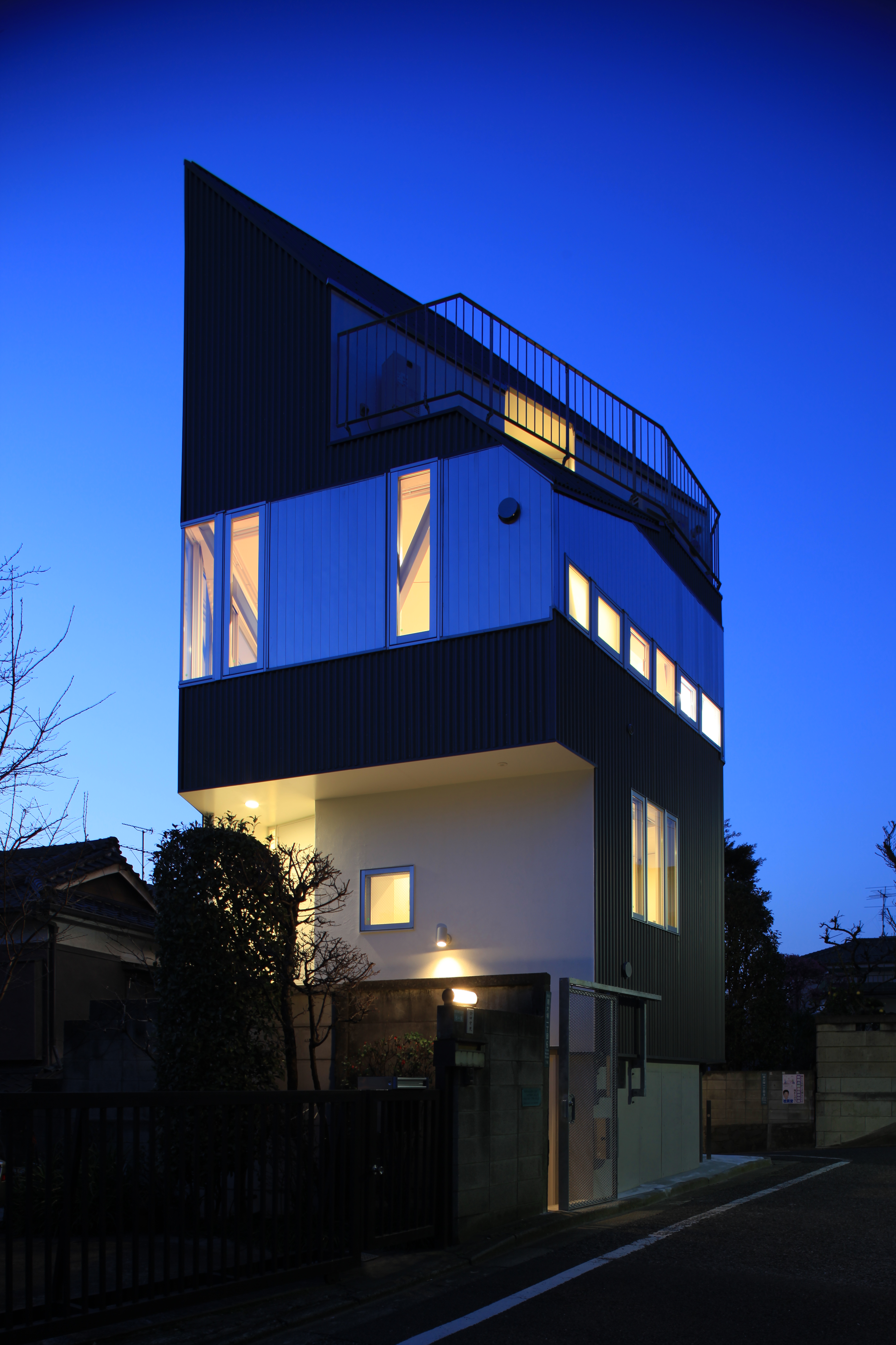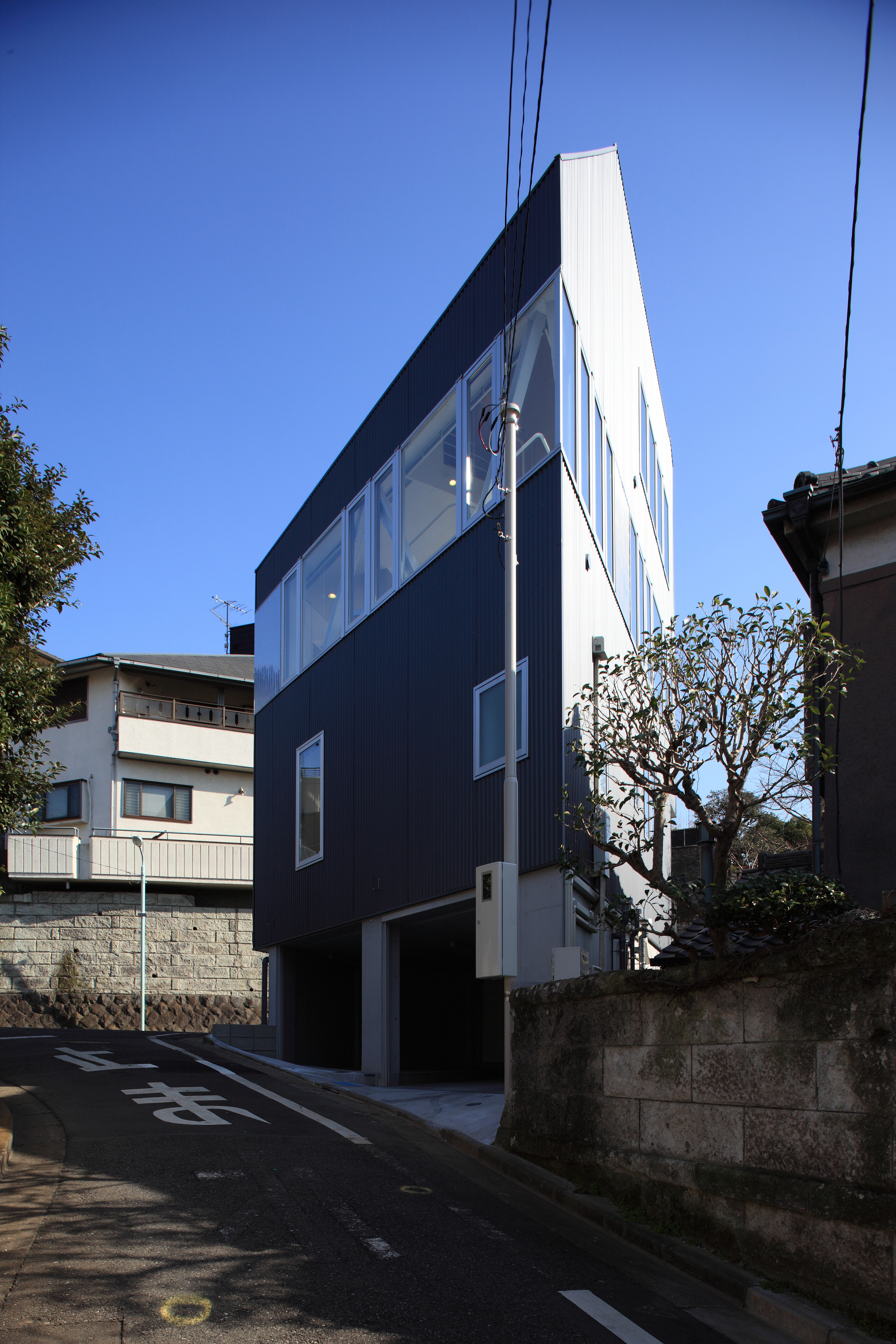 都心の住宅密集地にある小高い丘の中腹に建つ、夫婦