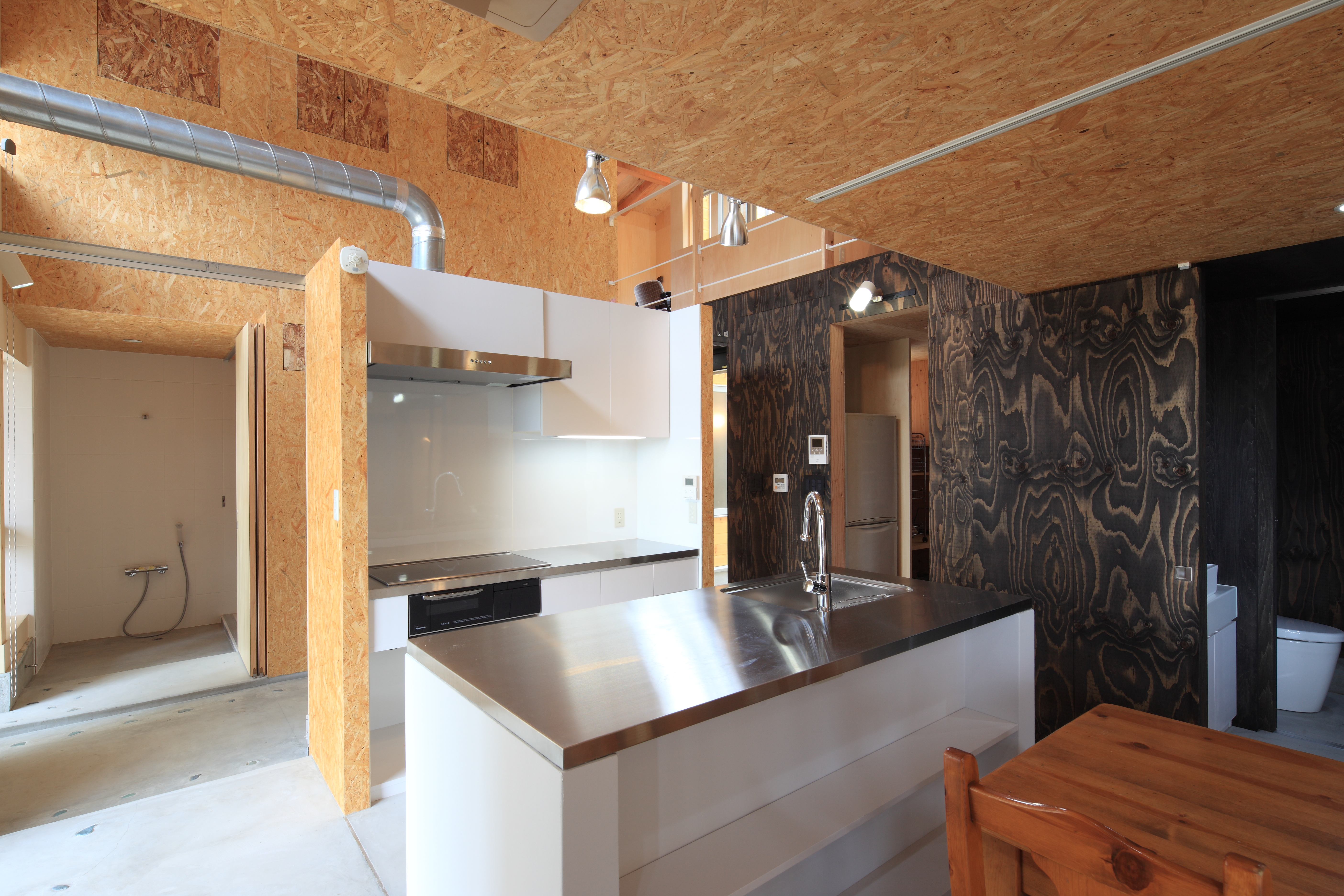 親子4人犬3匹が暮らすこの家に完全な個室は無く、大空間の中に、キッチンや水廻りの収納家具を配置することでいろんな時間を過ごすための場所を分けています。