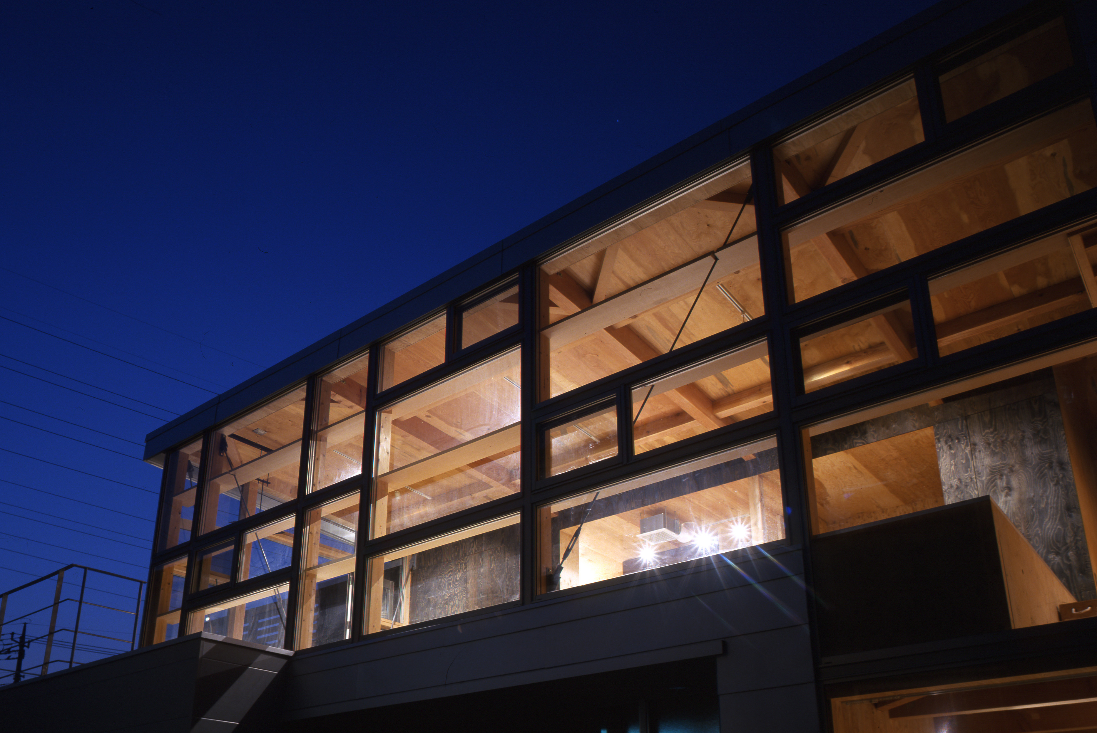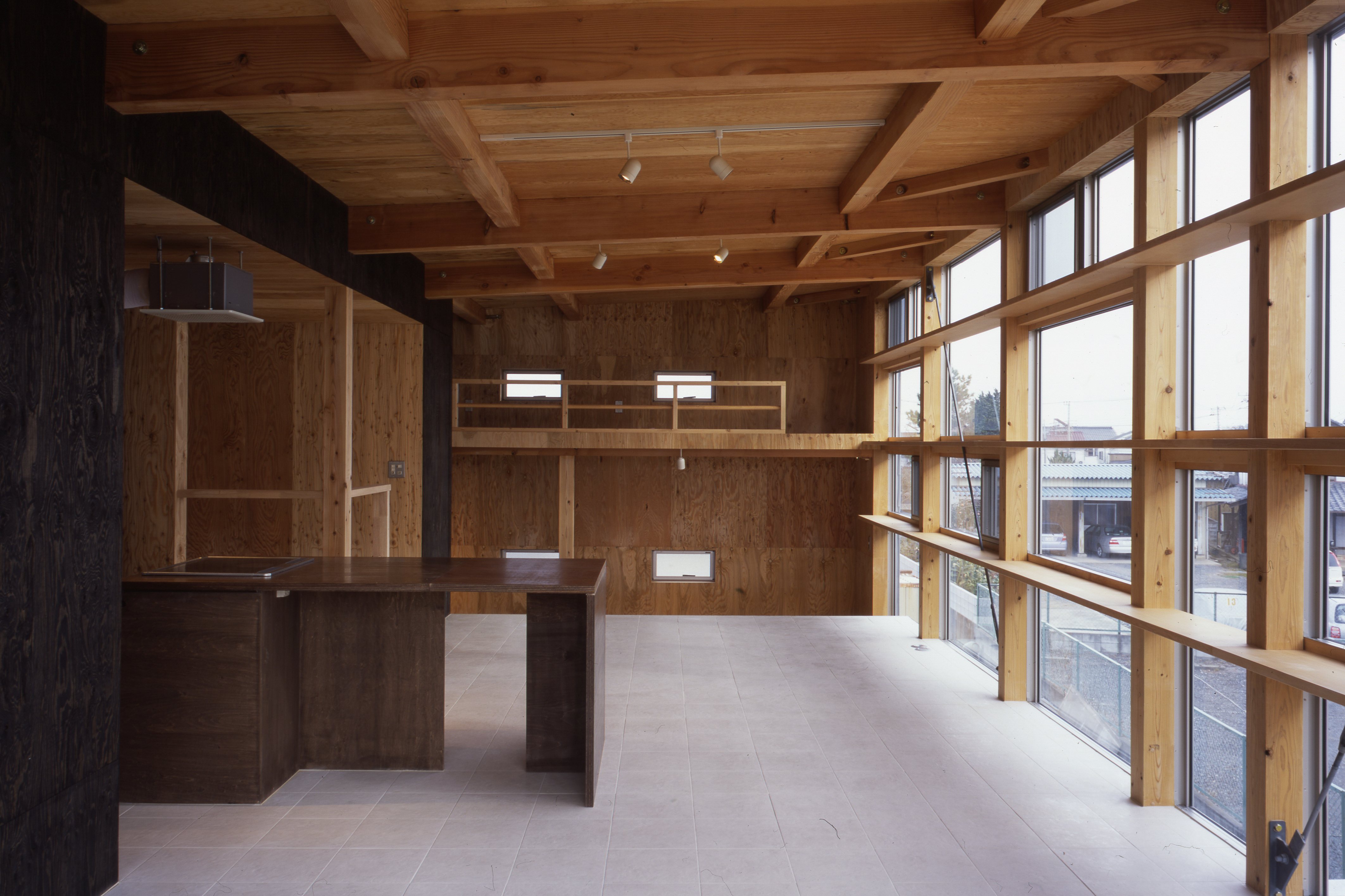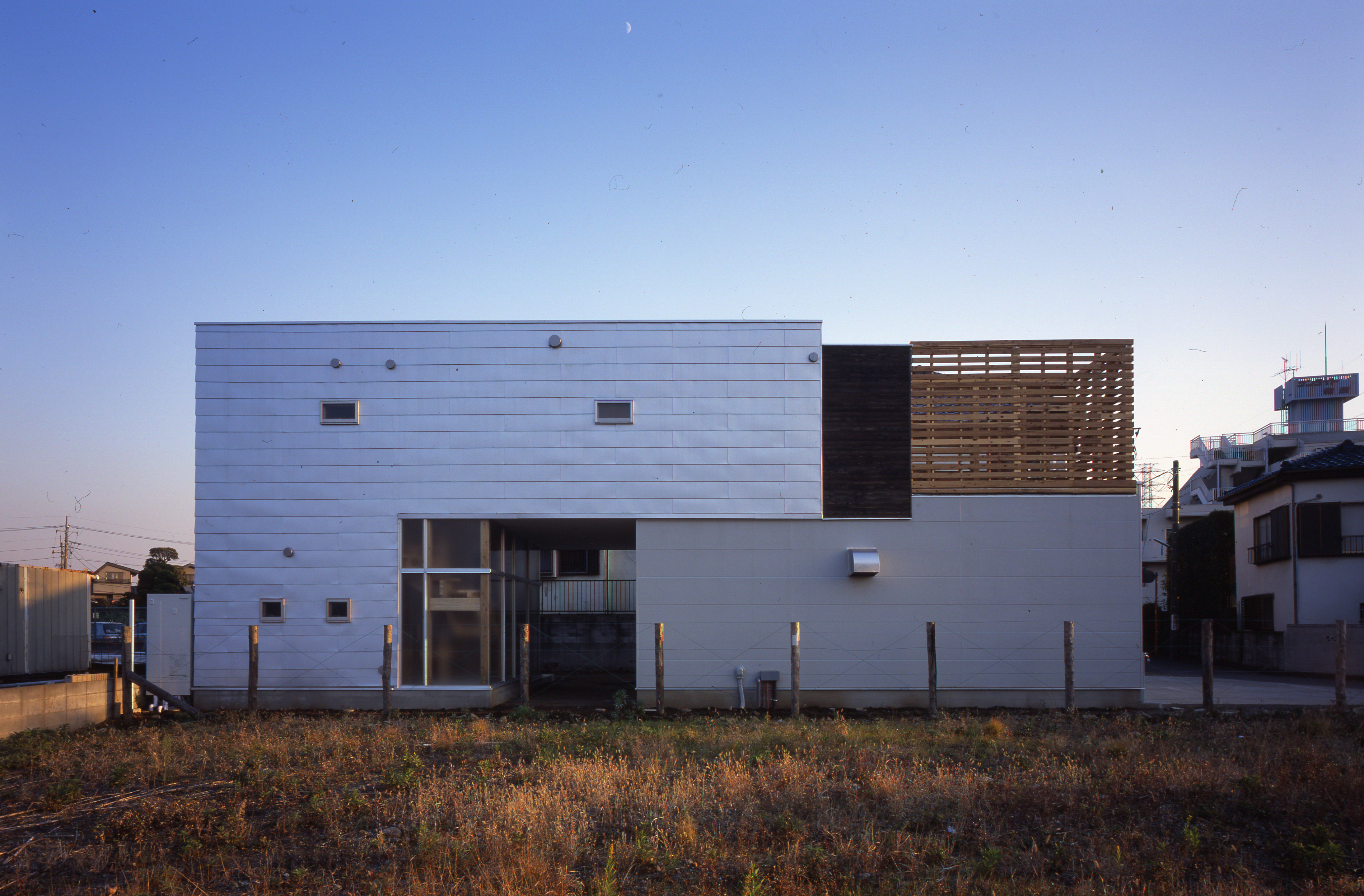 また、その単純な領域構成をそのまま外観にも表現することで、周囲にはない個性的な表情を持ち、将来車のお店を始めた時にもアイストップとなる形を表情も作っています。