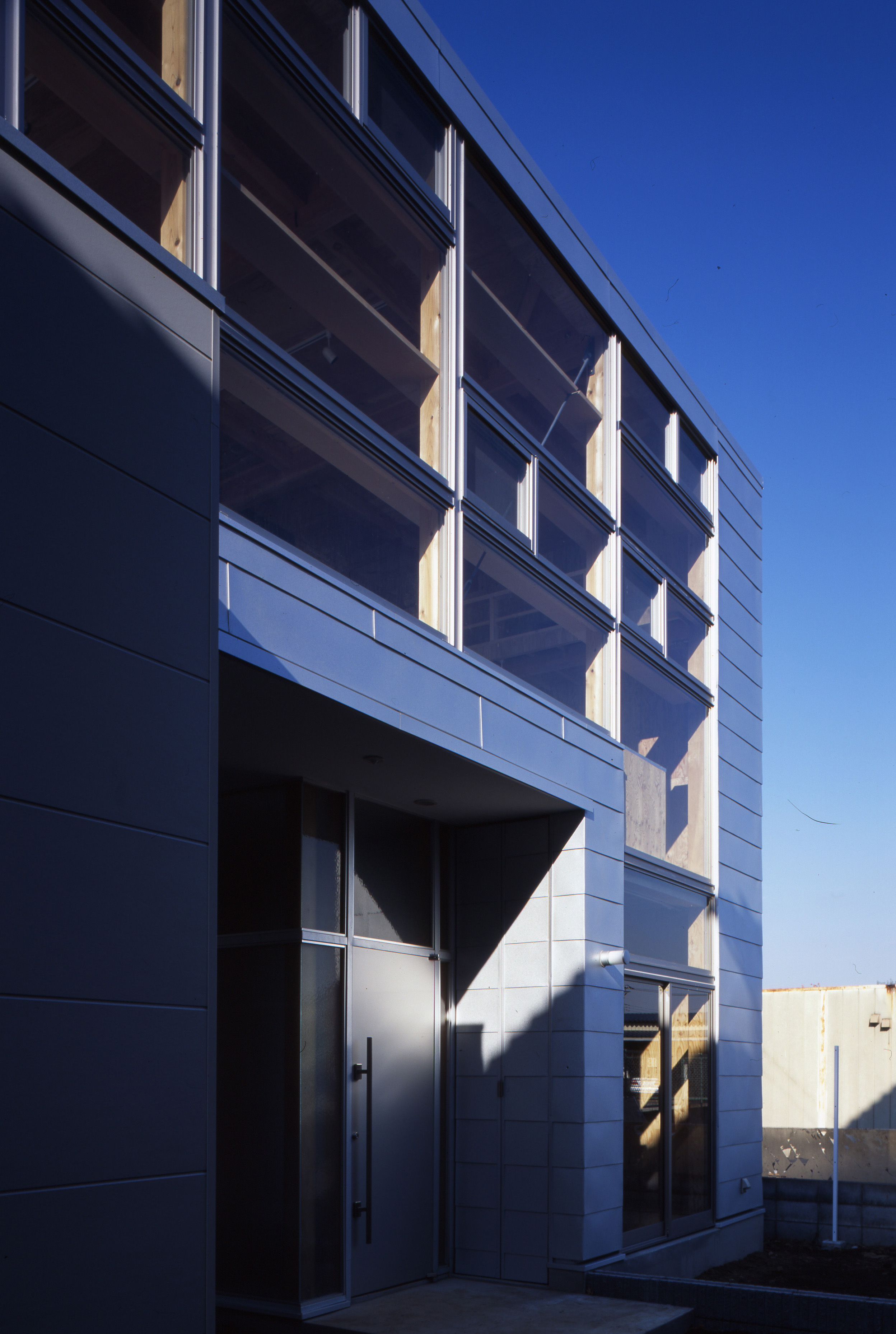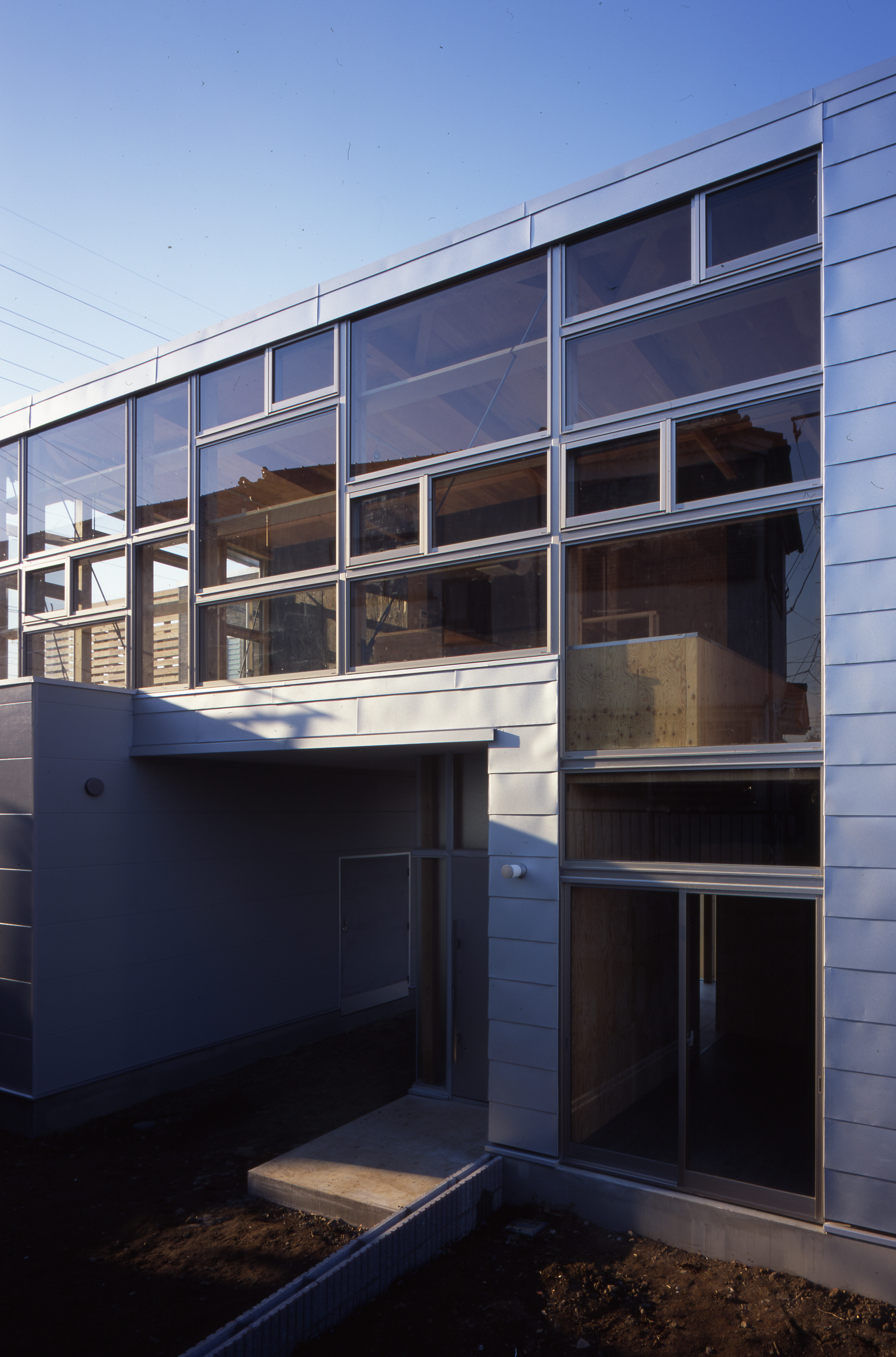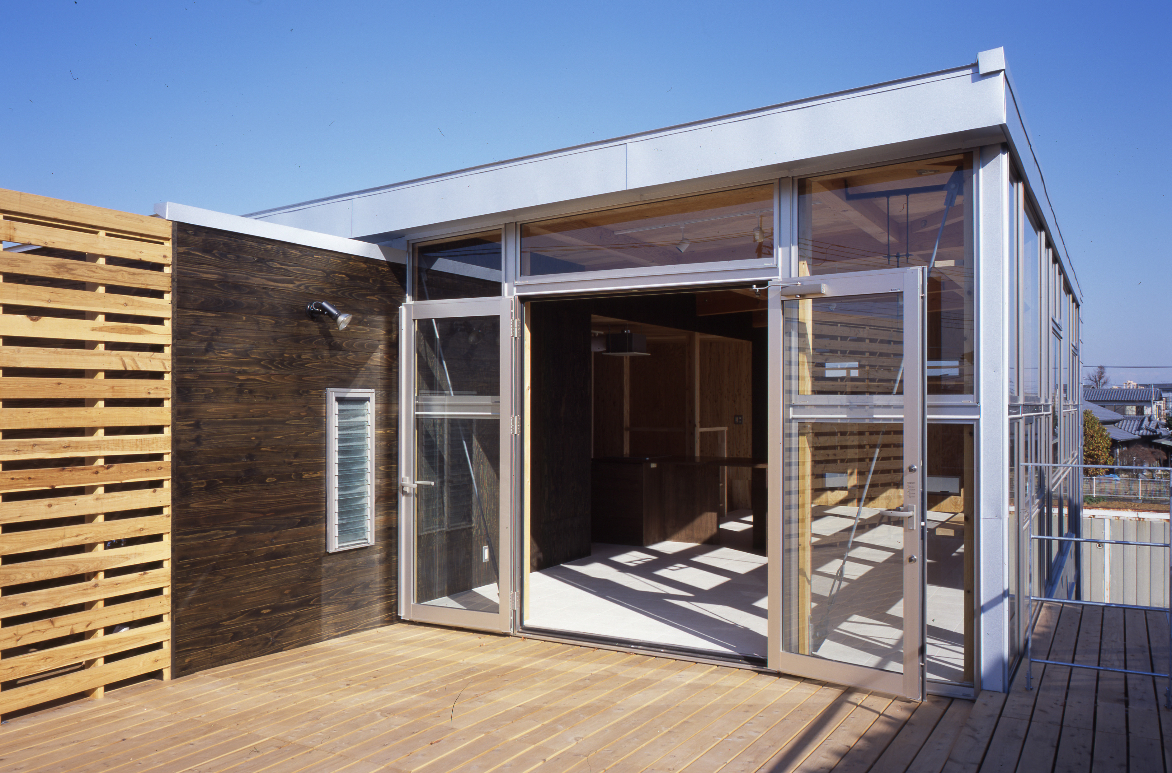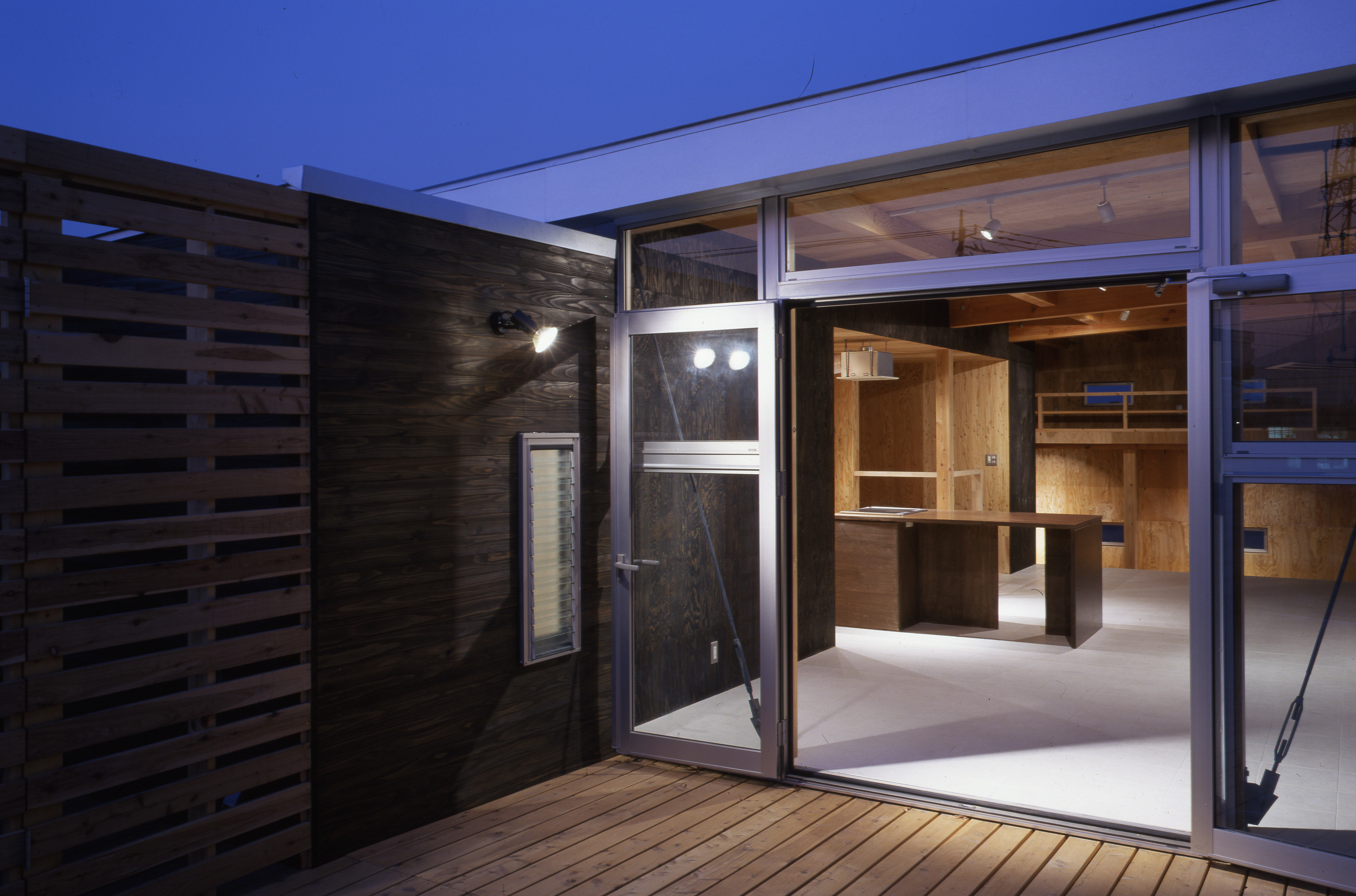 また、その単純な領域構成をそのまま外観にも表現することで、周囲にはない個性的な表情を持ち、将来車のお店を始めた時にもアイストップとなる形を表情も作っています。