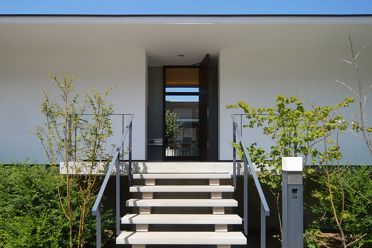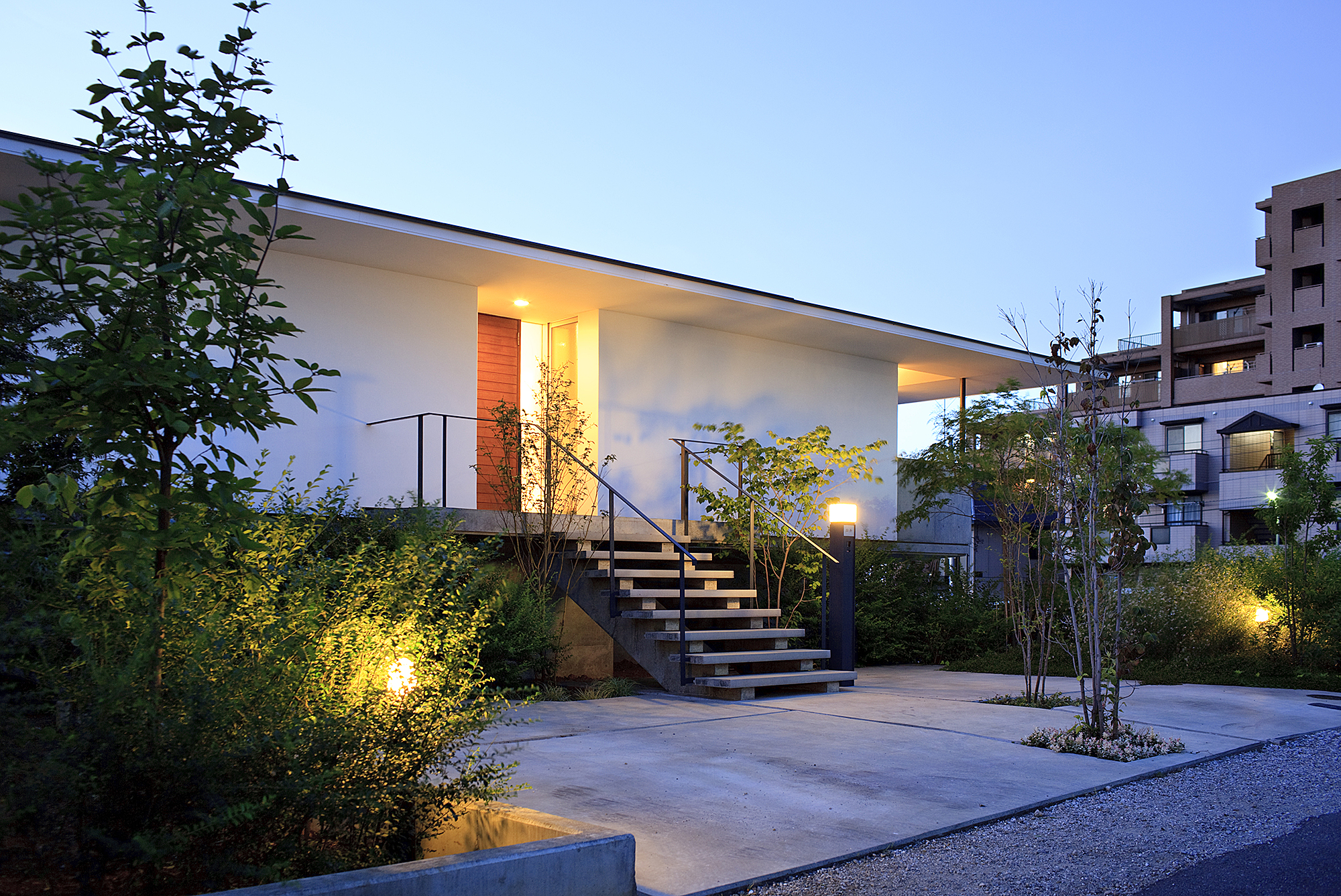 今回の住宅周辺の街並みには固有性の手掛かりとなる根拠が希薄で、匿名性を強調するかのように、スプロール的に発生したマンションやアパートが多く、むしろ戸建の住宅を拒むような地域でした。強いて個別的特性を上げれば、敷地が道路より半階分下がっていて、周辺から見下ろされるような、本来なら望ましくない特性があることです。