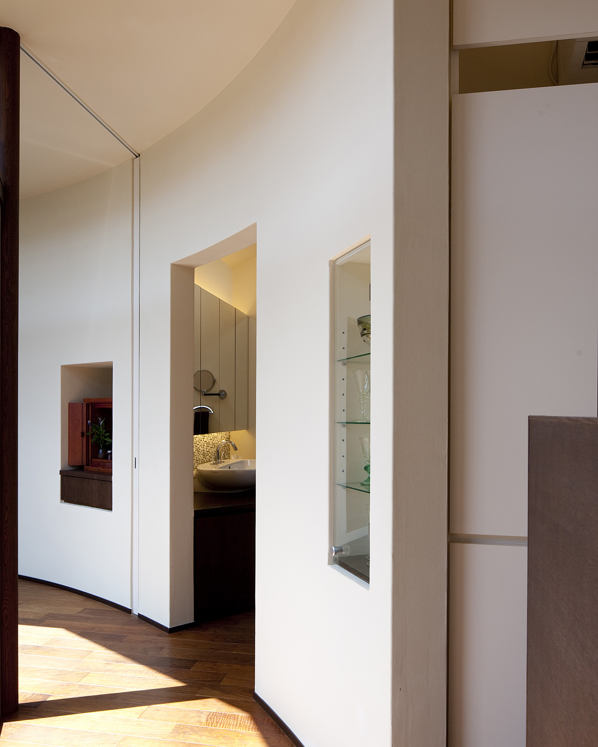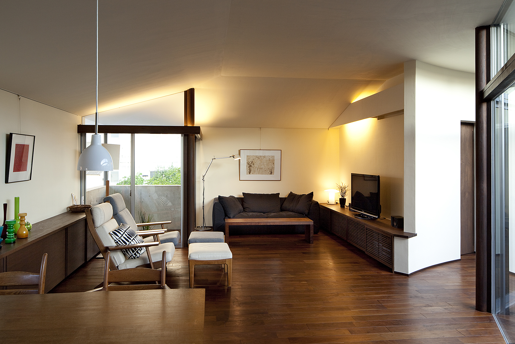 この住宅が出来て1年半経ち、その間、震災の応急仮設住宅を設計する機会がありました。仮設住宅も不特定多数の方が住むための住宅です。小規模ながらある意味、デザインや間取だけでなく建築全体としての普遍性を考えさせられます。この住宅が出来たときにはあまり意識していませんでしたが、両極端に違う二種類の住宅で、普遍性を求めて設計をして、認識を新たにさせられたことがあります。それはこれまで固有性を大事にした設計をしようとしてきましたが、実は、“普遍的住宅の究極は個別的住宅に通じ、固有性の究極は普遍性に通じる”ということです。