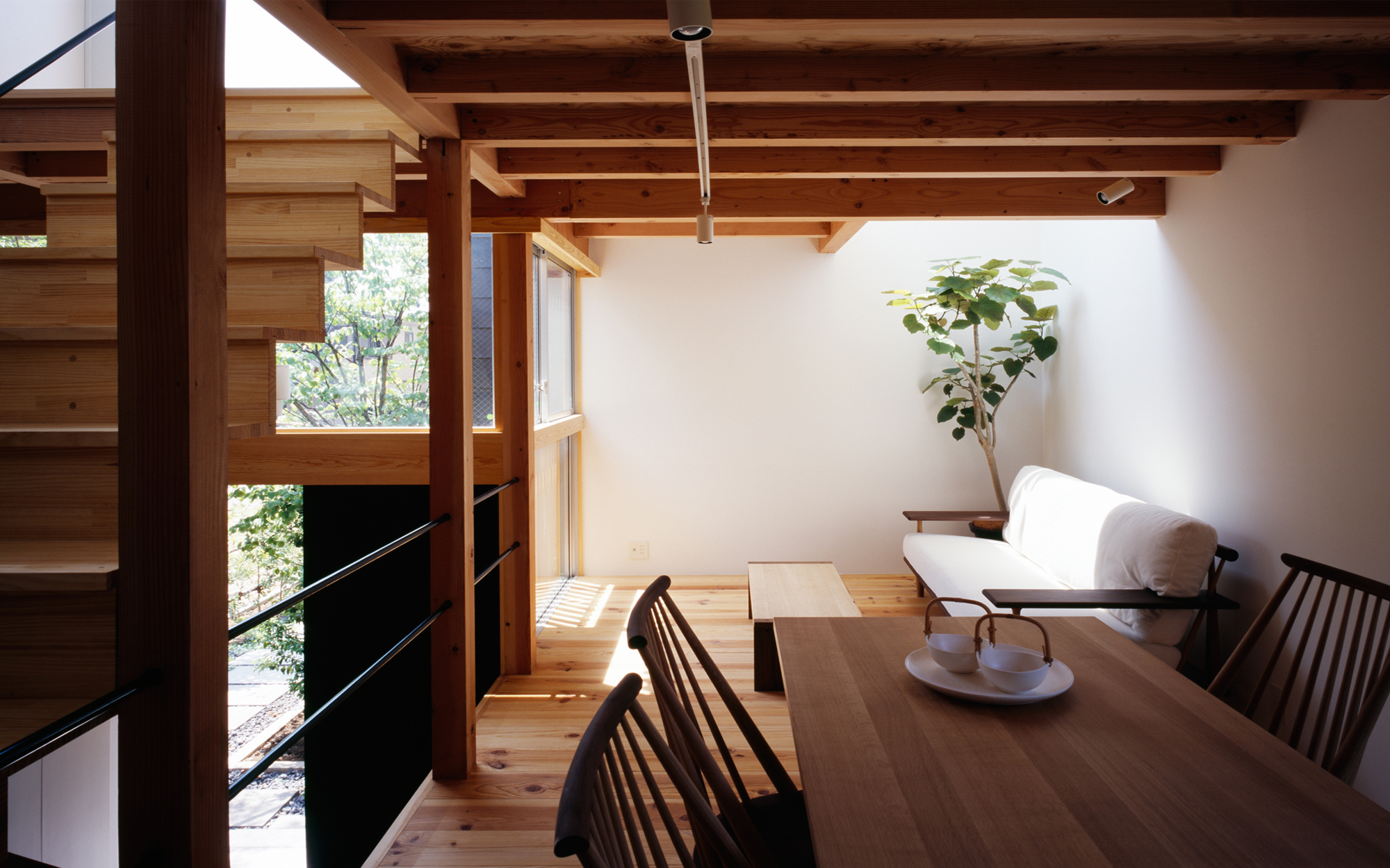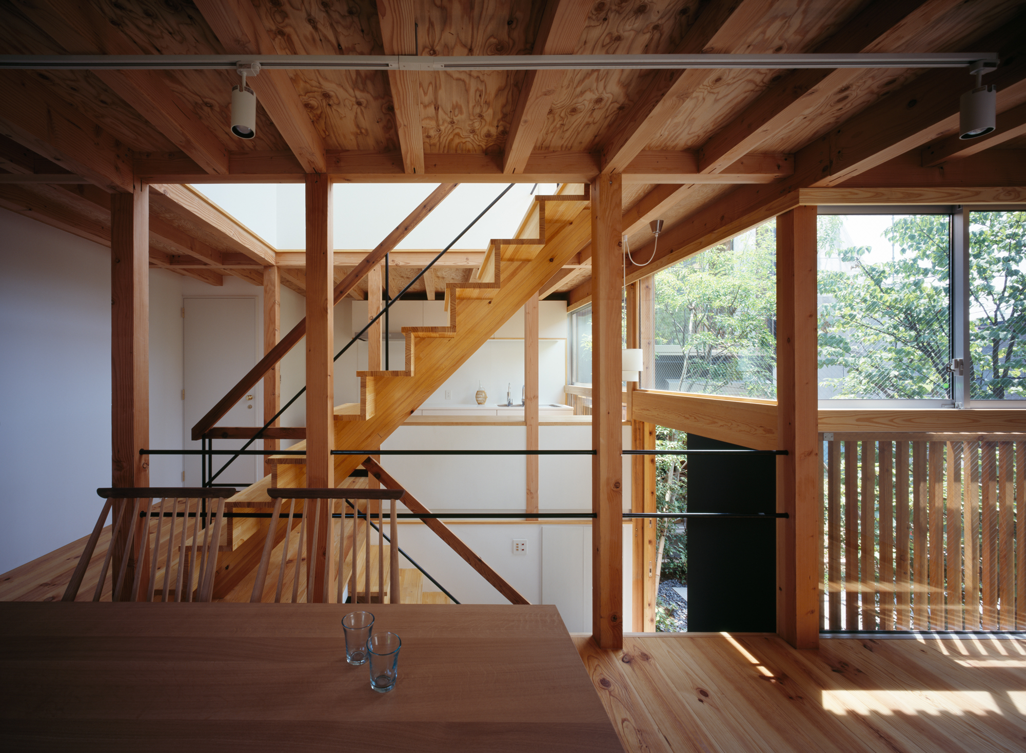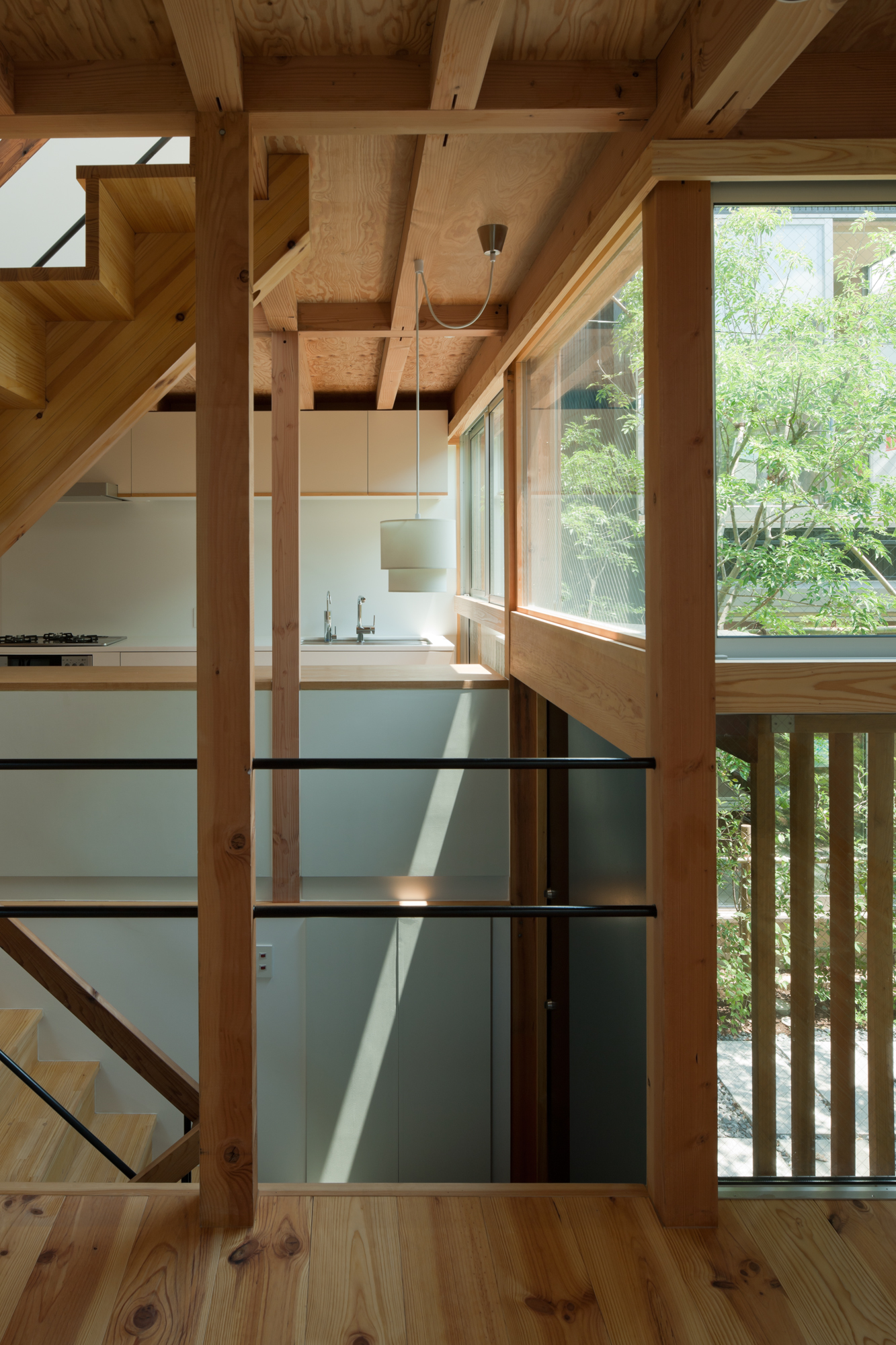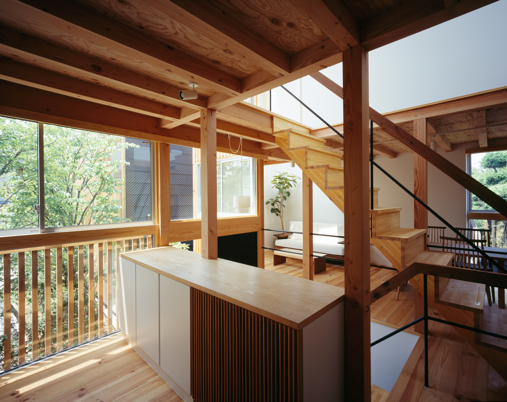 いわゆる建売住宅という名のミニ開発は、厳しい防火規制や経済的理由から地域の文脈を寸断させてしまうことが多いが、棲林居では大胆な木材の利用や、まとまりのある緑化計画に修景の可能性を見た。