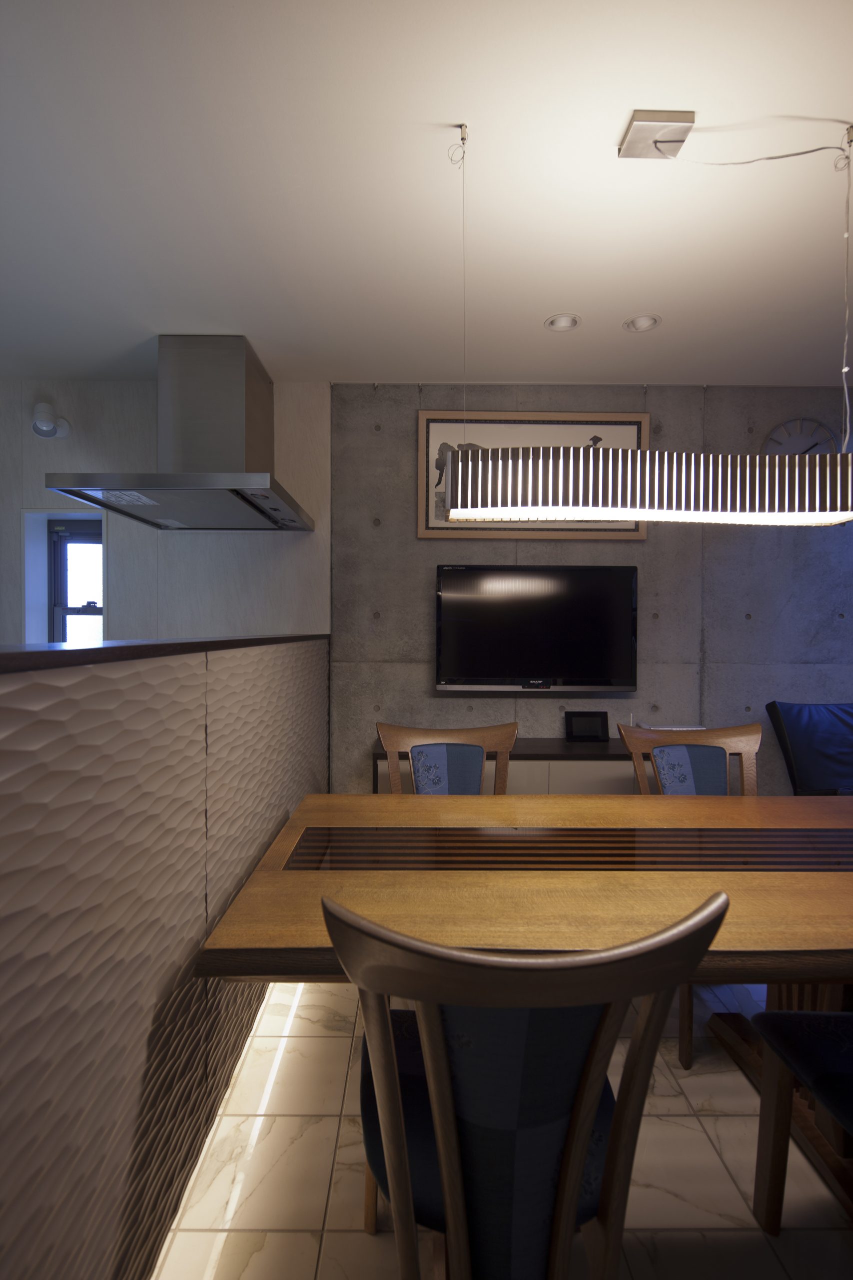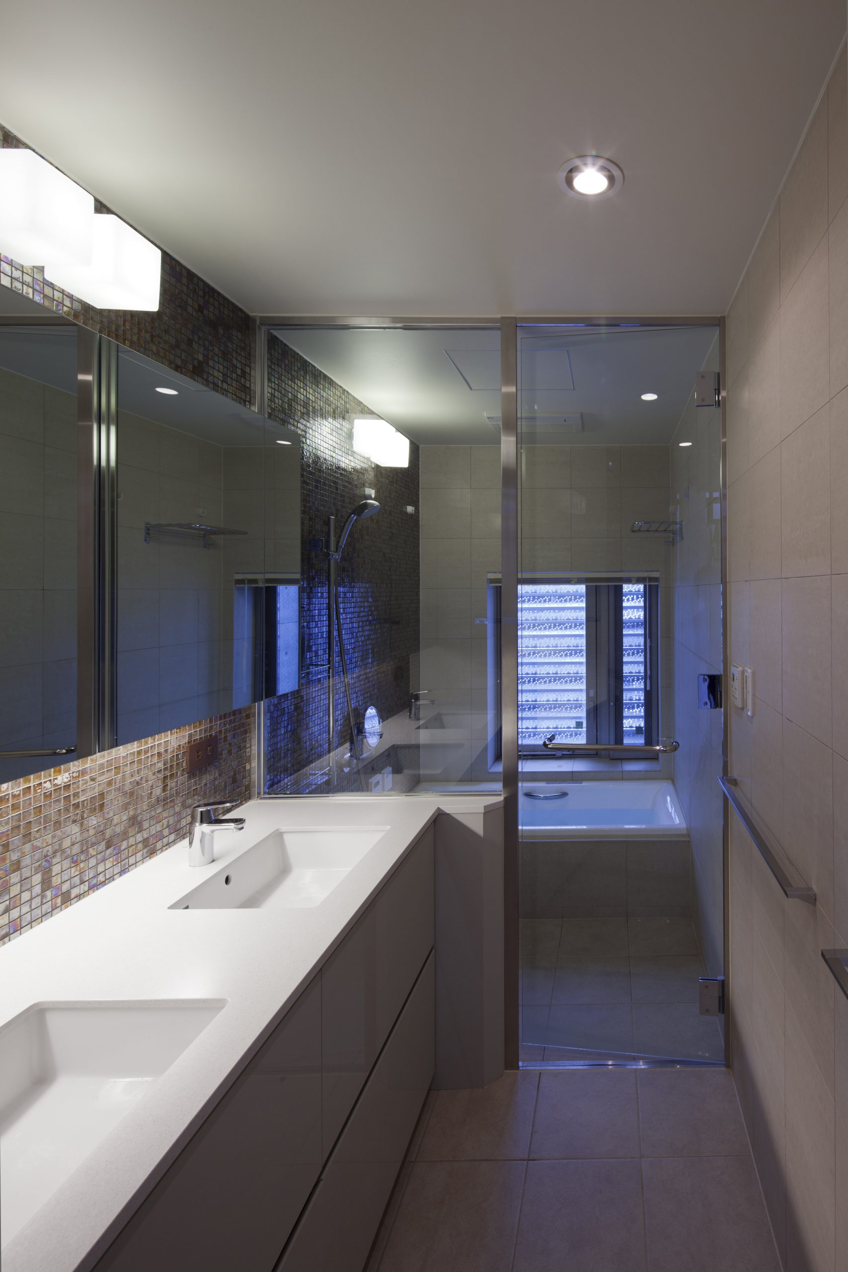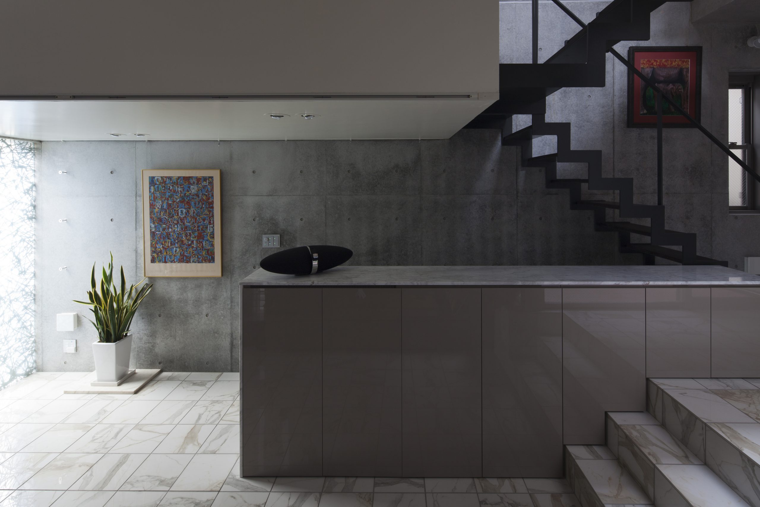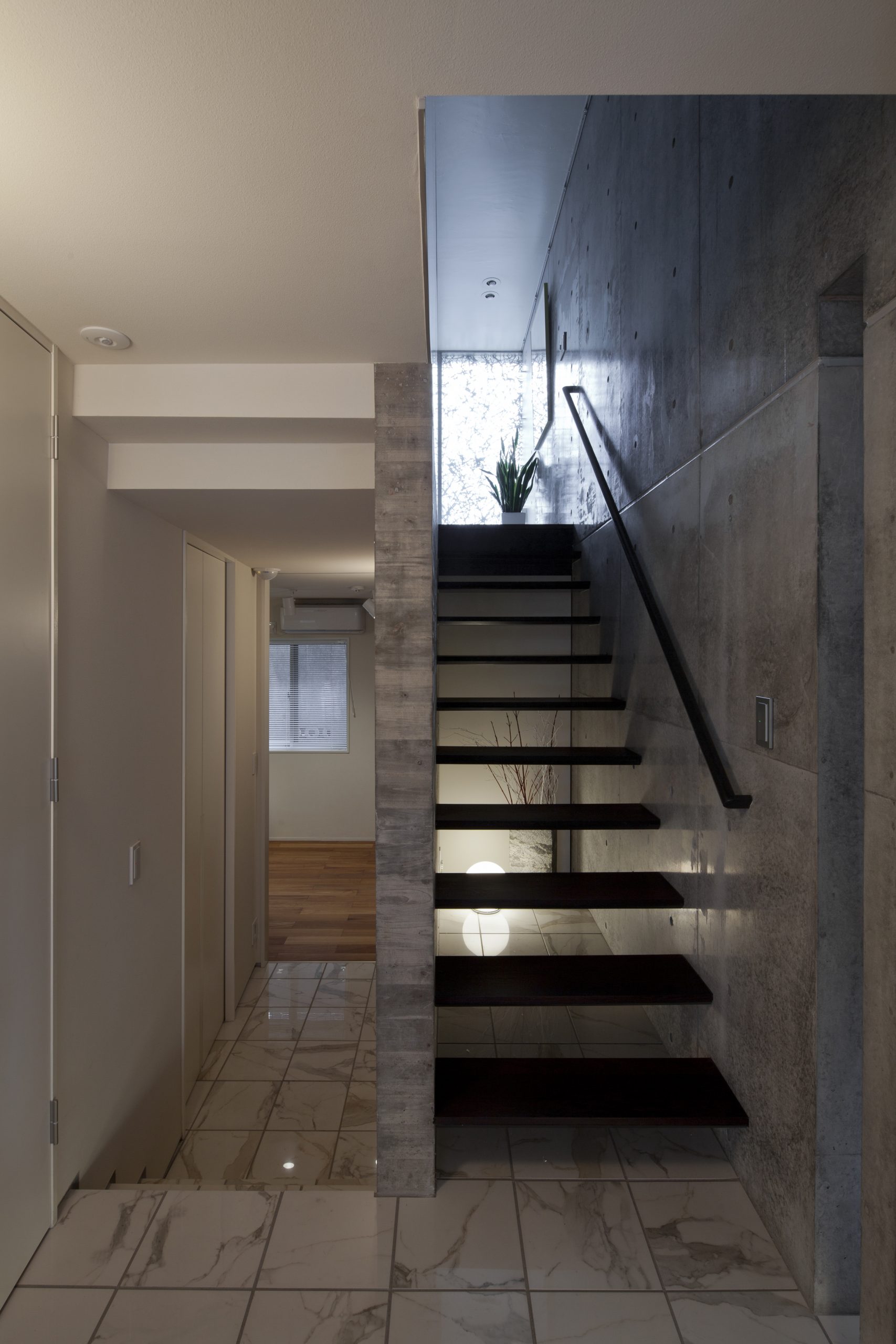 RC は徐々にコンクリートを打ち上げていくため、その乾燥の時間も入れるとなかなか建物の形が現われ てこない。一度打ち上がると修正が効かないから、照明やコンセント、冷暖房に換気扇の位置まで、一つ一 つが打ち上がっていく度に詳細な打ち合わせが必要となる。 何度も何度も打ち合わせを重ね、少しづつ工事が進んでいった。 そしてついに、1 年と 3 ヶ月の時間を要 して我が家が完成した。 シンプルモダン、こんな家にしたかった、という希望通りのものができあがった。 屋上からの眺めは予想以上に素晴らしく、西には高尾から丹沢の山々や富士山が、暗くなればスカイツリー や東京タワー、六本木ヒルズなど、夜景が本当に見事である。そんな屋上に一人立ったとき、こう思ったこ とを私は忘れないだろう。一軒の家を建てるというのは、それは大変な労力ではあった。でも、家というも のは決して自分一人の力で建つことはない。 建築家の非凡なるデザイン、緻密な設計、現場監督の冴え渡る指揮、職人の技とこだわり・・・その全て が一つの大きな力となって建物を作り上げていく。彼らに対する感謝の言葉以外は見つからない。 そして、こんな私の突然のわがままな申し出を最後には快く受け入れてくれ、一緒になって家造りに参加 してくれた家族に、この紙面を借りてありがとうと言いたい。 今、私は家族と共に快適に生活をしている。臼井氏のデザインは、どこを見ても本当に美しい。「家を建て てよかった」と、心から思える毎日である。